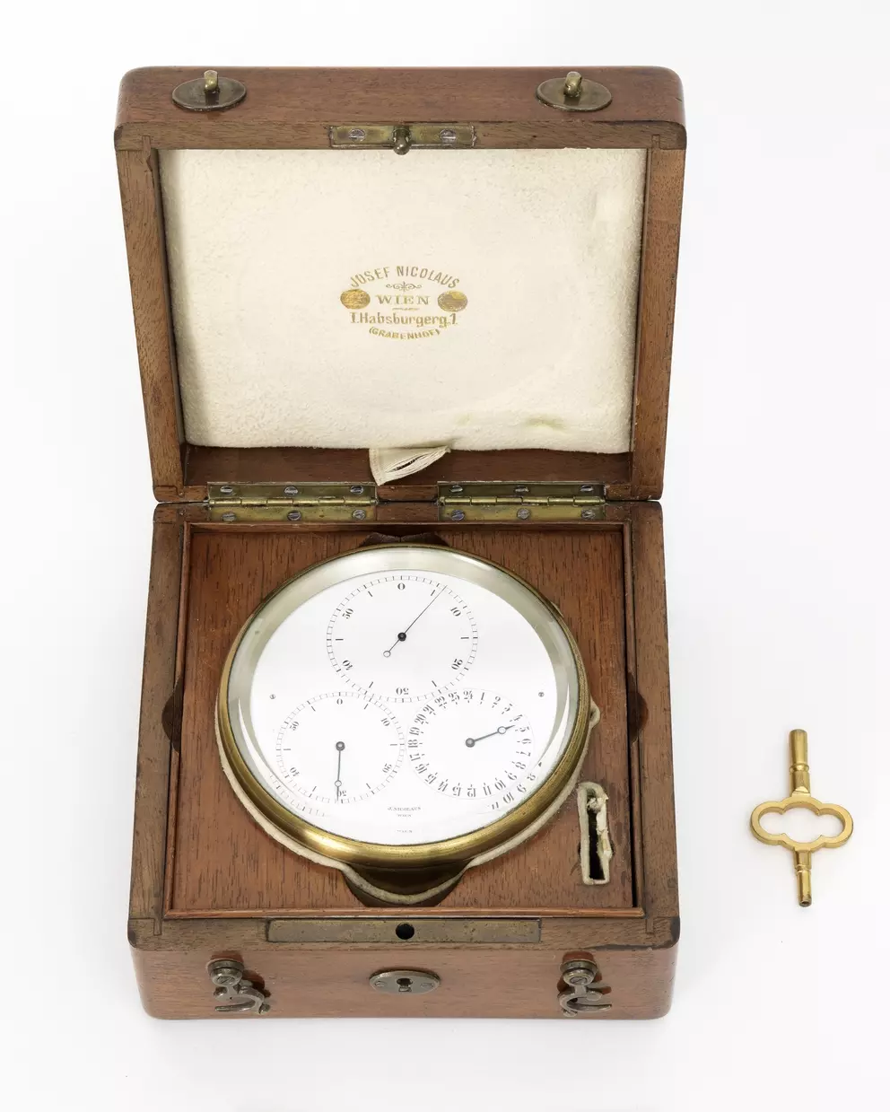 Der Uhrmacher Josef Nicolaus ist in der Uhren-Fachwelt kein Unbekannter, in Archiven jedoch eher schwer aufzuspüren. Sehr zurückgezogen und scheinbar fokussiert auf das Handwerk lebte und arbeitete er im ausgehenden 19. und frühen 20. Jahrhundert in Wien. Die einzig traurige Erwähnung fand er in der Presse im Jahre 1917, als er seine wertvolle, 450 Objekte starke Sammlung an das Uhrenmuseum verkaufen musste, um seine Wohnung weiterhin heizen zu können. Manche Uhren dieser technisch spannenden Sammlung wurden von ihm hergestellt, andere Objekte von ihm modifiziert.