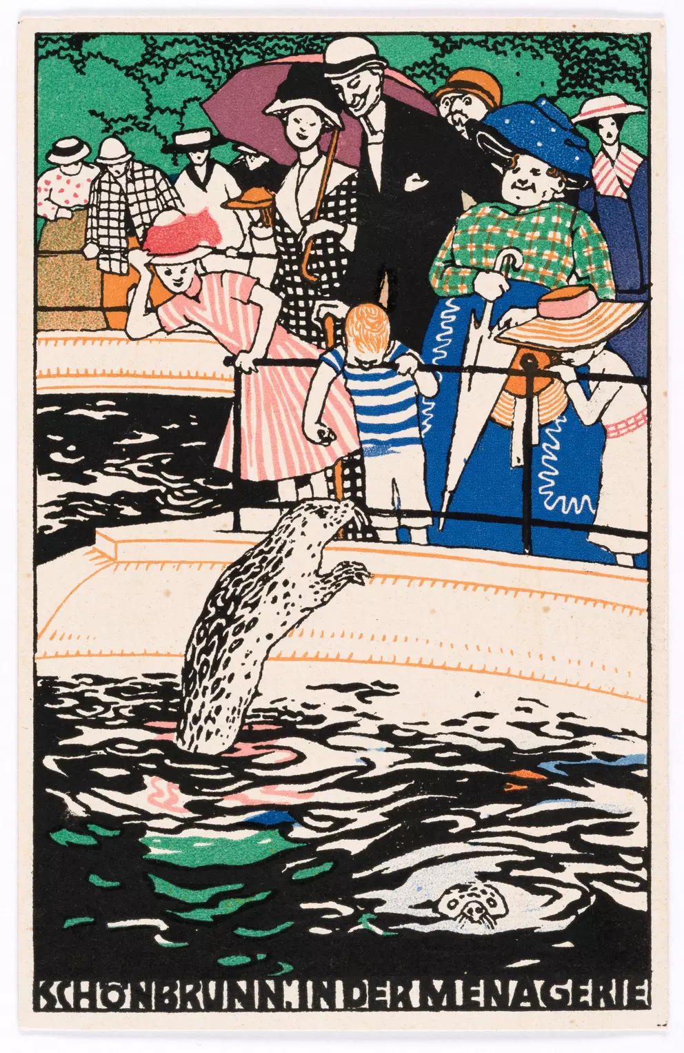 Unter den Künstlern finden sich neben heute berühmten Namen wie Oskar Kokoschka oder Egon Schiele auch viele junge Talente aus dem Umfeld der Kunstgewerbeschule. Hier steuerten Künstlerinnen wie Fritzi Löw, Maria Likarz oder Susi Singer Postkarten von höchstem künstlerischem Niveau bei.