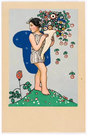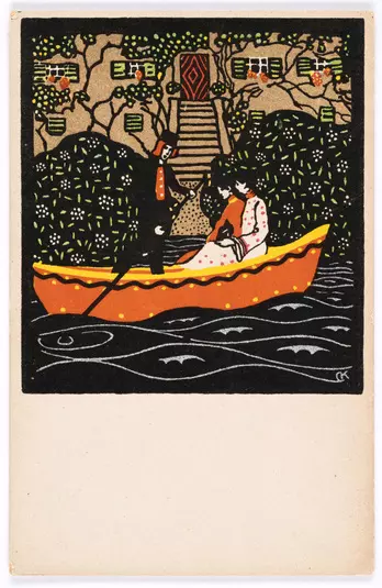 Die Wiener Werkstätte (1903 – 1932) produzierte ab 1907 eigene Postkarten. Dem allgemeinen Anspruch des Unternehmens folgend, sollten auch diese künstlerisch gestaltet sein und damit zur Ästhetisierung des Alltags beitragen.