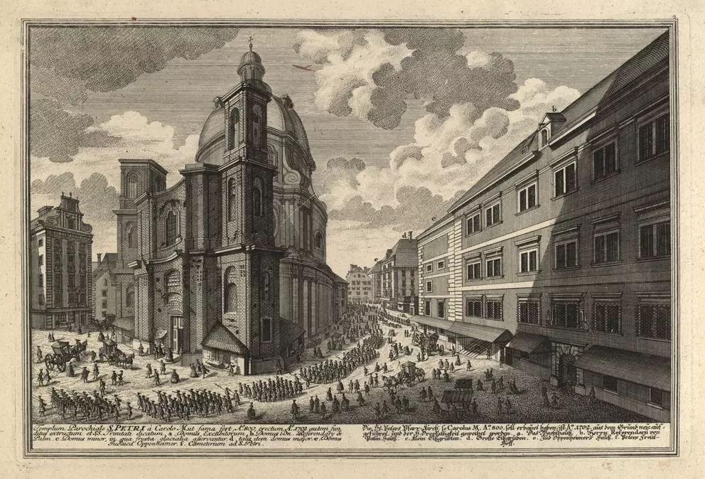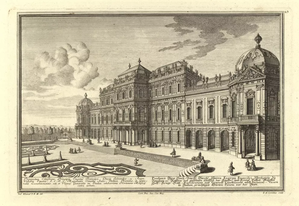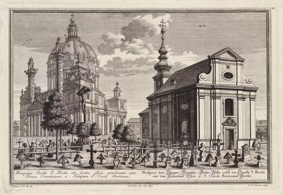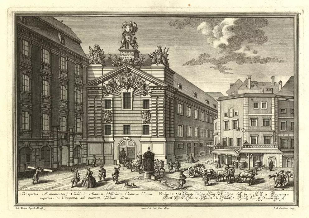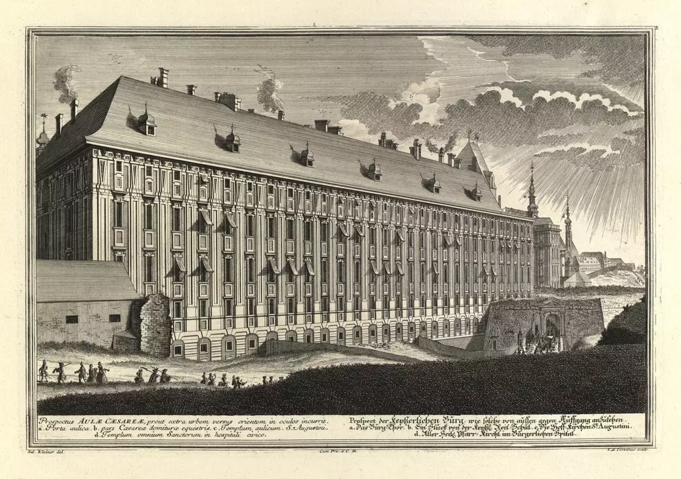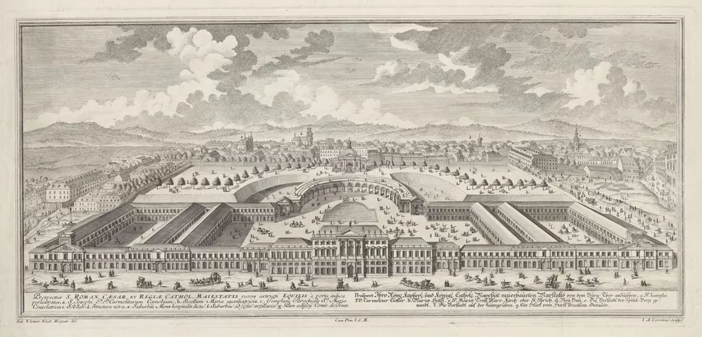 Vienna as baroque city—the image tied to this notion rests mainly on the series of engravings “Wahrhaffte und genaue Abbildung…” (Genuine and precise illustration) published by the Augsburg printmaker Andreas Pfeffel in four installments beginning in 1724. For the preliminary drawings, Pfeffel commissioned Salomon Kleiner, likewise from Augsburg. For the publication, various engravers realized Kleiner’s altogether 132 “prospects” of significant Viennese buildings in copperplate engravings.