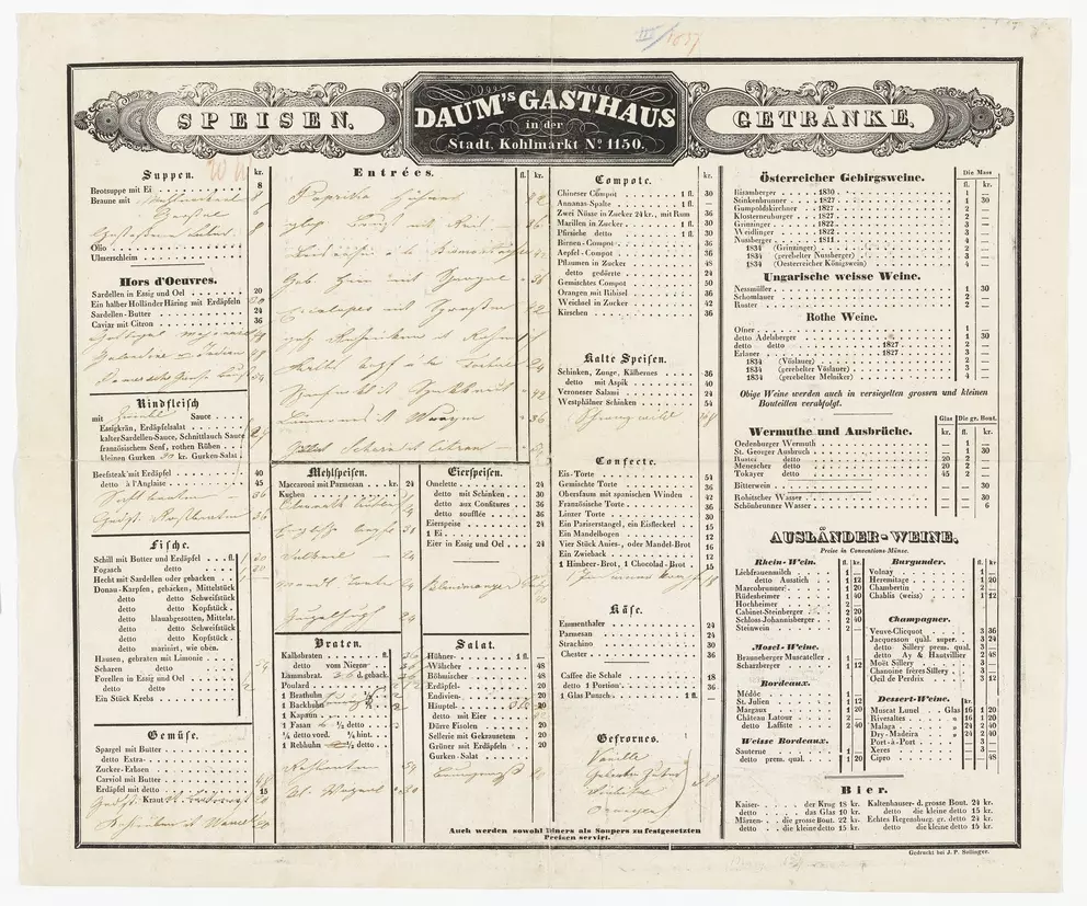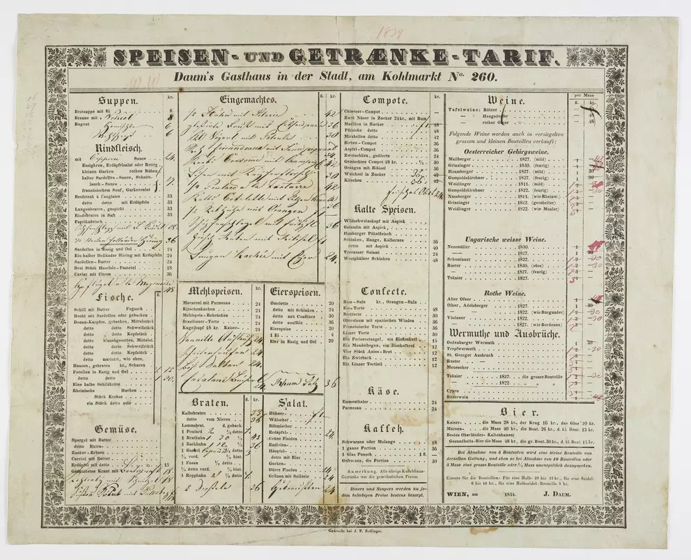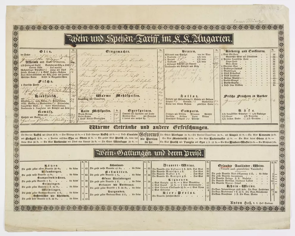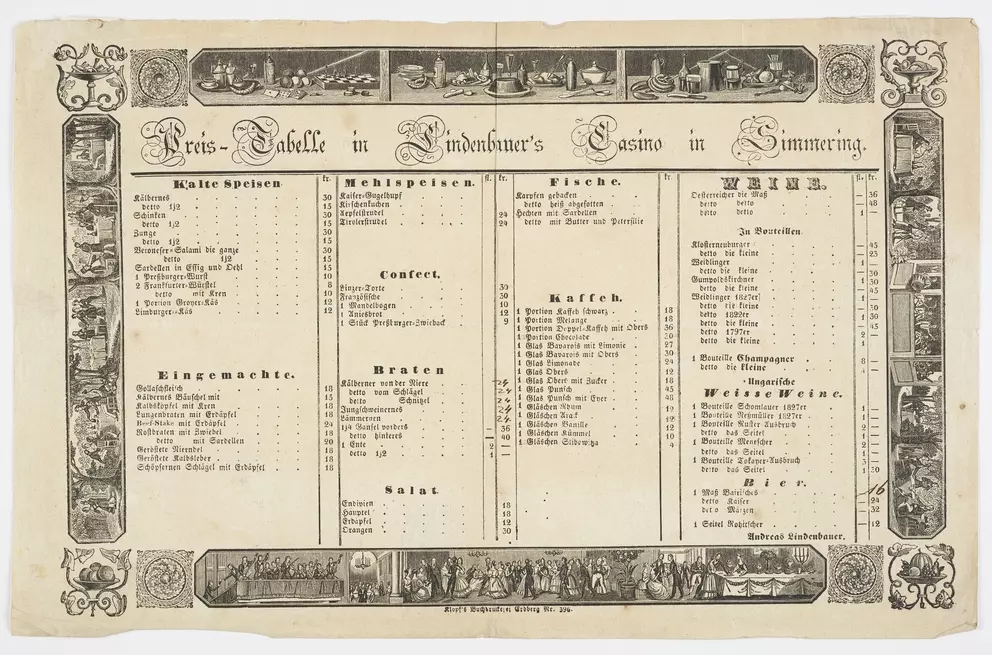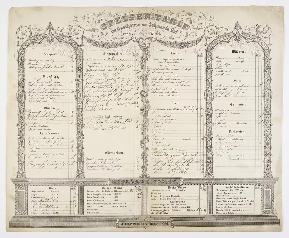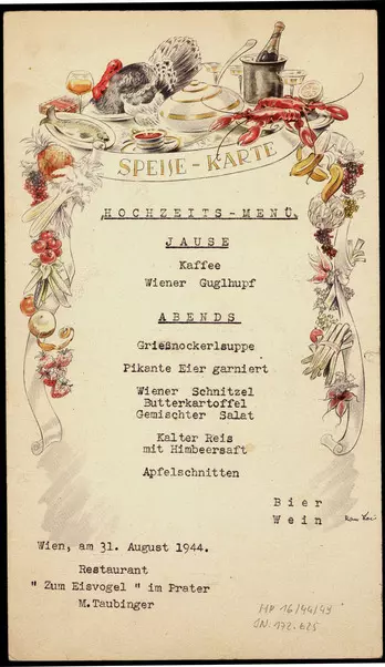What was eaten and drunk in Viennese inns in the 19th and 20th centuries? What was the evening menu in a Viennese hotel around 1900? And what were guests served at official receptions or weddings? More than 100 menus and dinner cards in the Wien Museum’s collection provide an insight into the development of Viennese food culture and the food and drinks on offer in the city from the 1820s onwards. Find a selection here: