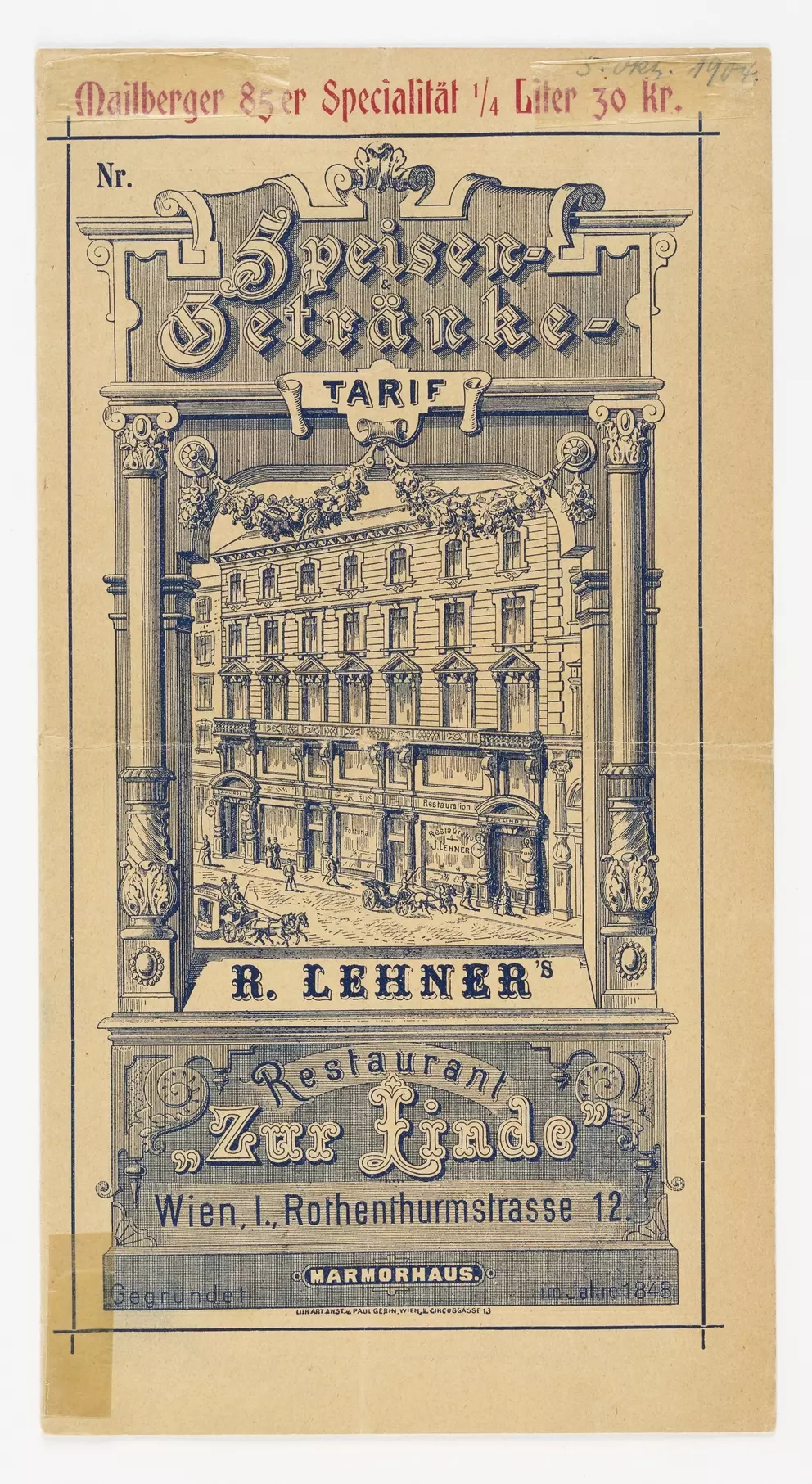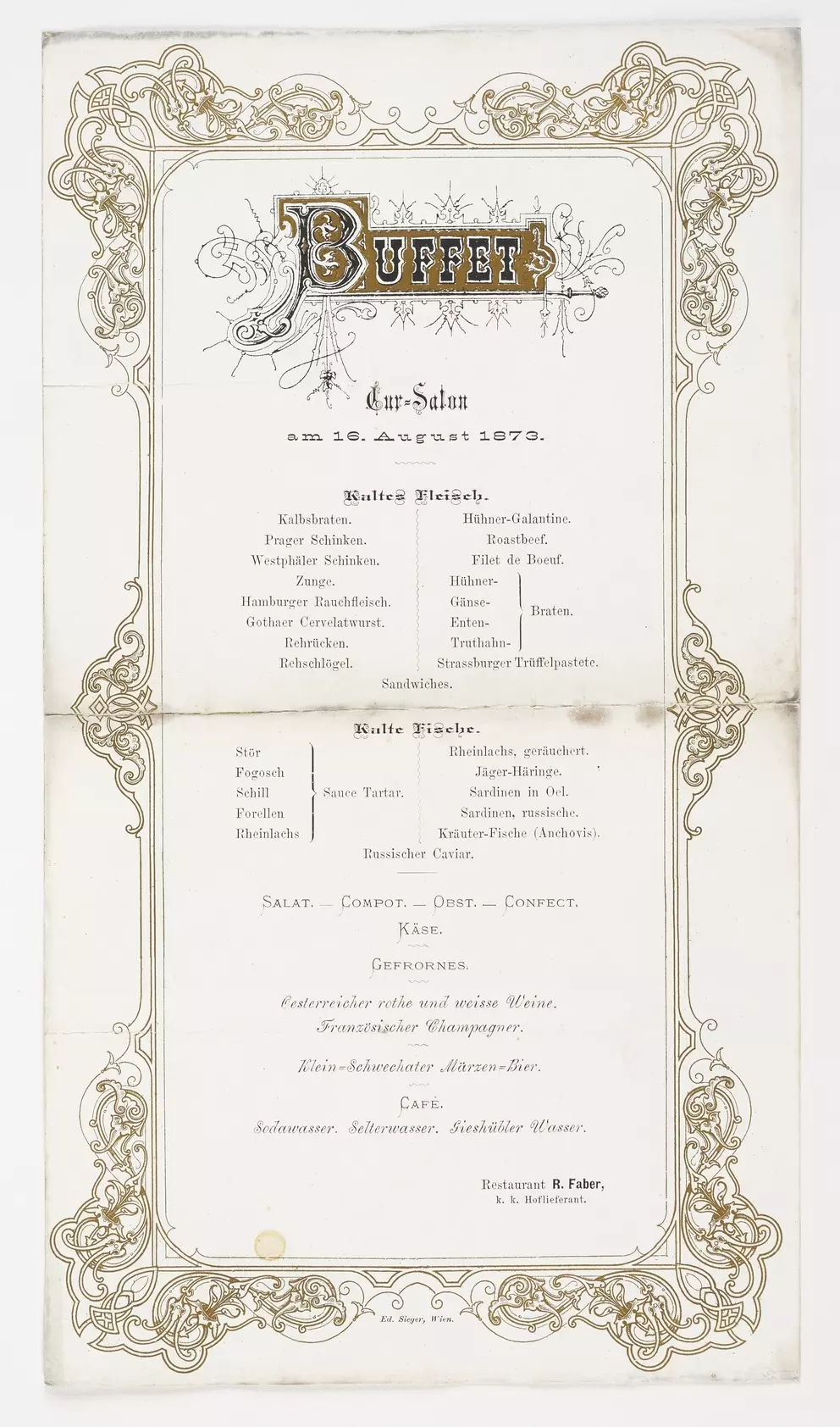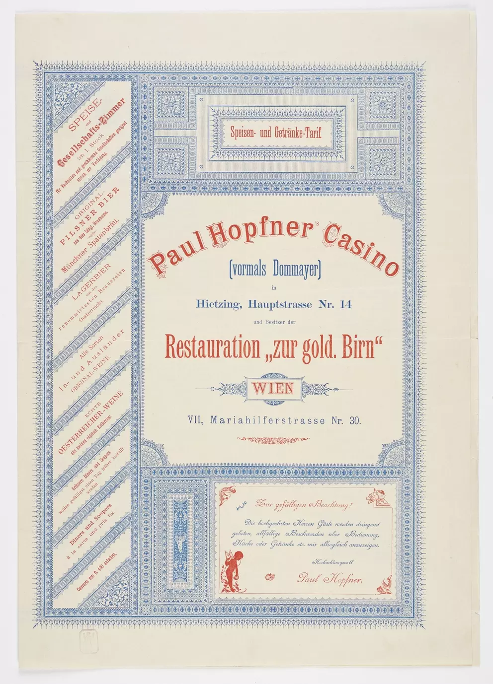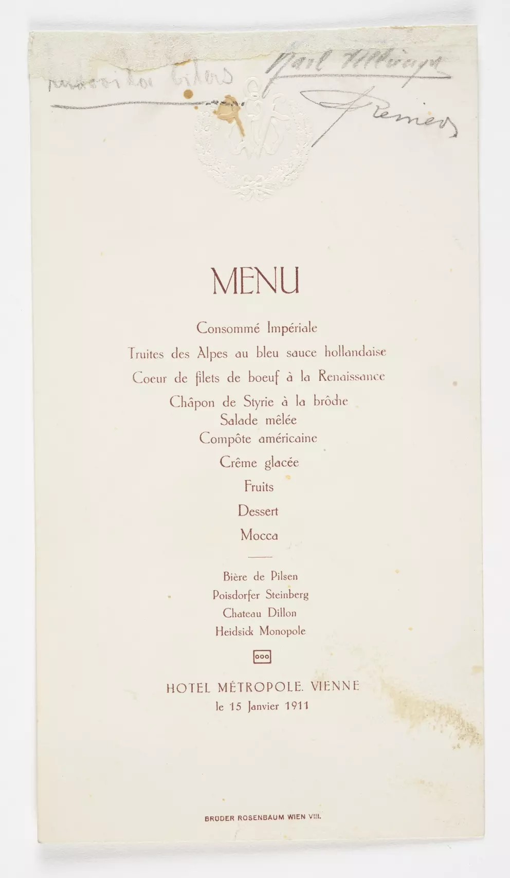 What was eaten and drunk in Viennese inns in the 19th and 20th centuries? What was the evening menu in a Viennese hotel around 1900? And what were guests served at official receptions or weddings? More than 100 menus and dinner cards in the Wien Museum’s collection provide an insight into the development of Viennese food culture and the food and drinks on offer in the city from the 1820s onwards. Find a selection here: