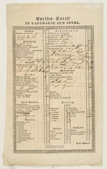 Historical menus and dinner cards