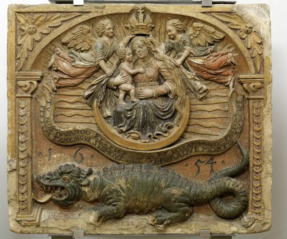 Until the introduction of “conscription numbers” in 1770, houses in Vienna had no numbers. Before this time, those who wanted to find a house had to know the name of the house along with the name of the street. In the ideal case, this name would be indicated by means of a house emblem or house sign mounted on the building. The house emblems handed over to the Wien Museum tell of a wealth of reference points for house names: the house owner’s occupation could provide the name, as could saints, animals, or mythical creatures.