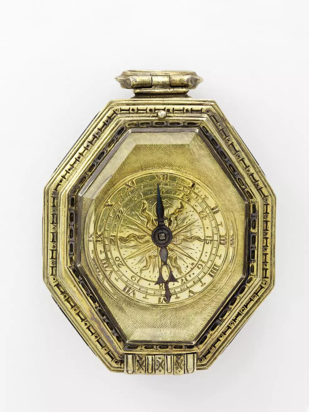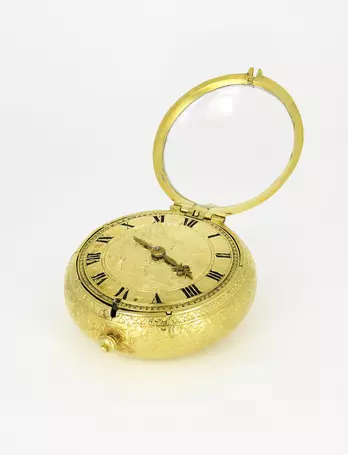 Portable timekeepers intended to be worn as accessories appeared in sixteenth century Europe. Very few individuals were able to make them, and just as few could afford to buy them. Therefore, early pendant watches were owned and worn by the rich and famous, symbolizing power—over their own time and the time of others. The examples shown here are models from the sixteenth and seventeenth centuries, when timepieces were mostly worn as pendants. Fashion changed in the 1660s with the appearance of pockets in men’s clothing and with them, the pocket watch.