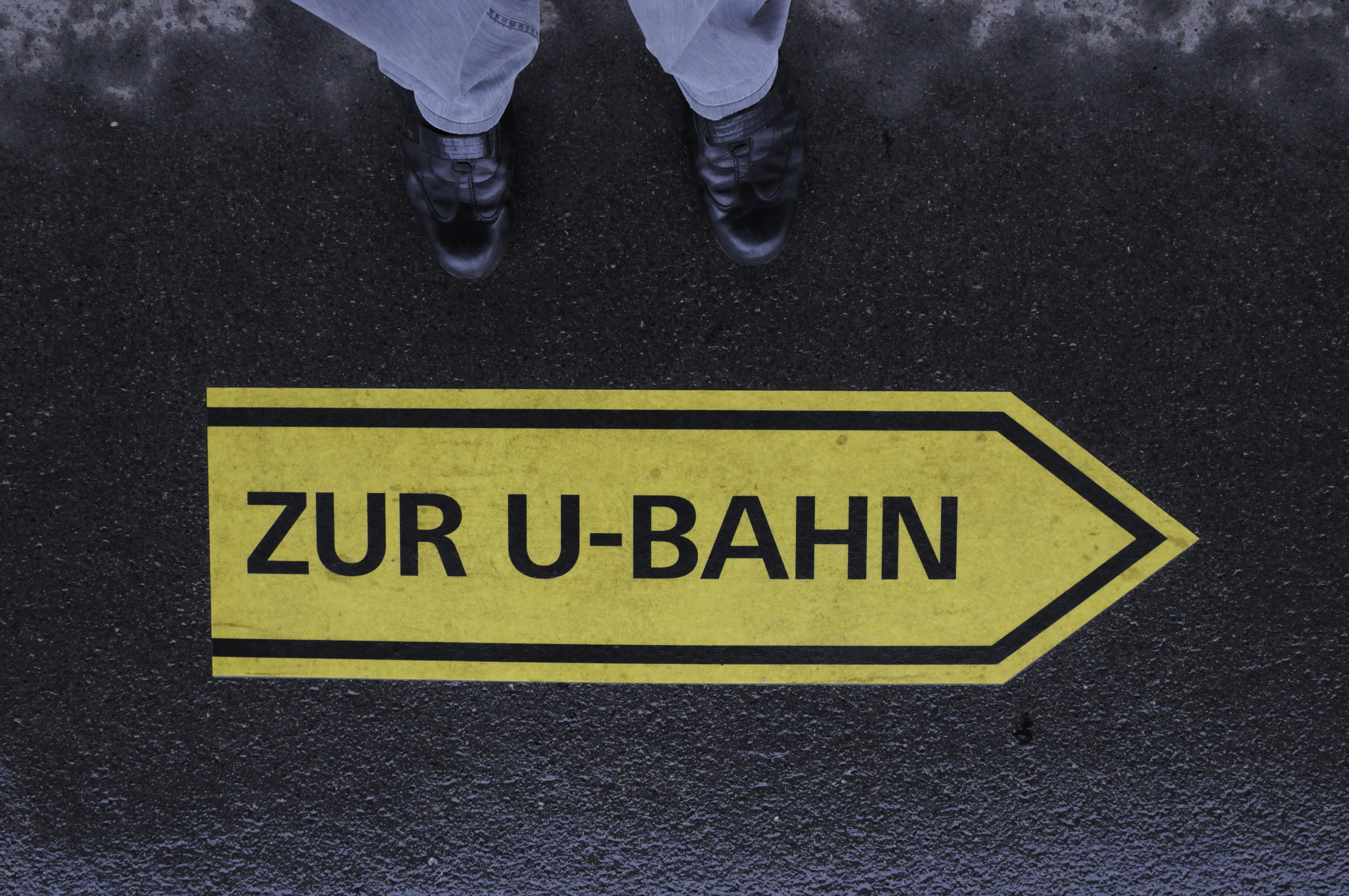 10., Südbahnhof - Bahnsteig der Südbahn mit Bodenaufkleber "Zur U-Bahn" Südtirolerplatz