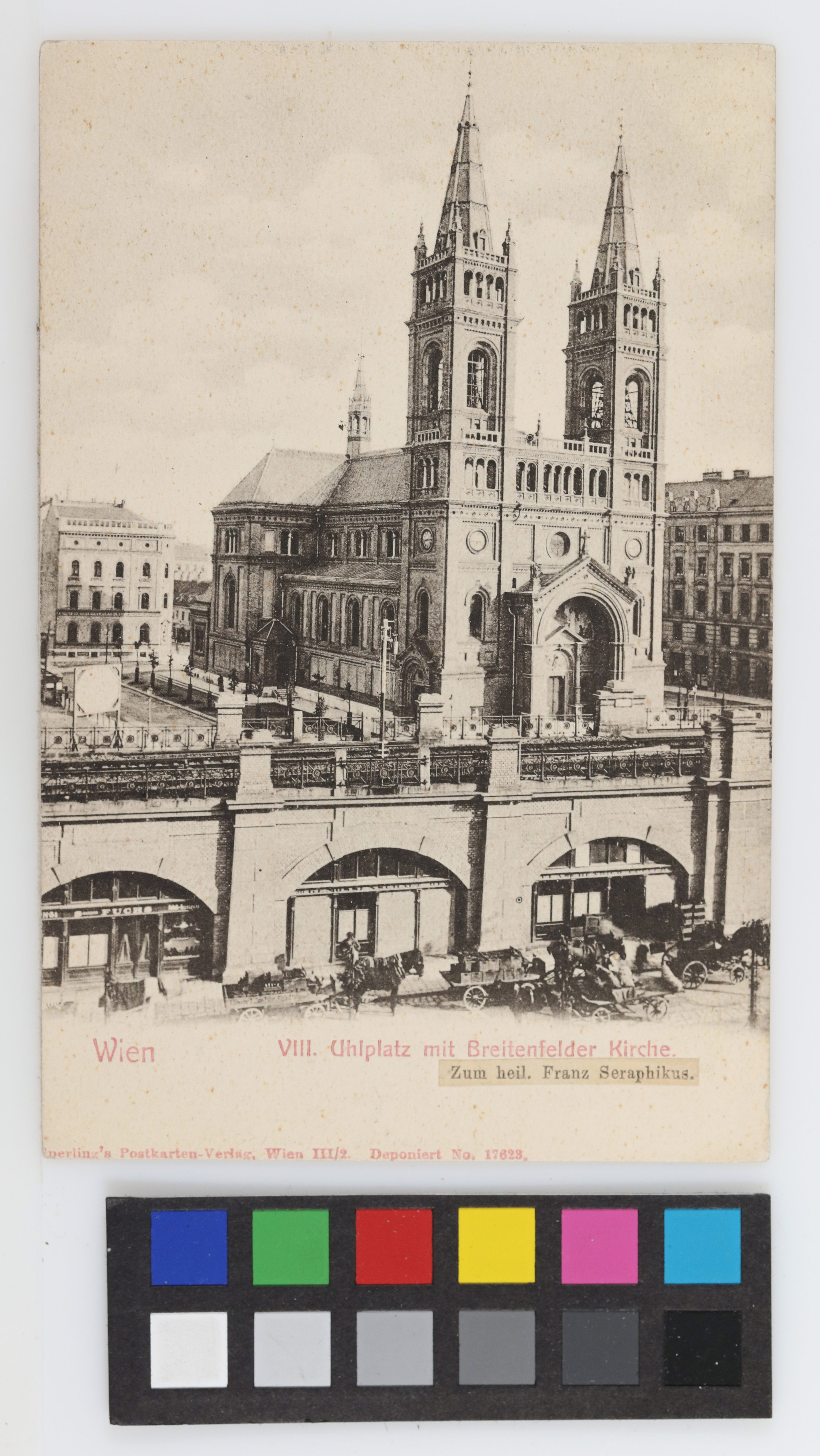 8., Uhlplatz - mit Stadtbahn und Breitenfelder Kirche, Ansichtskarte