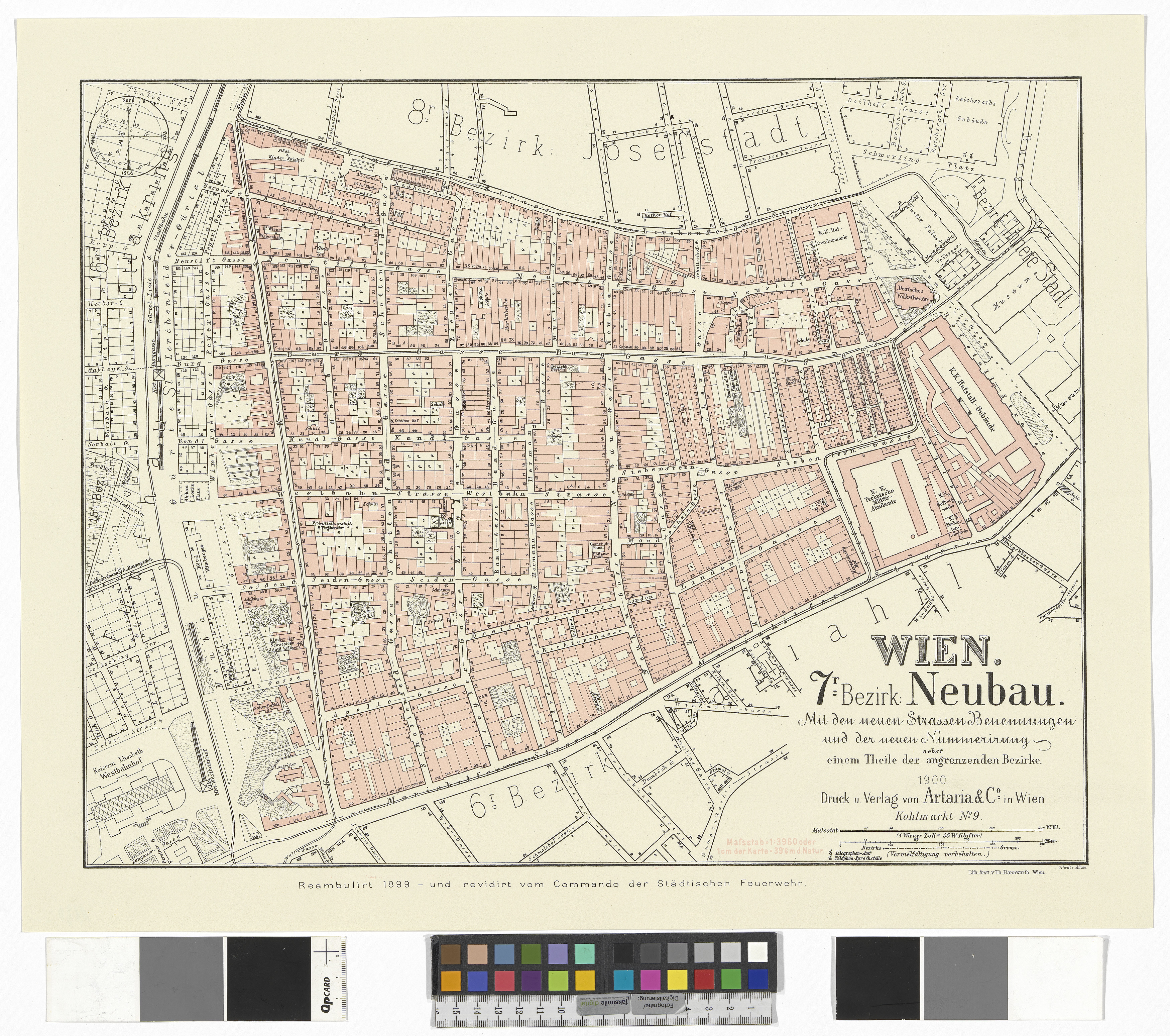 "Wien. 7r=Bezirk: Neubau. Mit den neuen Strassen Benennungen und der neuen Nummerirung nebst einem Teile der angränzenden Bezirke"