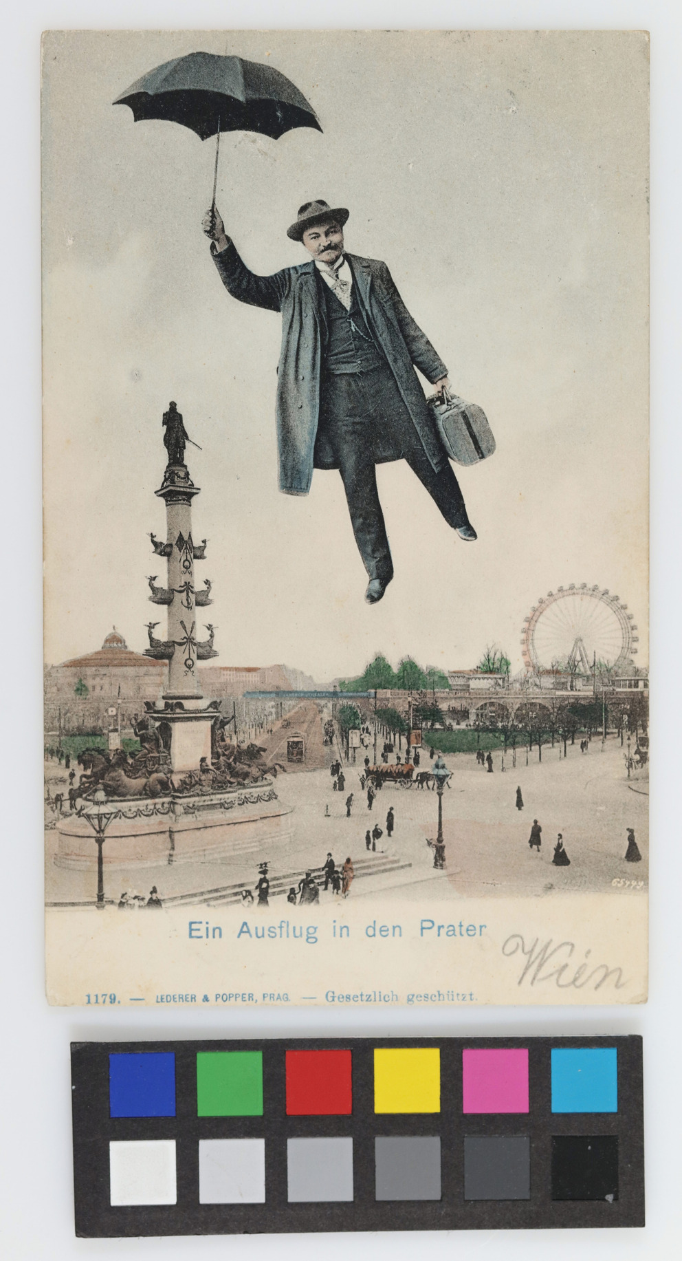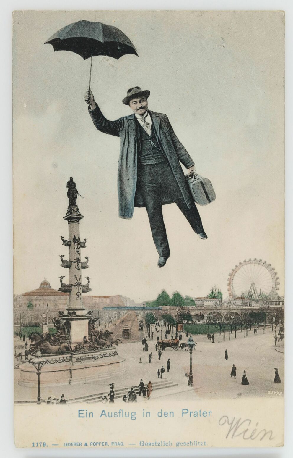 - 2., Praterstern - mit Tegetthoffdenkmal - Blick gegen Riesenrad (Scherzkarte), Ansichtskarte