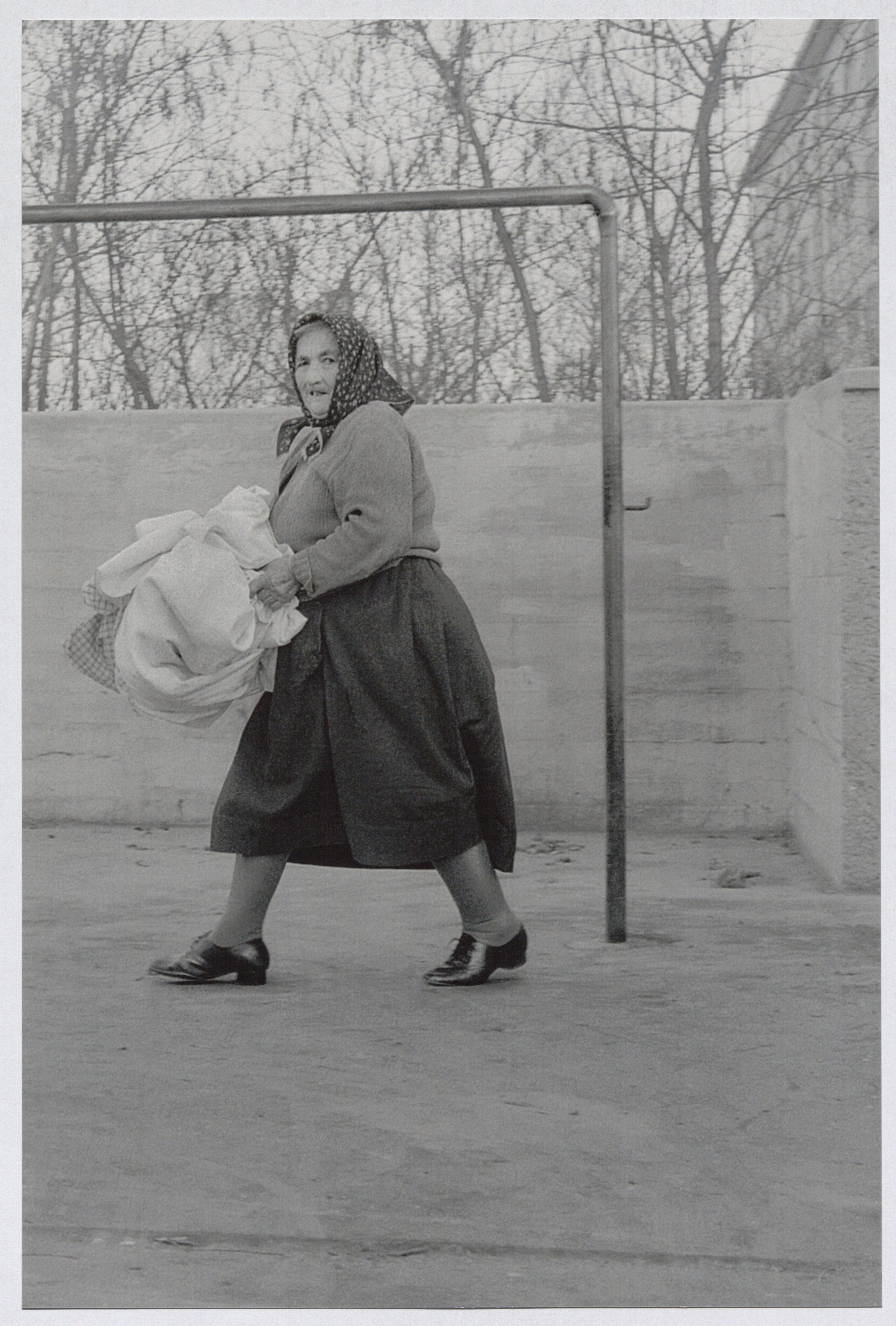 Frau vor Teppichklopfstange, Stadlau