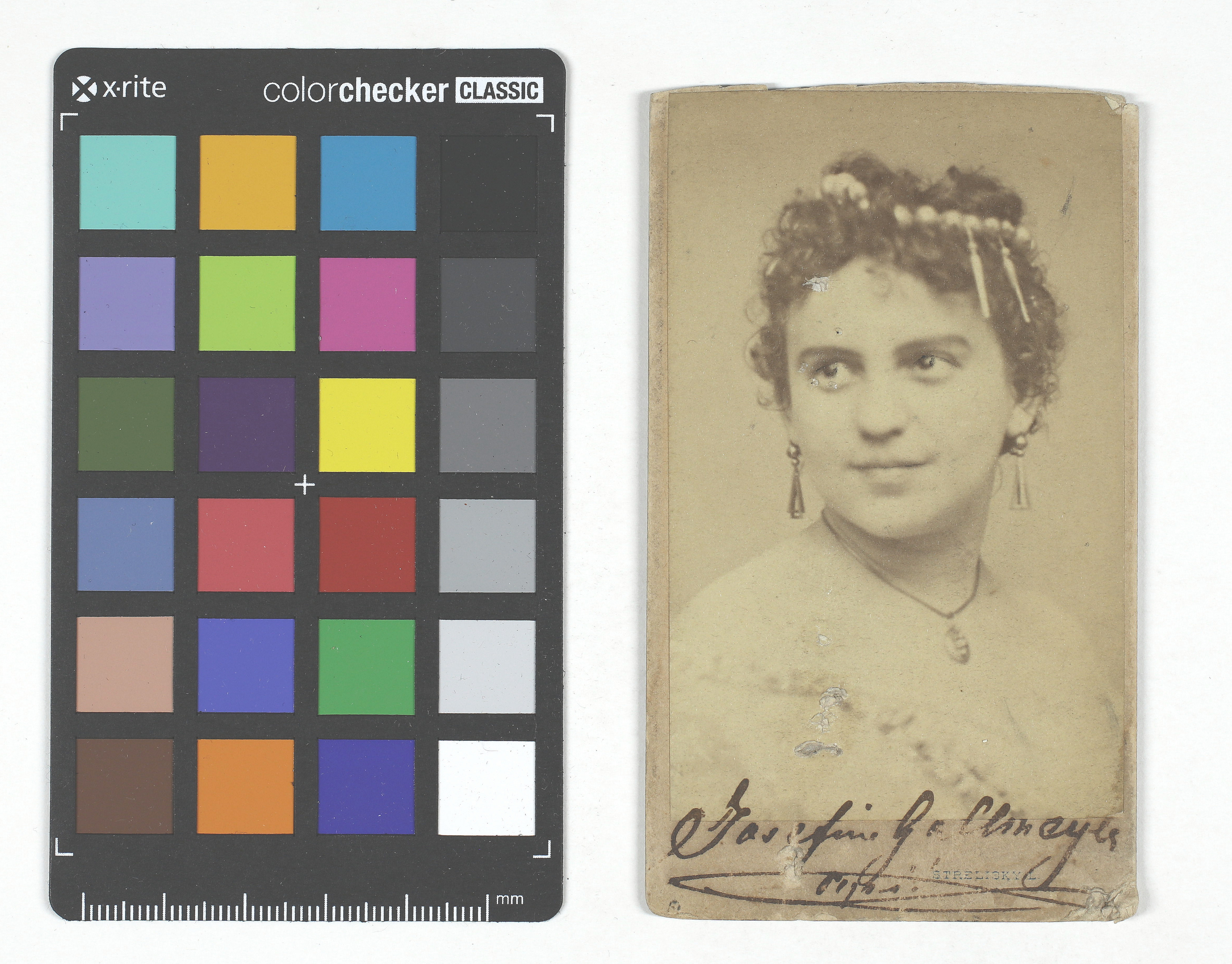 Josefine Gallmeyer (1838-1884), Schauspielerin, Rollenbild (rückseitig eigenhändige Widmung an Max Waldstein)