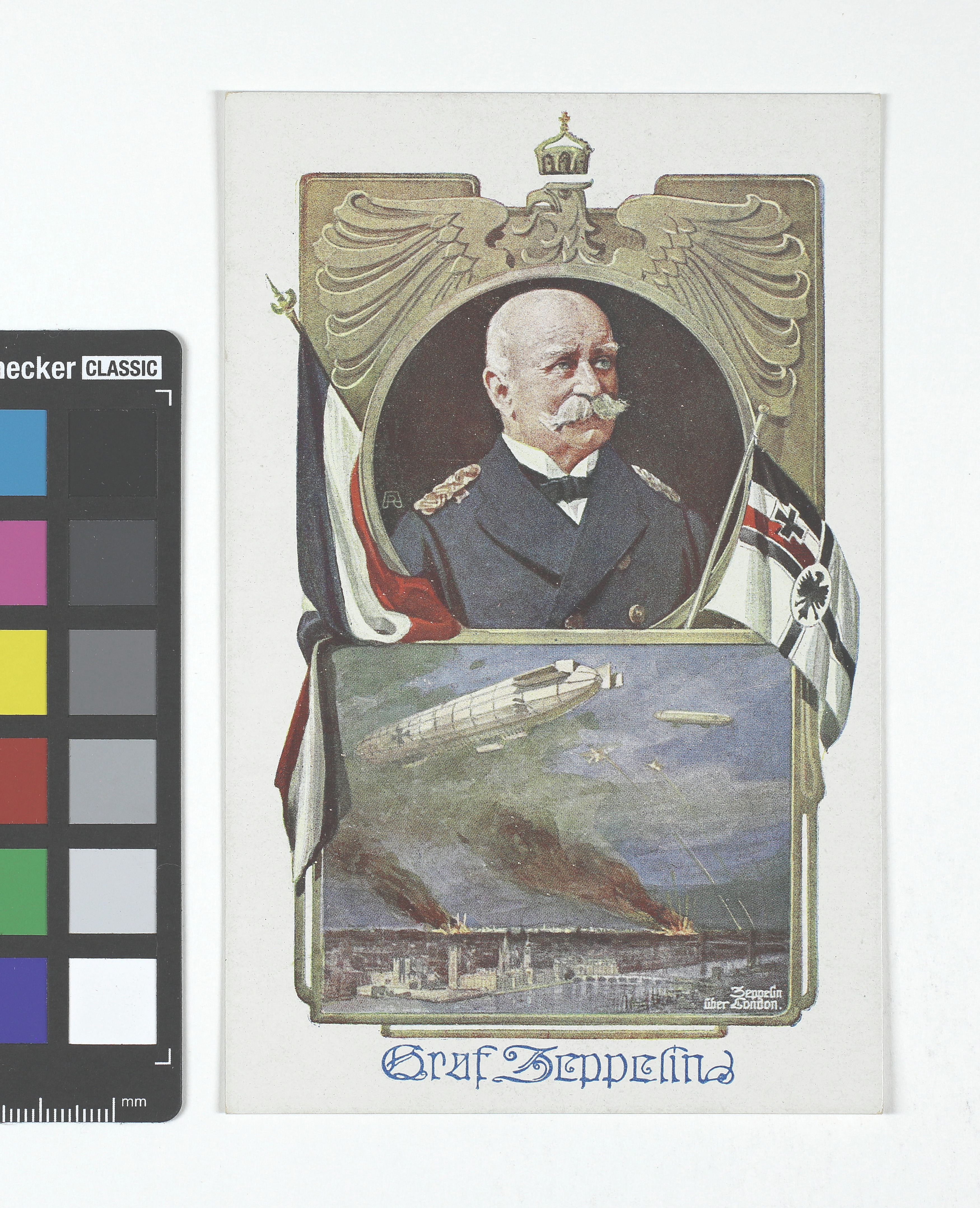 - Kriegspostkarte des Deutschen Schulvereins Nr. 981, Ferdinand Graf von Zeppelin und Zeppelin über London