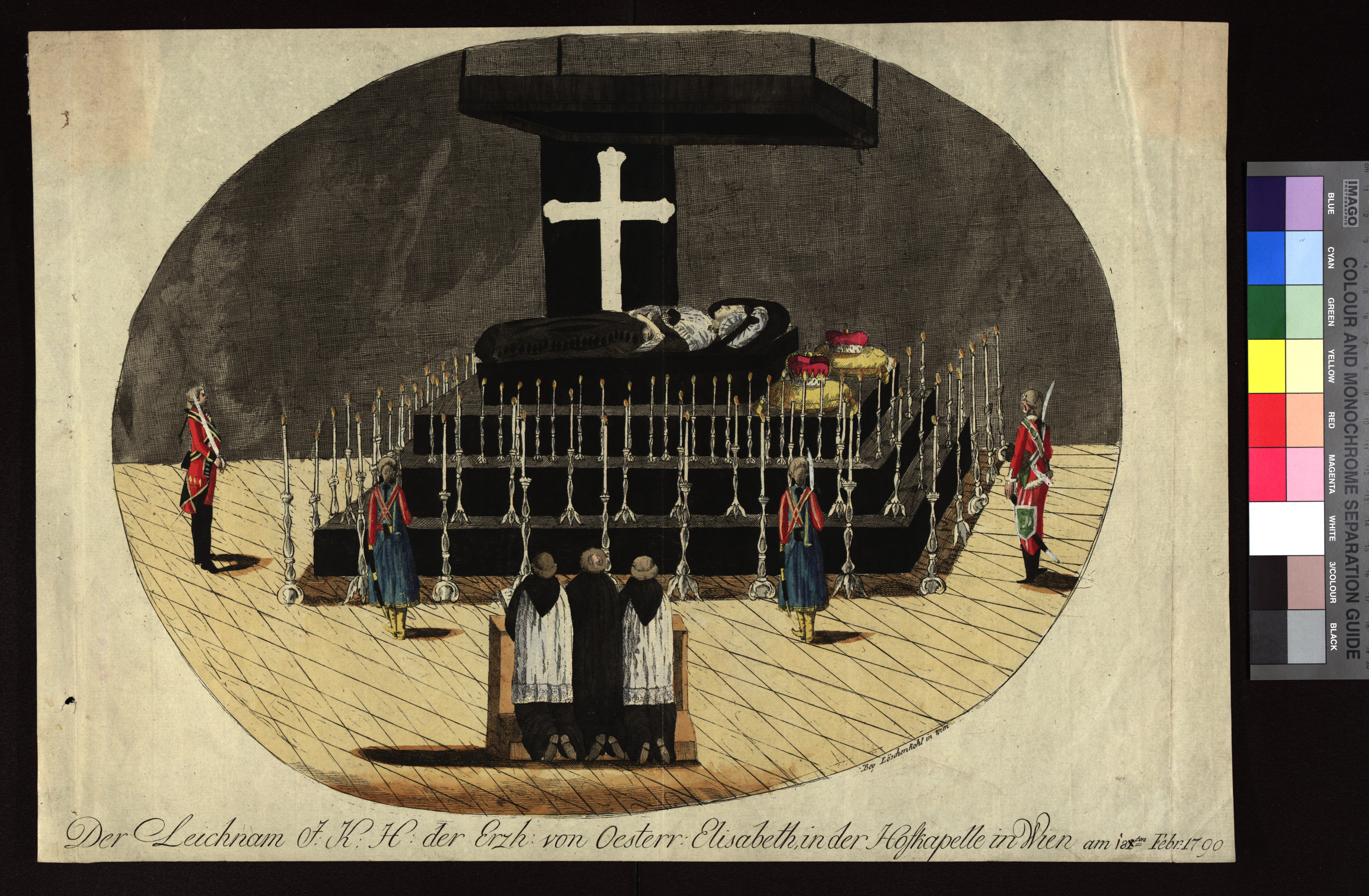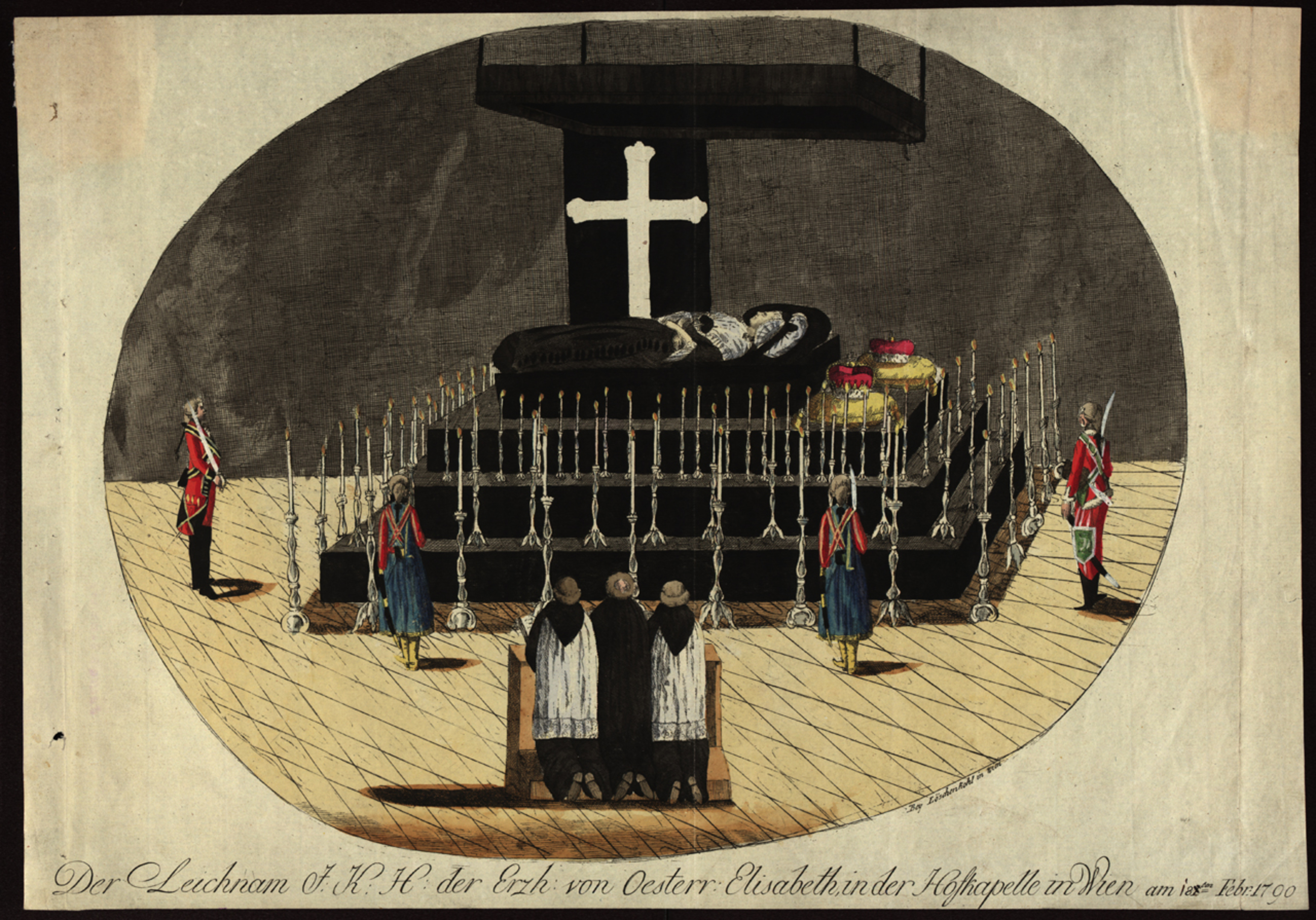 - re. u.: Bey Löschenkohl in Wien; Mi. u.: Der Leichnam I: K: H: der Erzh: von Oesterr: Elisabeth, in der Hofkapelle in Wien am 81ten Febr: 1790