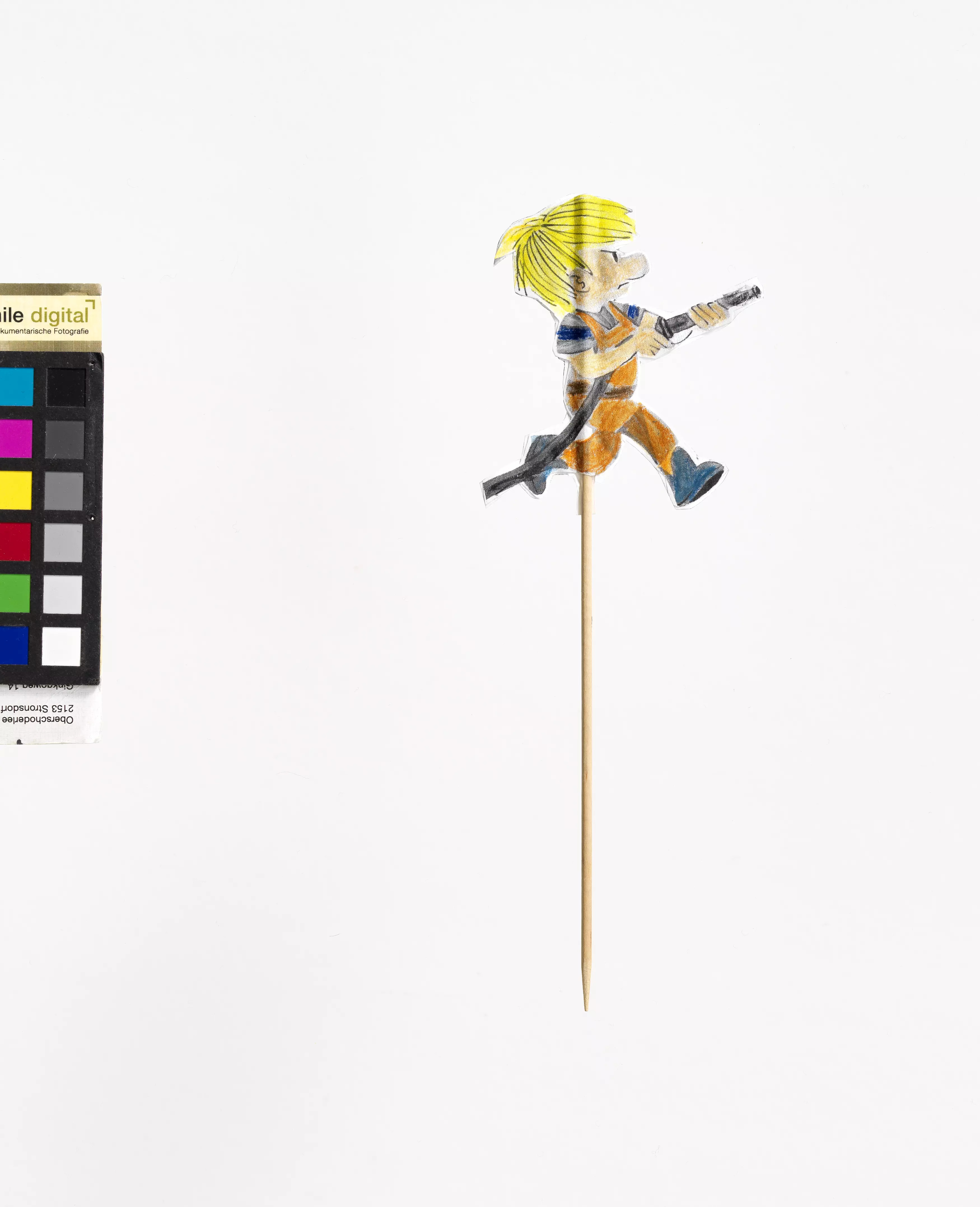 Diese Figur ist Teil einer Gruppe von elf Stabfiguren, die Barbara Halapier nach Vorlagen aus dem Kinderbuch „Die Mäuse der drei Stanisläuse“ von Vera Ferra-Mikura bastelte. Die Figuren wurden bei regelmäßigen Skype-Theater-Vorführungen für die Enkelkinder während des ersten Corona-Lockdowns im Frühjahr 2020 eingesetzt, nachdem Frau Halapier ihre Enkelkinder während der Ausgangsbeschränkungen nicht persönlich treffen konnte. Die Online-Aufführungen erlaubten es der Großmutter, mit ihren Enkelkindern spielerisch Kontakt zu halten und deren Eltern bei der Kinderbetreuung zumindest halbstundenweise zu entlasten.