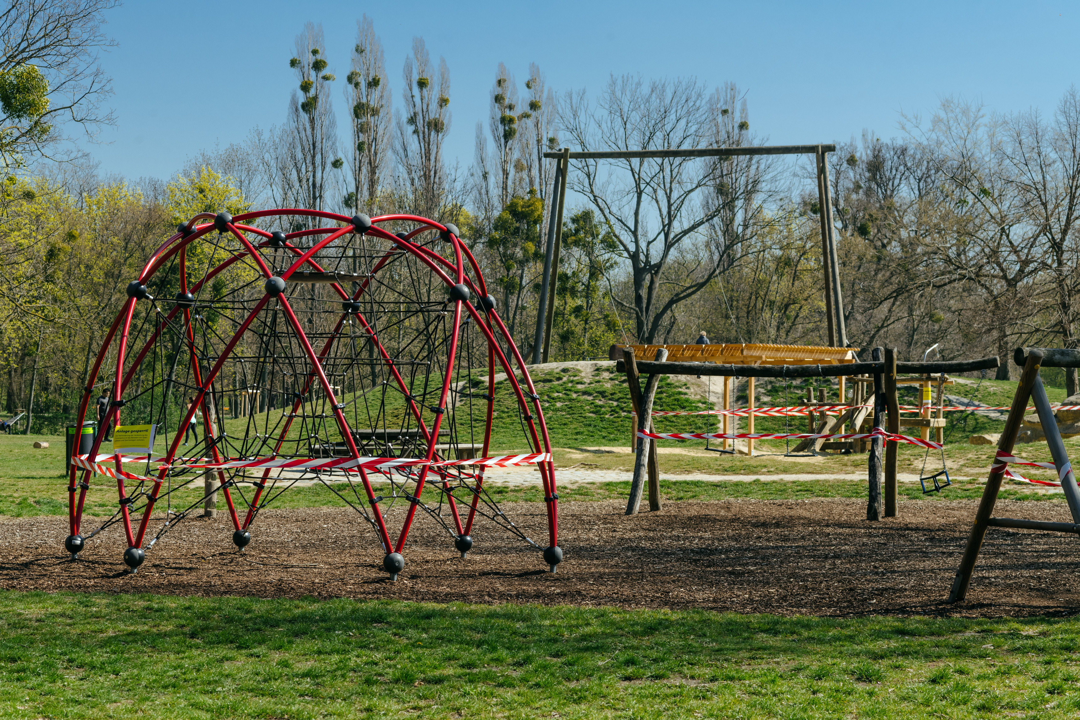 "Wien im Zeichen des Corona-Virus": Lockdown-bedingt abgesperrter Spielplatz auf der Jesuitenwiese im Prater