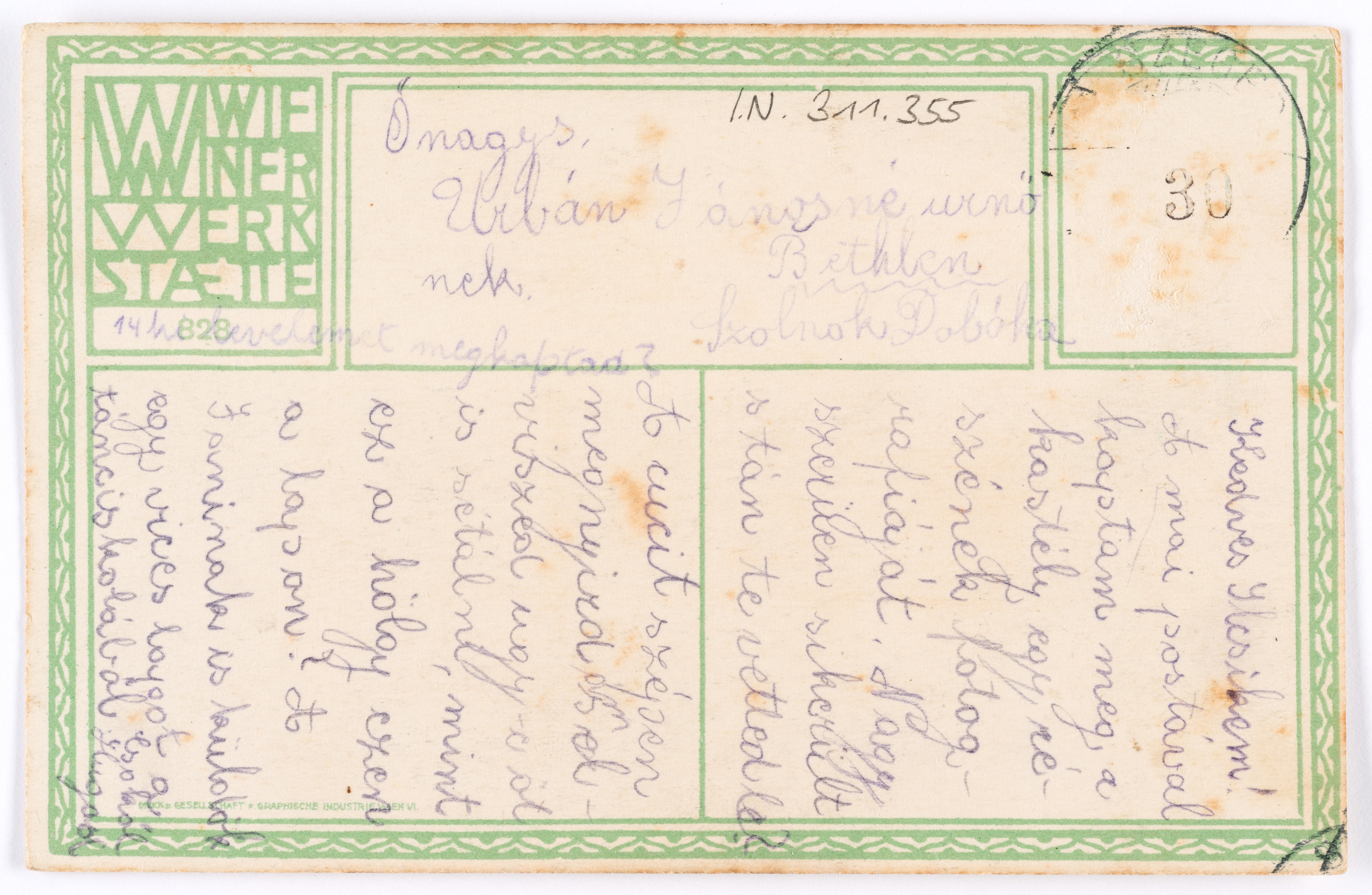 Postkarte der Wiener Werkstätte Nr. 828: Der Monat November
