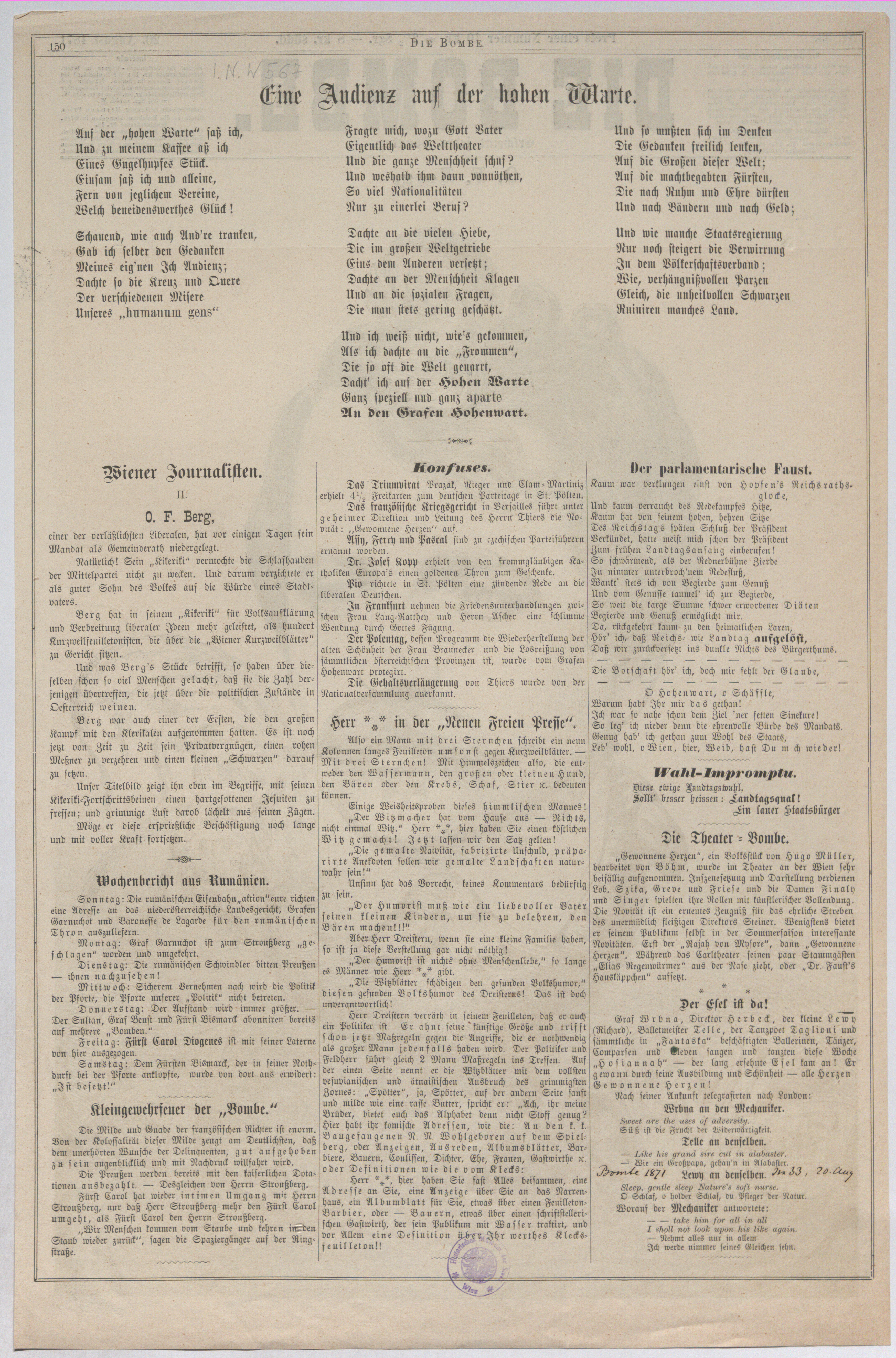 O. F. Berg; Kikeriki (Titelblatt von "Die Bombe")