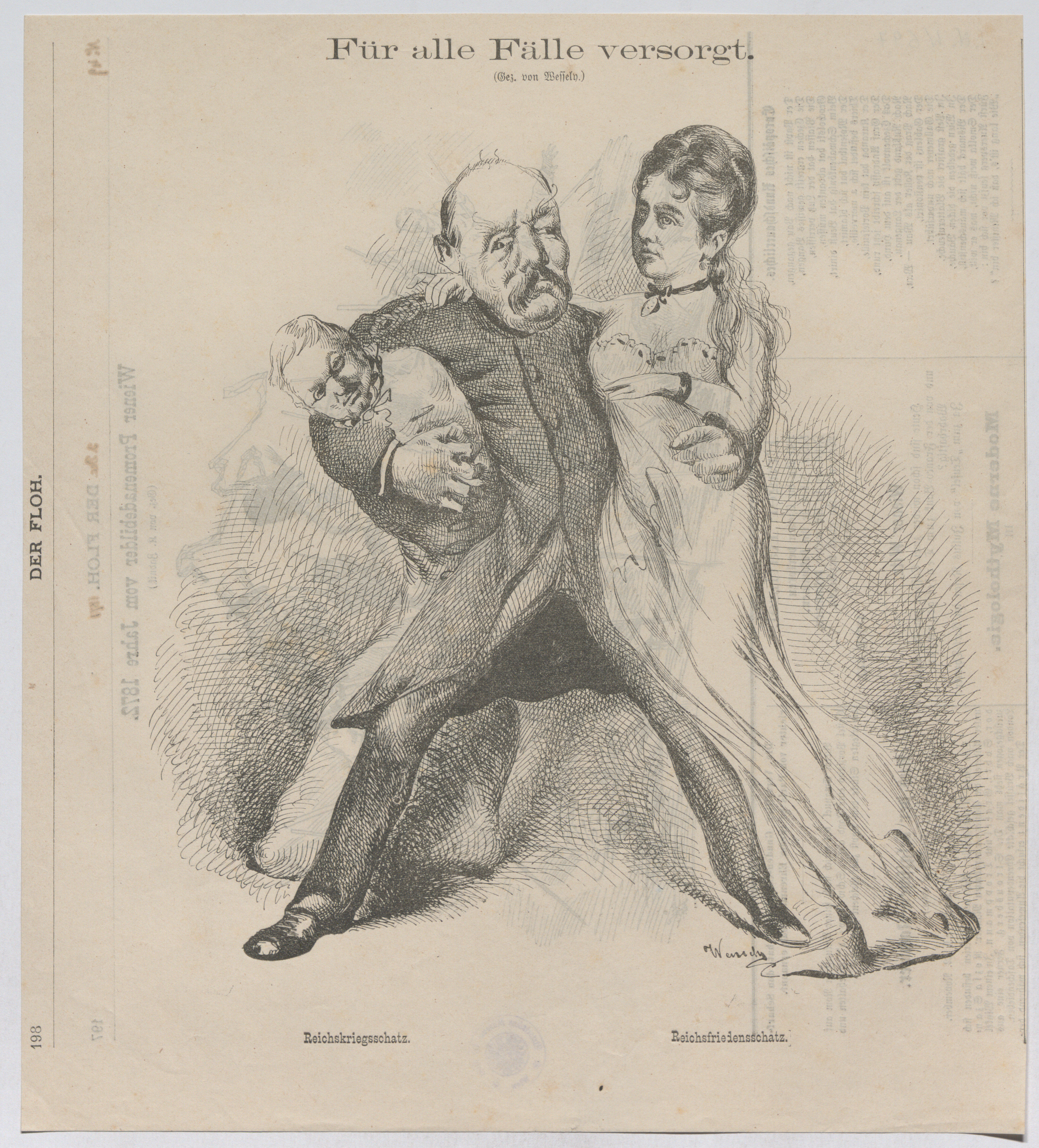 Bismarck, Reichskriegsschatz, Reichsfriedensschatz; Für alle Fälle versorgt (Karikatur aus "Der Floh")