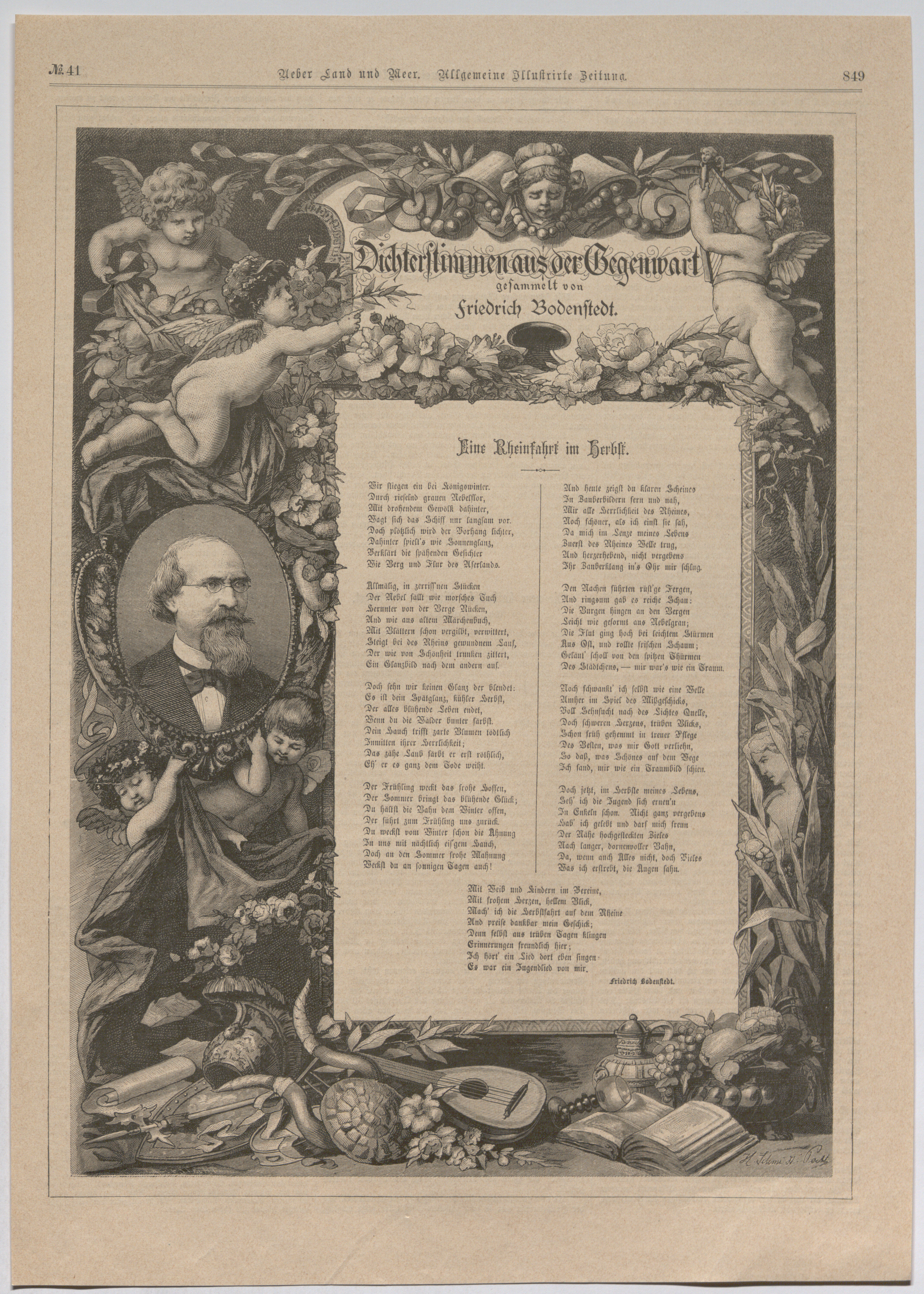 - Friedrich Bodenstedt; Porträt und Gedicht (aus "Ueber Land und Meer. Allgemeine Illustrirte Zeitung")