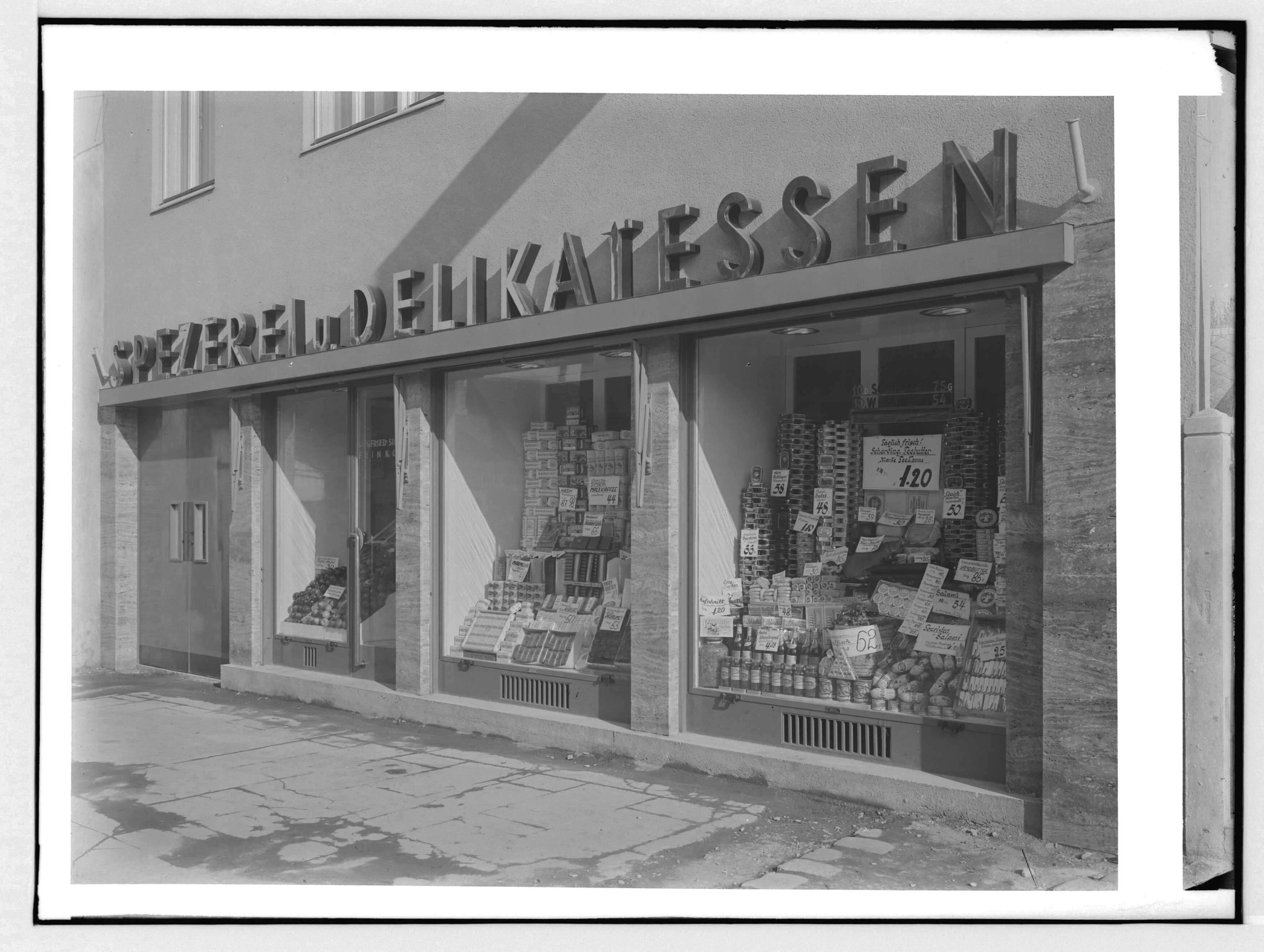 Spezerei und Delikatessengeschäft Siegfried Singer, Wiener Straße, Atzgersdorf (heute 23., Breitenfurter Straße 387-389), Außenansicht
