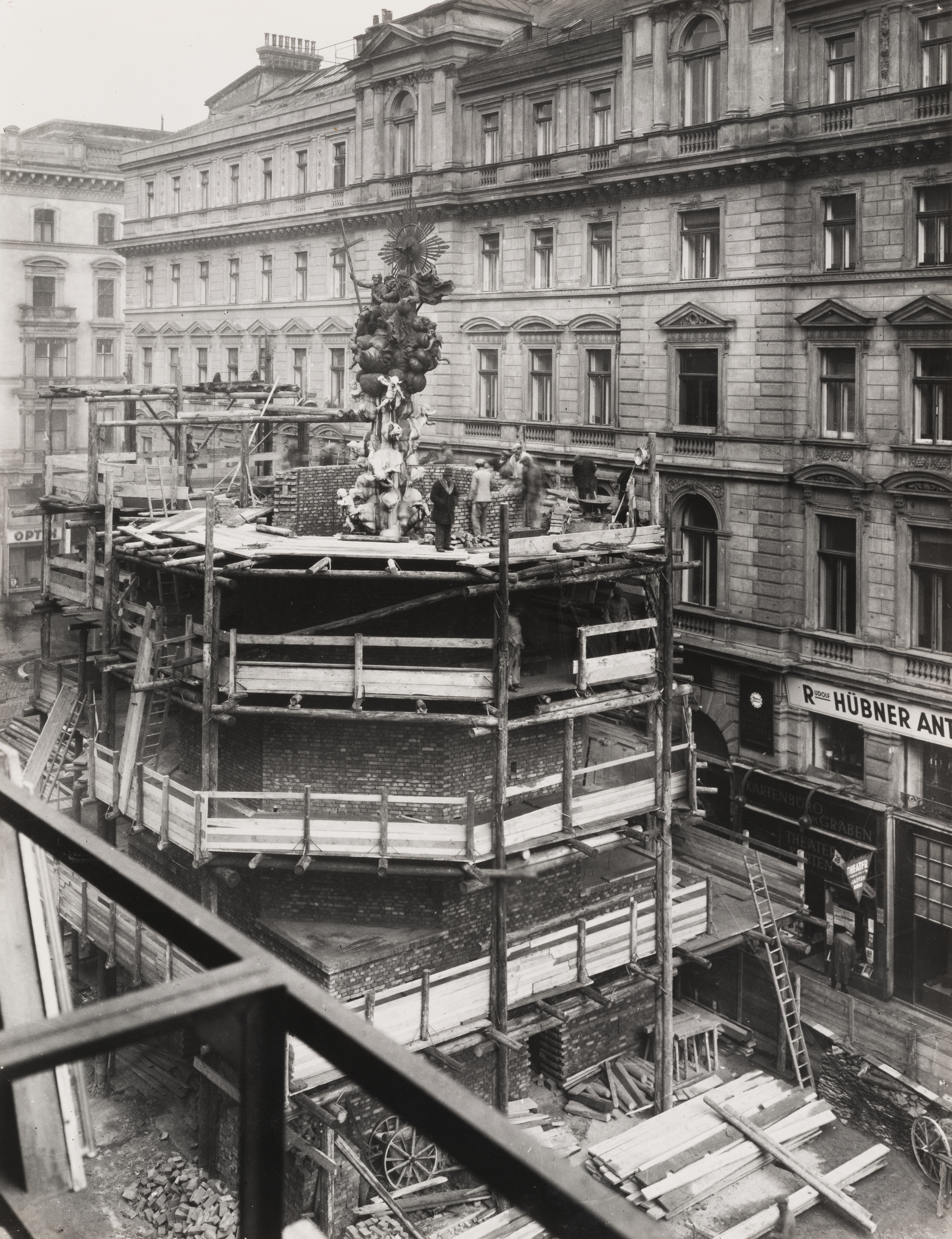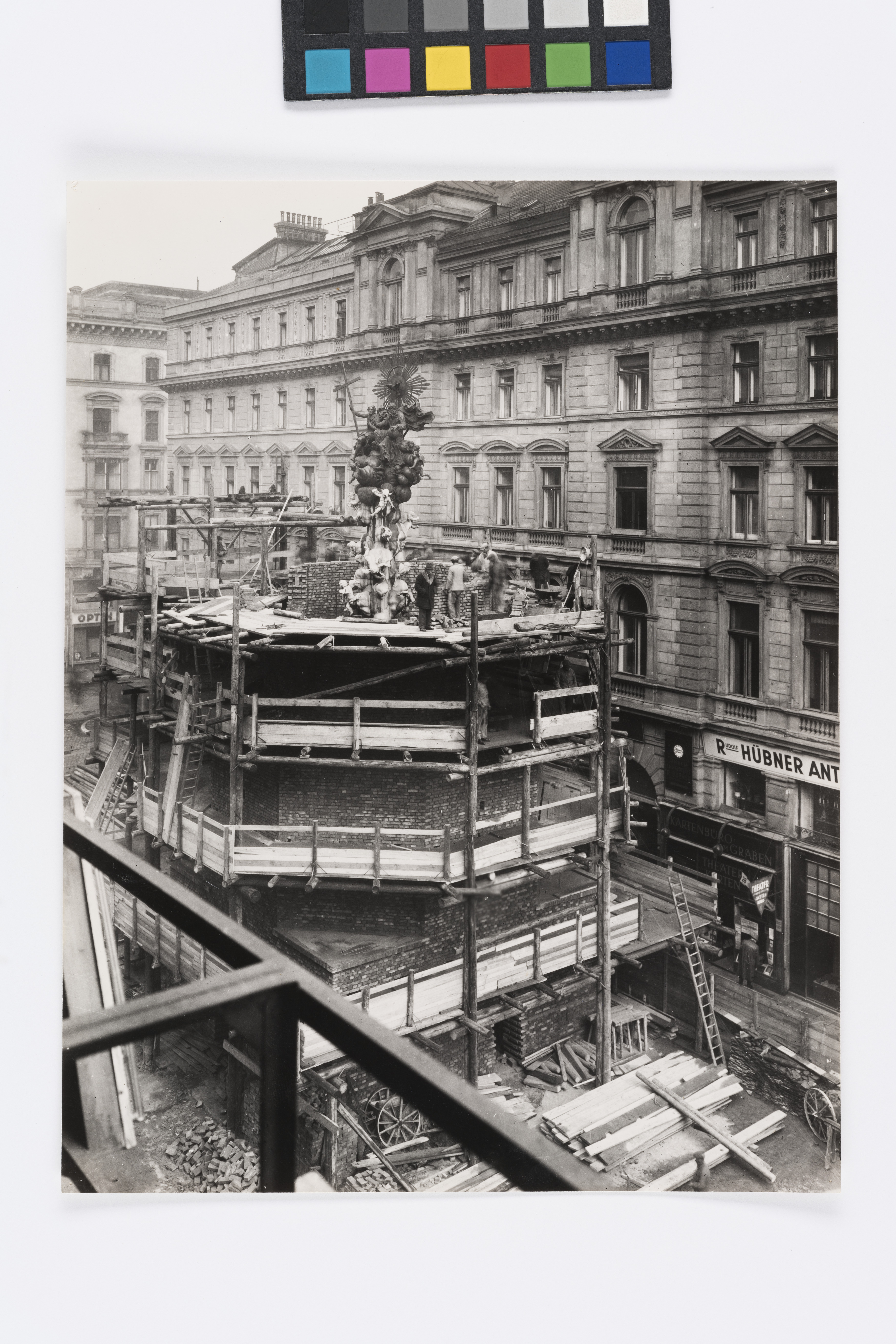 "Einrüstung der Pestsäule am Graben gegen Bombenschäden 1943"