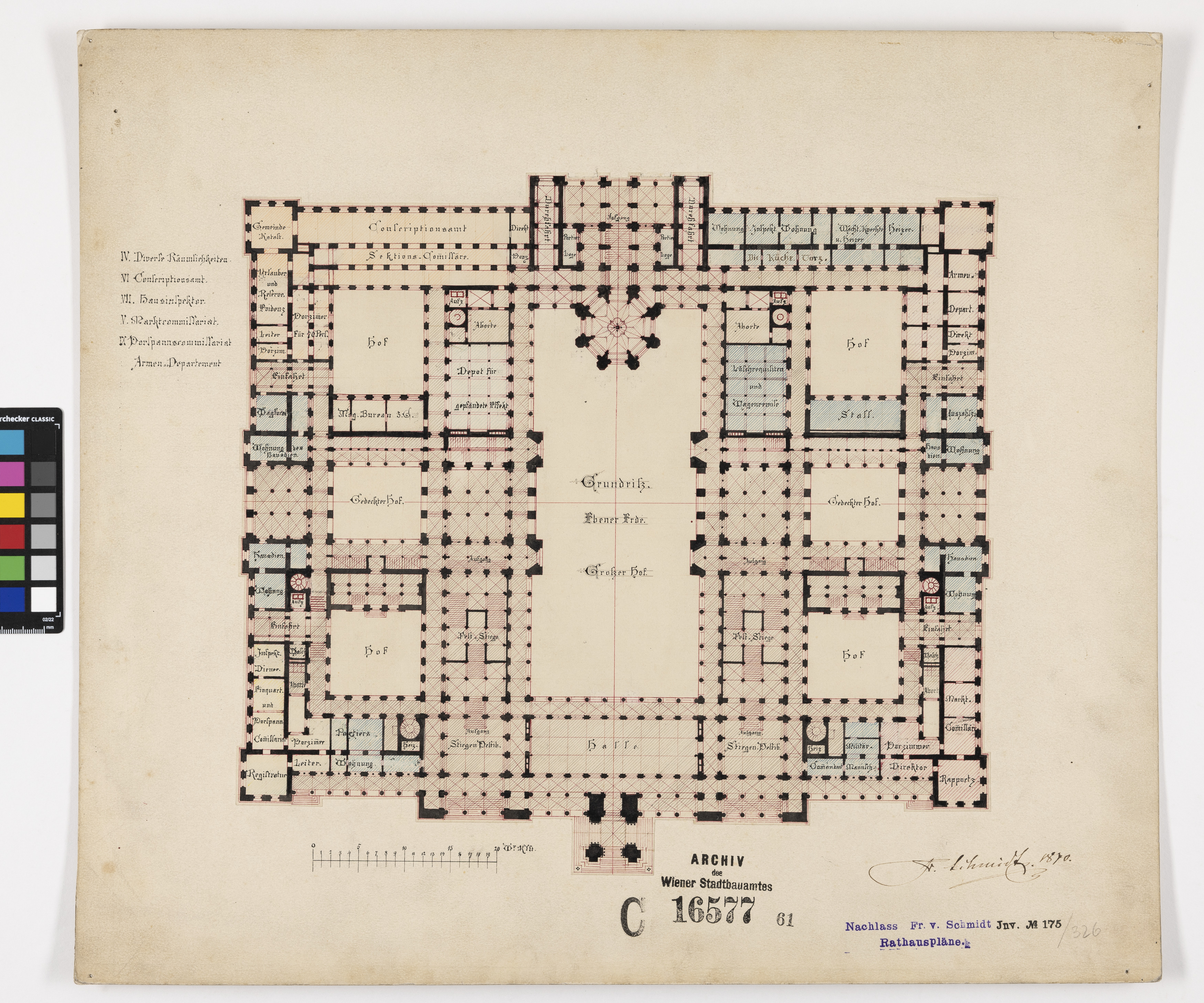 Neues Rathaus, Projekt mit Brunnenhaus, Grundriss - Erdgeschoss mit Raumeinteilung