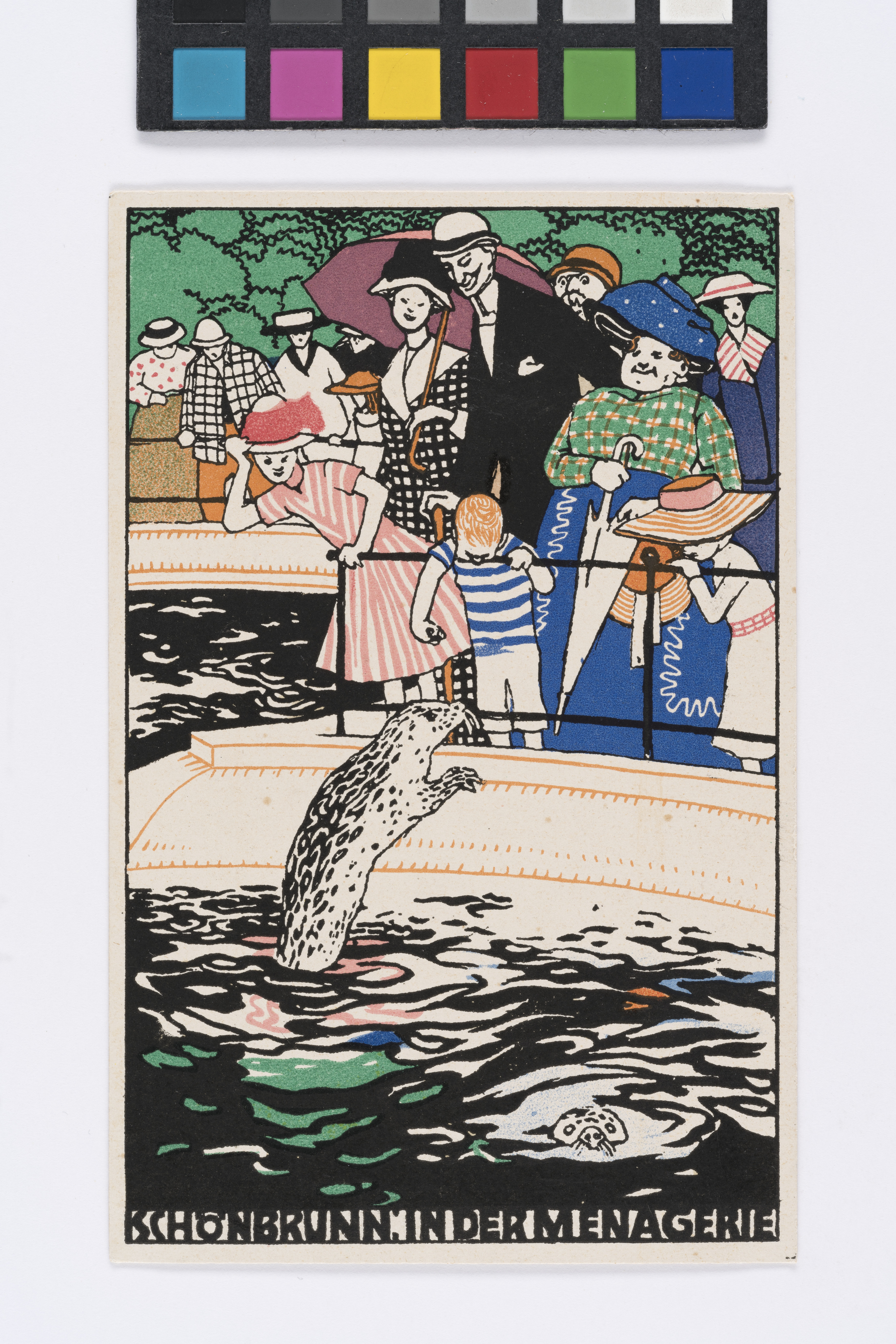 Postkarte der Wiener Werkstätte Nr. 661: Schönbrunn: In der Menagerie