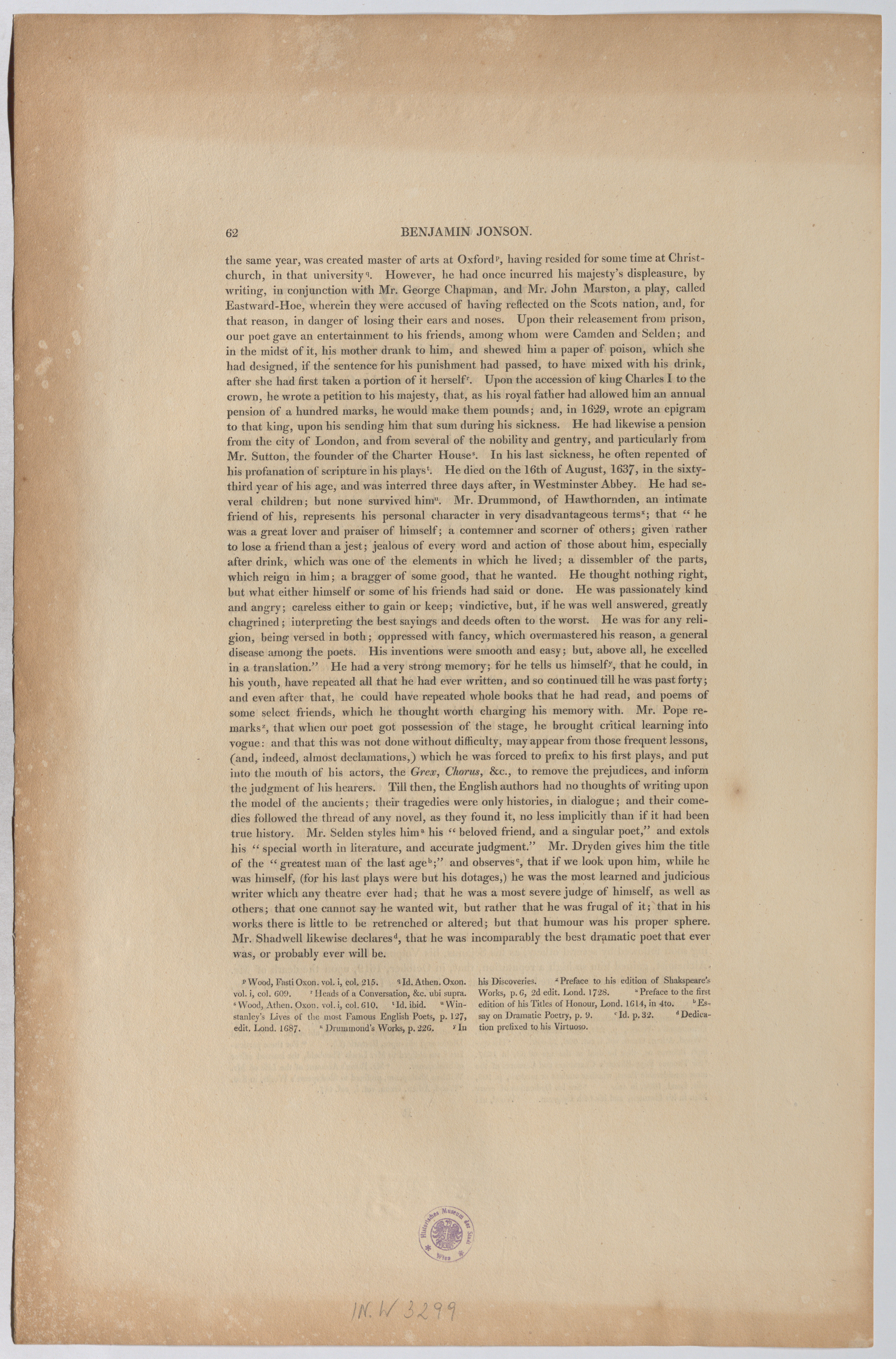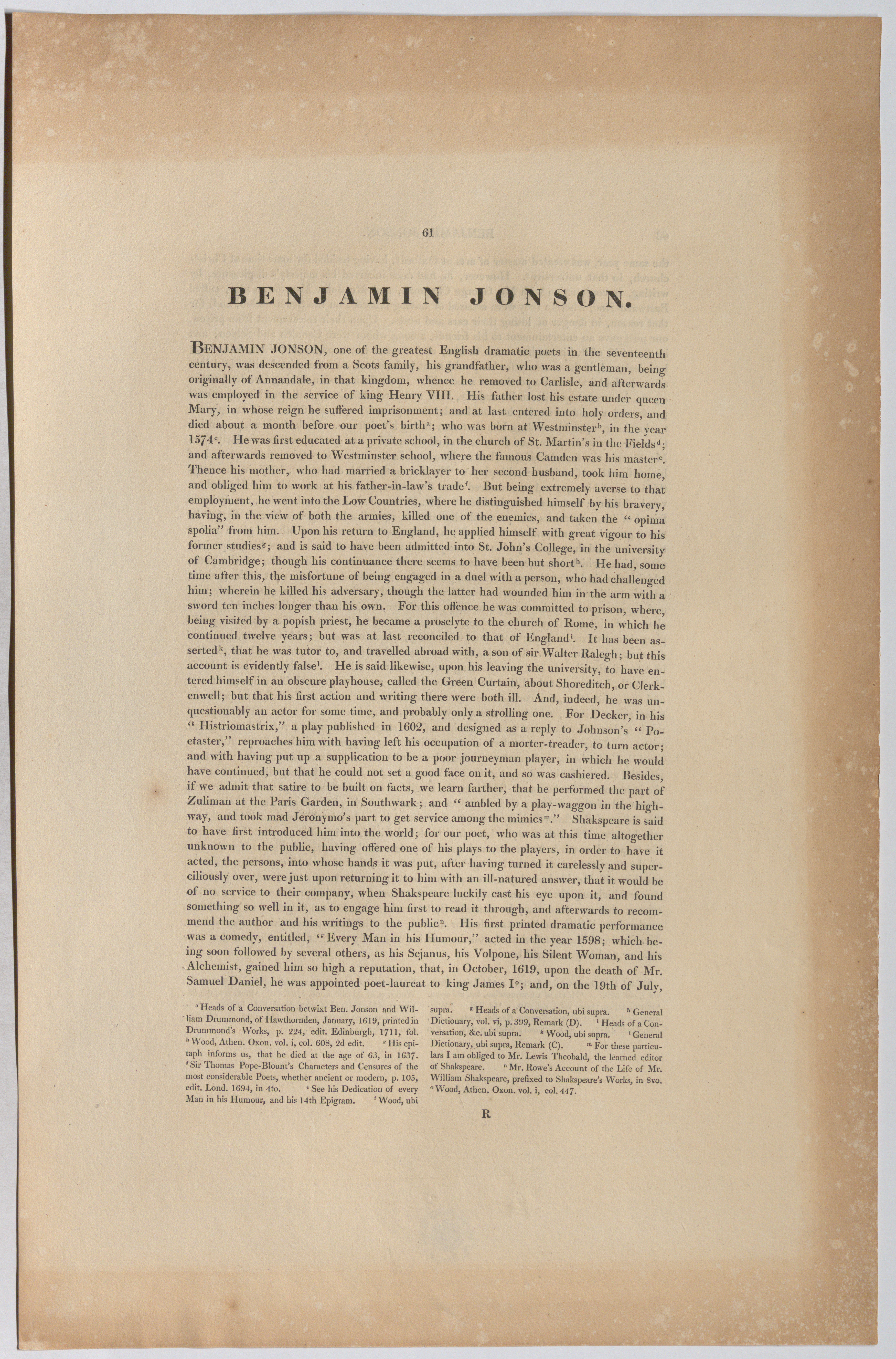 - Biografie Benjamin Jonson, englischer Bühnenautor und Dichter (aus "The heads of illustrious persons of Great Britain")