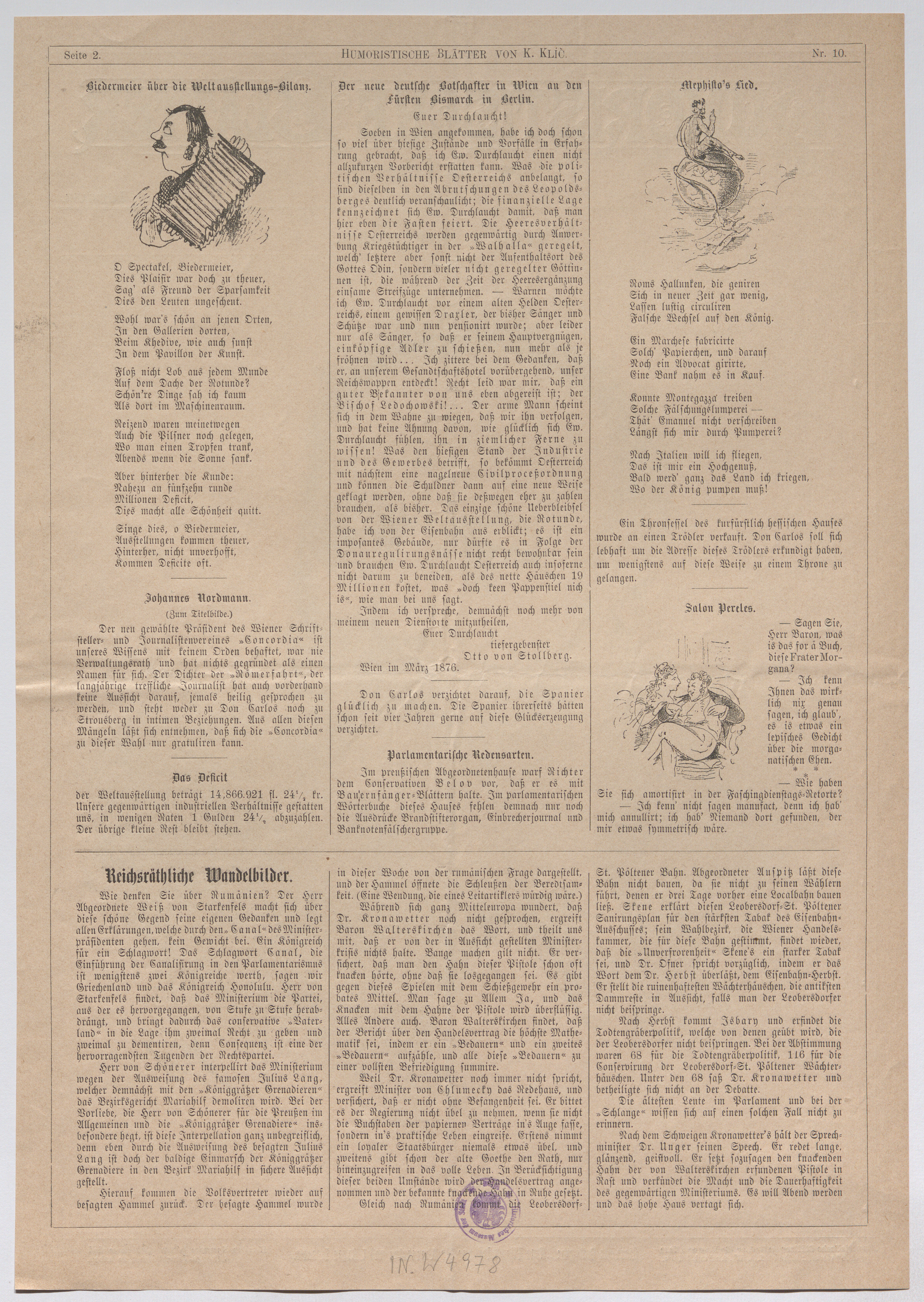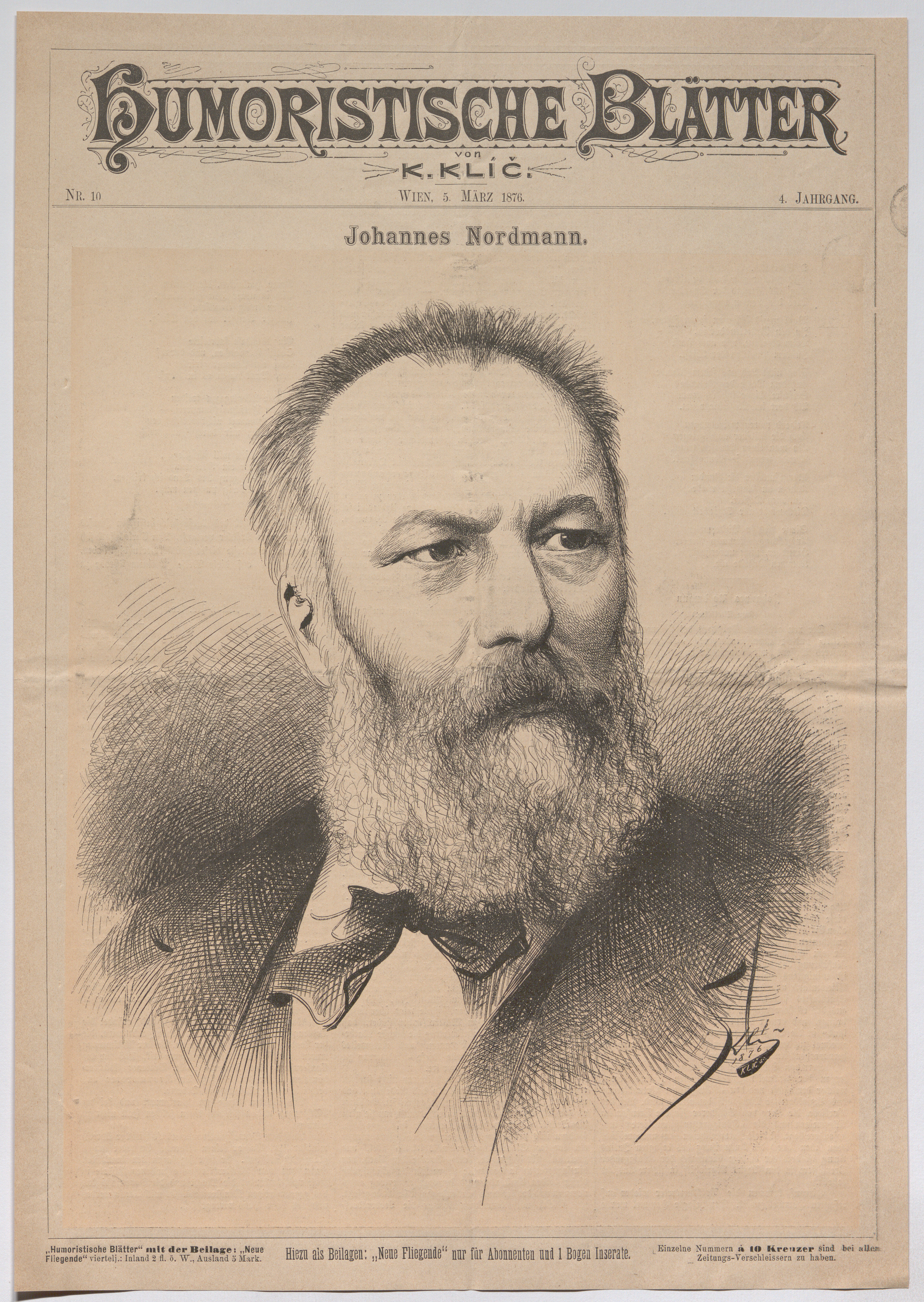 - Johann Nordmann, Schriftsteller und Journalist (Titelblatt von "Humoristische Blätter")