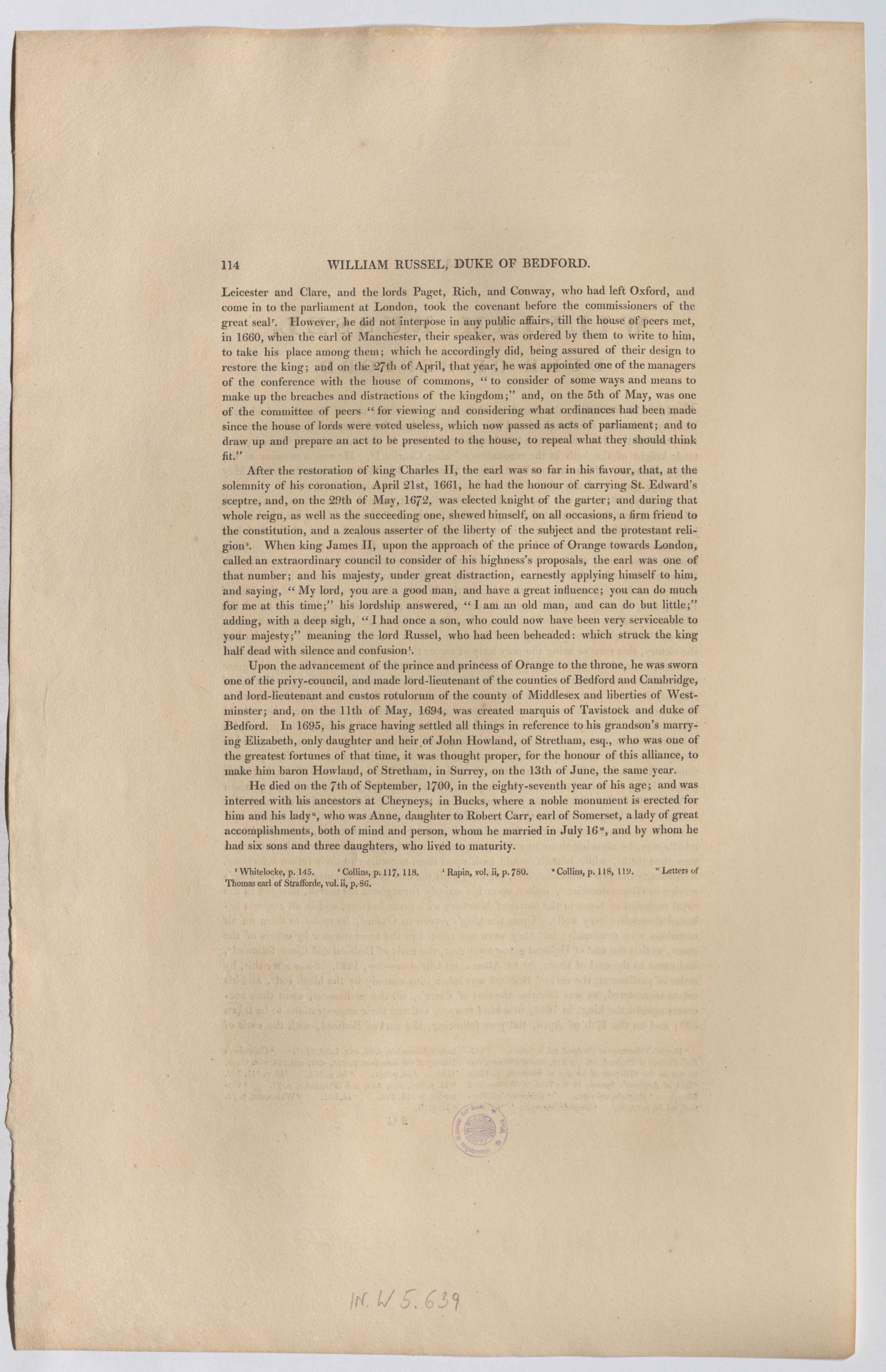 - Biografie von William Russell, 1st Duke of Bedford (aus "The heads of illustrious persons of Great Britain")