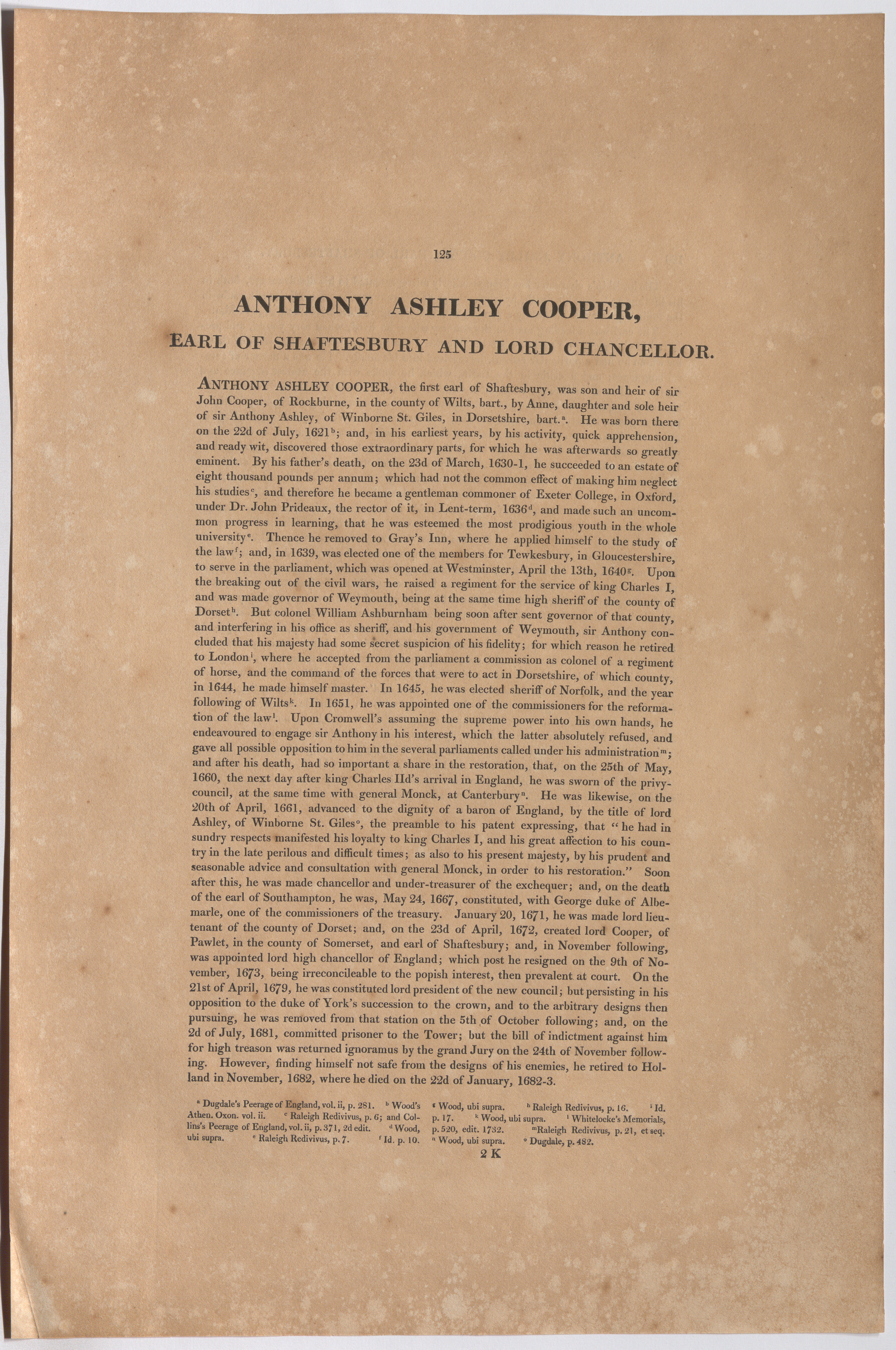 "Anthony Ashley Cooper, Earl of Shaftesbury and Lord Chancellor."