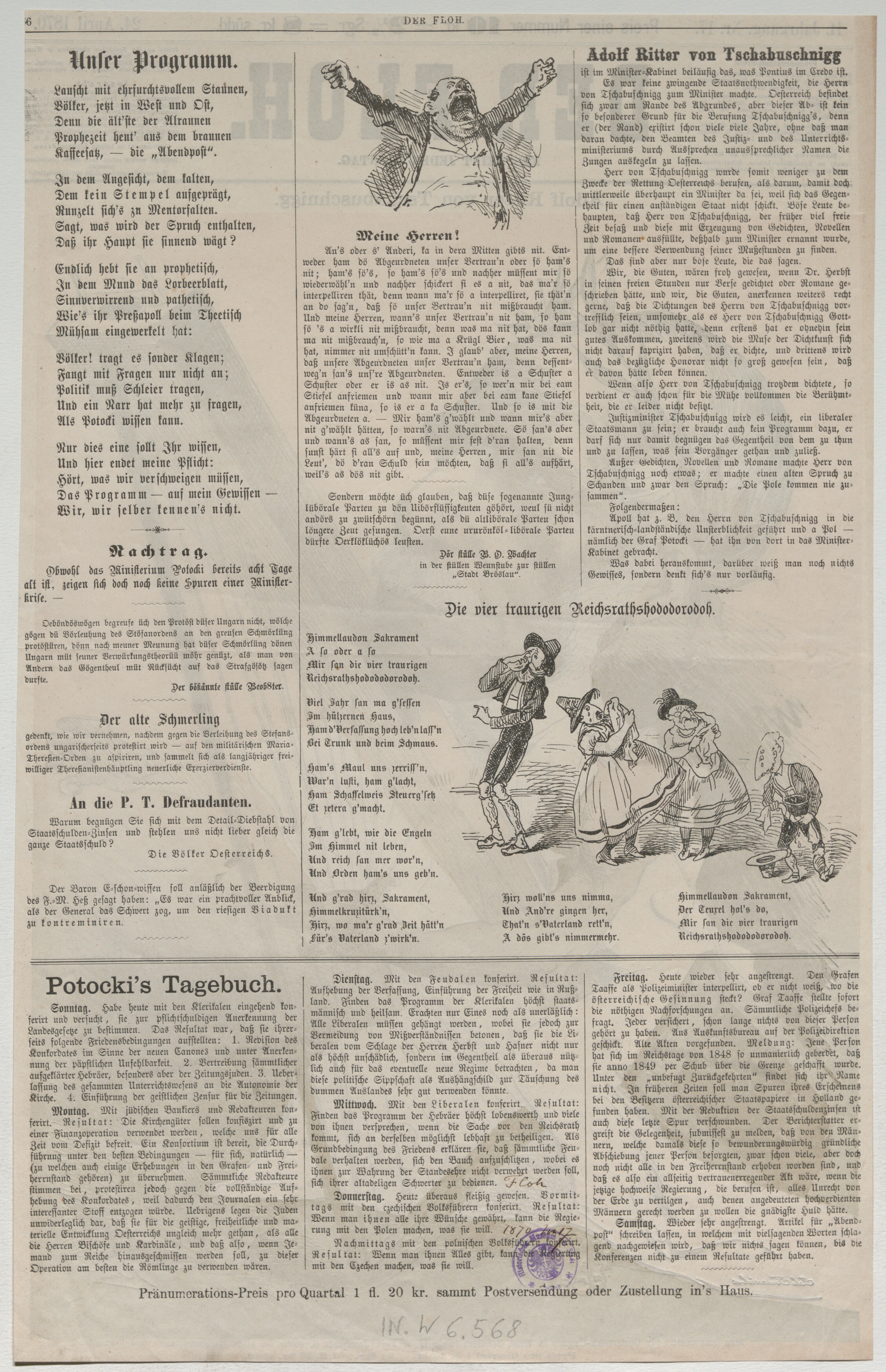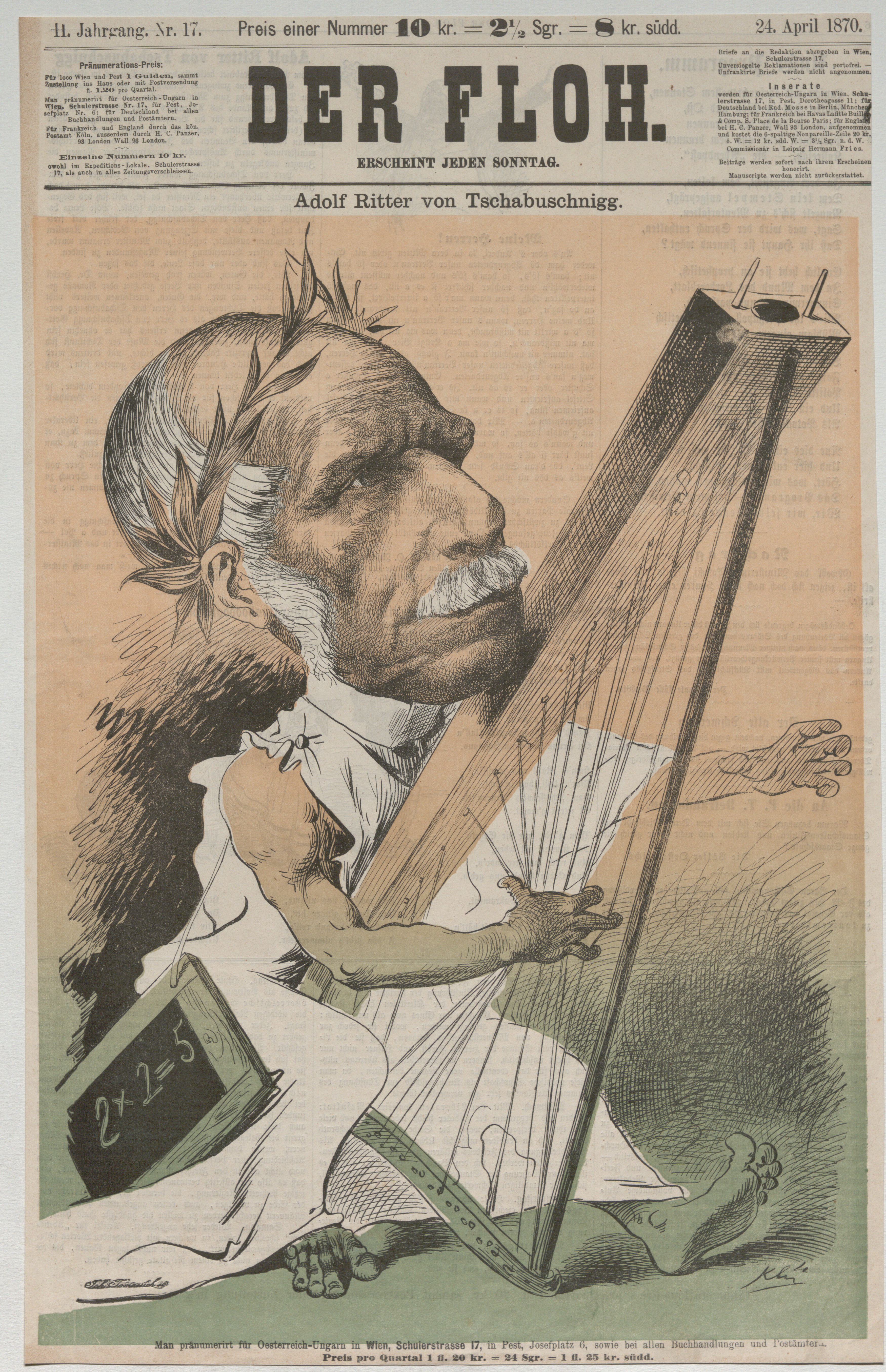 - Adolf Ritter von Tschabuschnigg, Erzähler, Lyriker und Justizminister als klassischer Dichter (Titelblatt von "Der Floh")