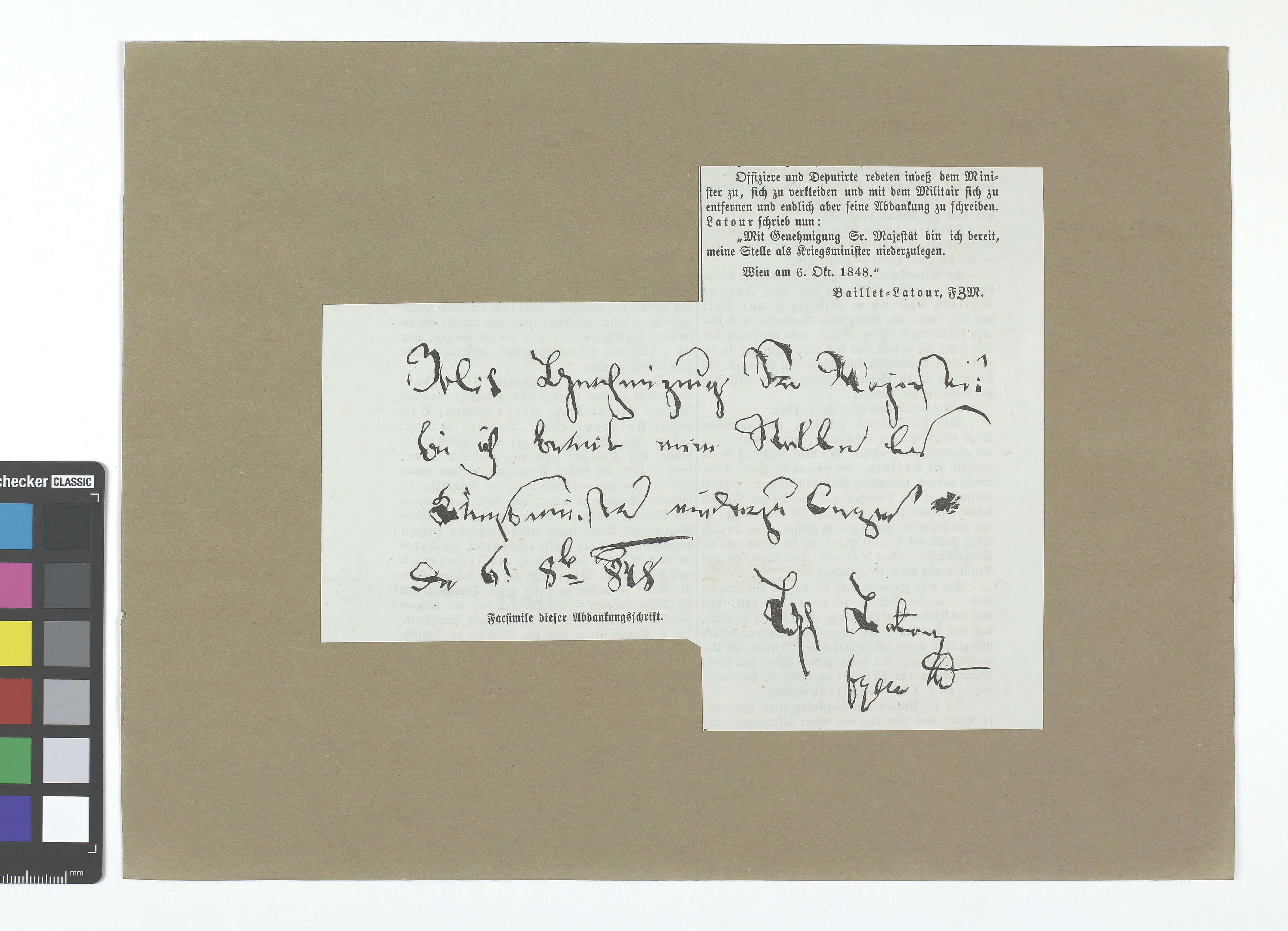 Handschrift von Theodor Graf Baillet de Latour (1780-1848) (aus: "Geschichte Österreichs von Alexander Patuzzi, 2. Theil)