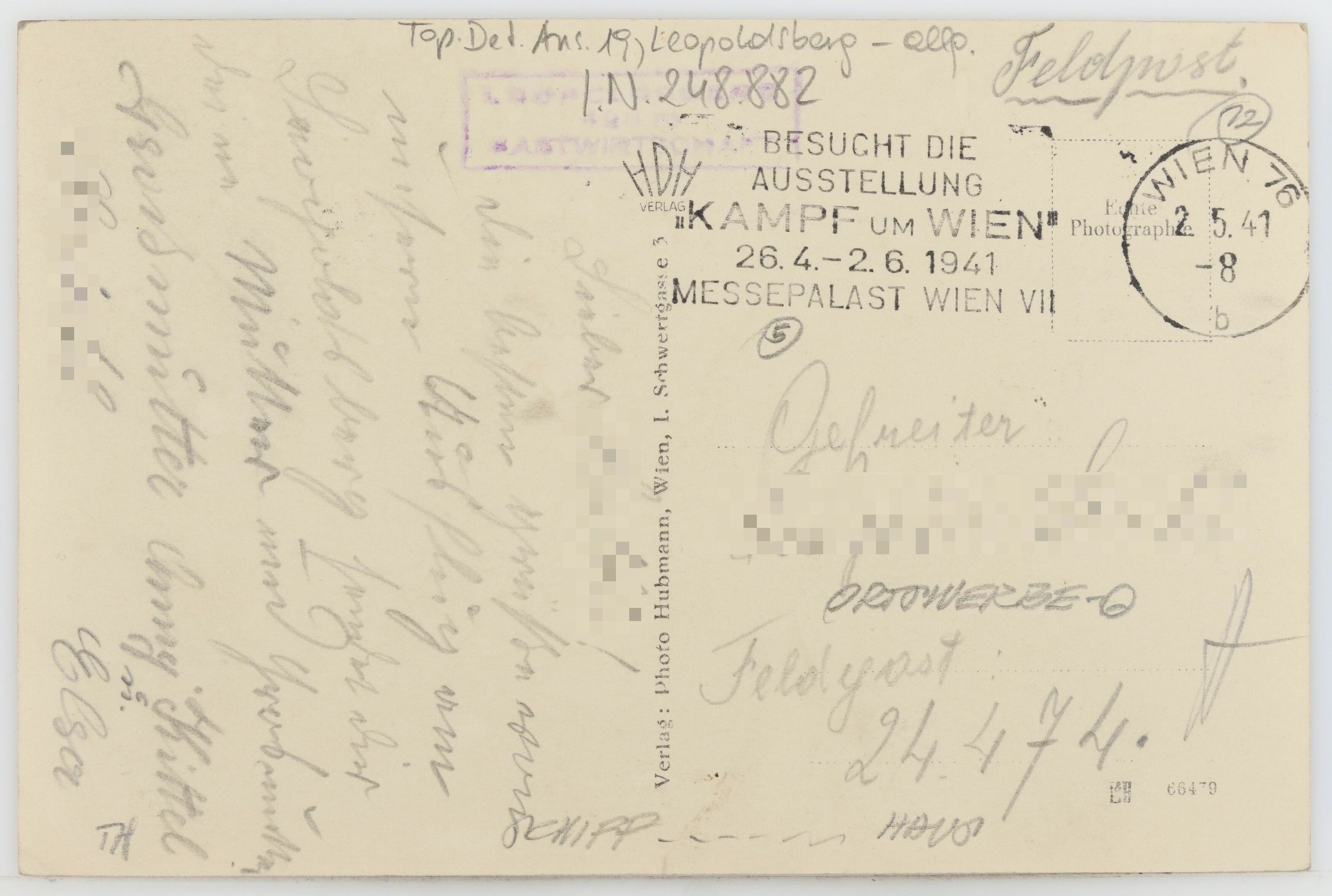 Die besten Grüße von unserem Ausflug am Leopoldsberg sendet dir deine Mutter und Großmutter, Großmutter Emmy Kittel u. ElsaTranskription / Übersetzung durch Ehrenamtliche im Rahmen der Crowdsourcing Aktion 2021/2022 (nicht überprüft durch das Wien Museum)