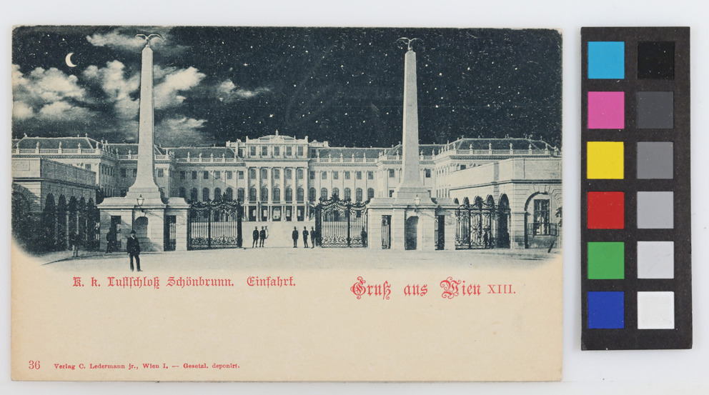 13., Schloss Schönbrunn - Einfahrt, bei Nacht, Ansichtskarte