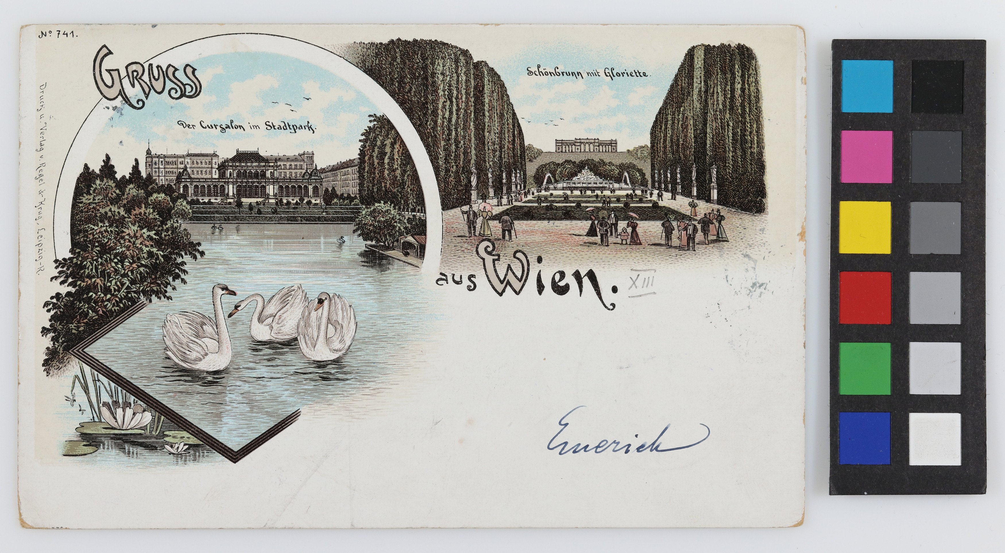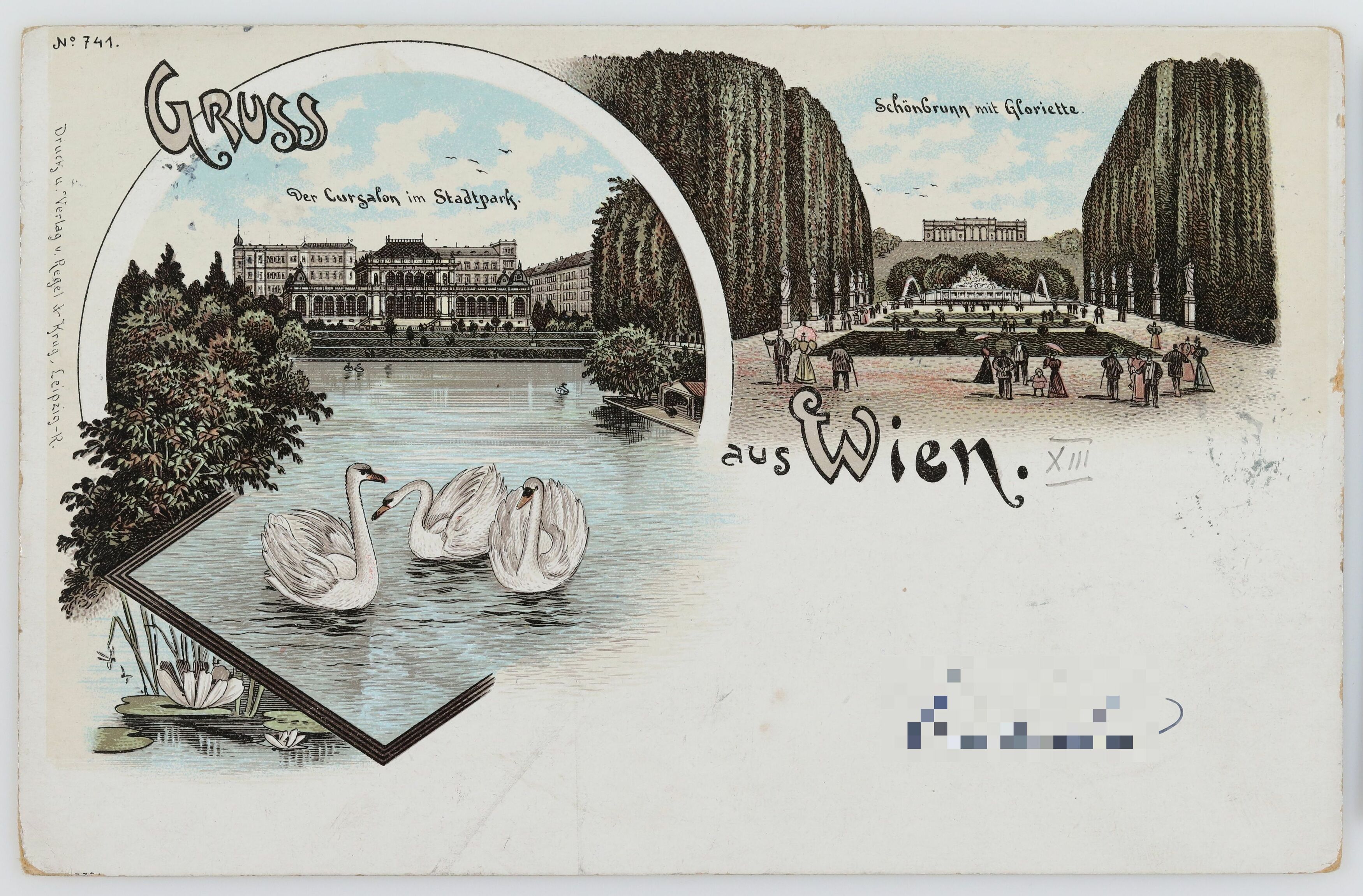 Gruss aus Wien. Der Cursalon im Stadtpark, Schönnbrunn mit Gloriette