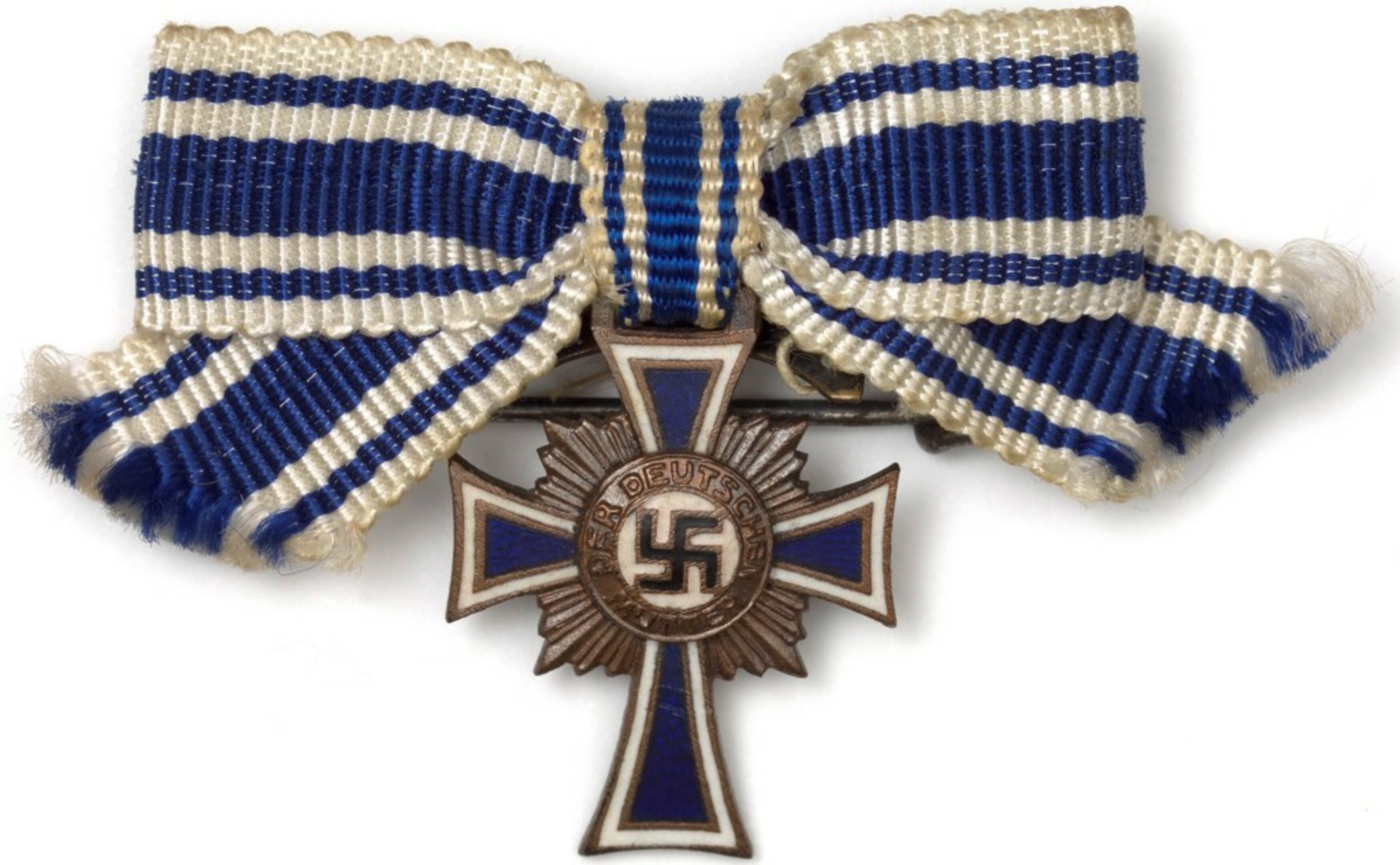 Das “Ehrenkreuz der Deutschen Mutter” (kurz “Mutterkreuz”) wurde ab 16. Dezember 1938 von der NSDAP als “sichtbares Zeichen des Dankes des Deutschen Volkes an kinderreiche Mütter” gestiftet und in drei Stufen vergeben: Ab vier Kindern wurde Müttern das bronzene, ab sechs Kindern das silberne und ab acht Kindern das goldene “Mutterkreuz” verliehen - vorausgesetzt, die Mütter waren gemäß der herrschenden NS-Ideologie “arischer” Herkunft und die Kinder “erbgesund”.