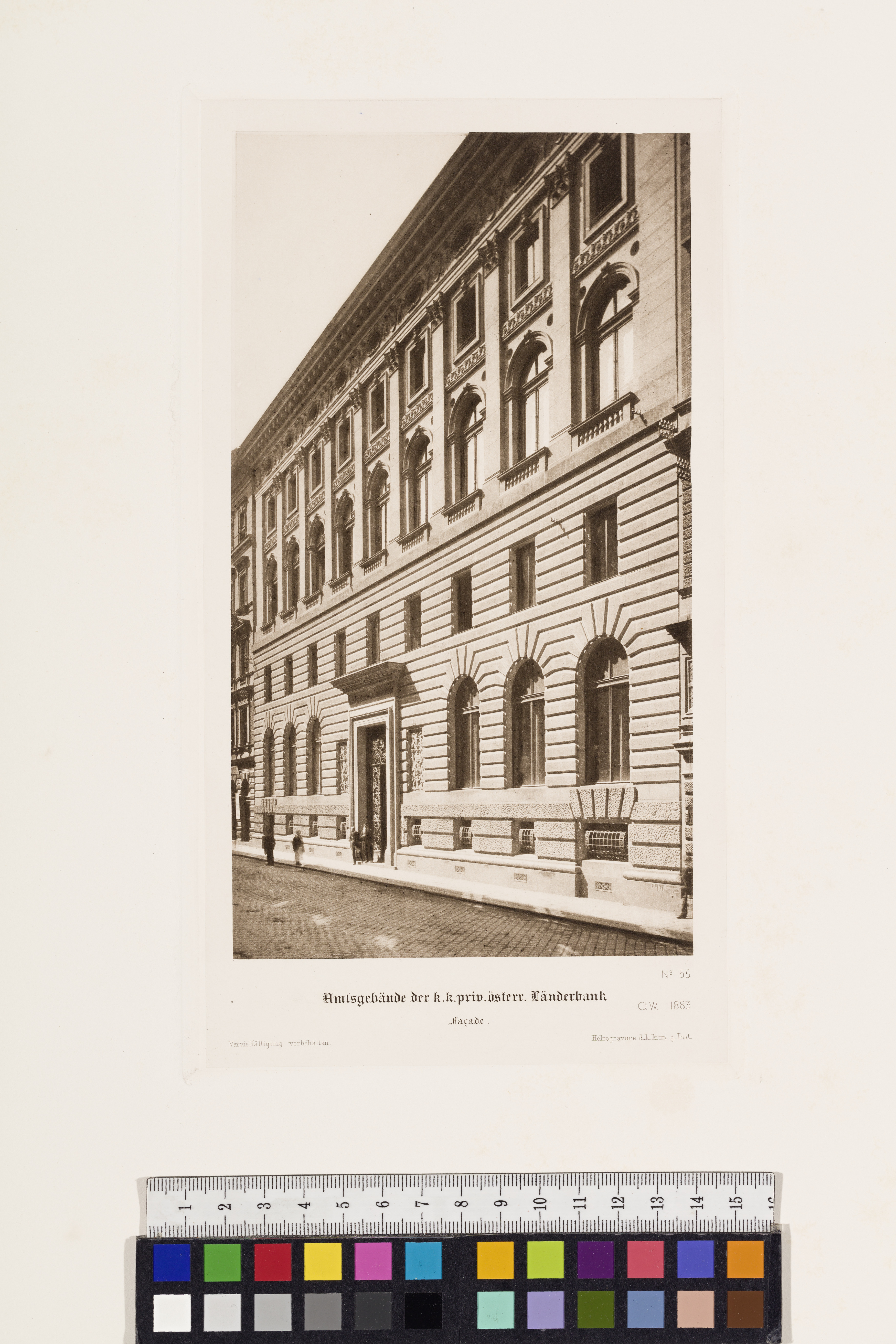 "Amtsgebäude der k.k. priv. österr. Länderbank / Façade."
