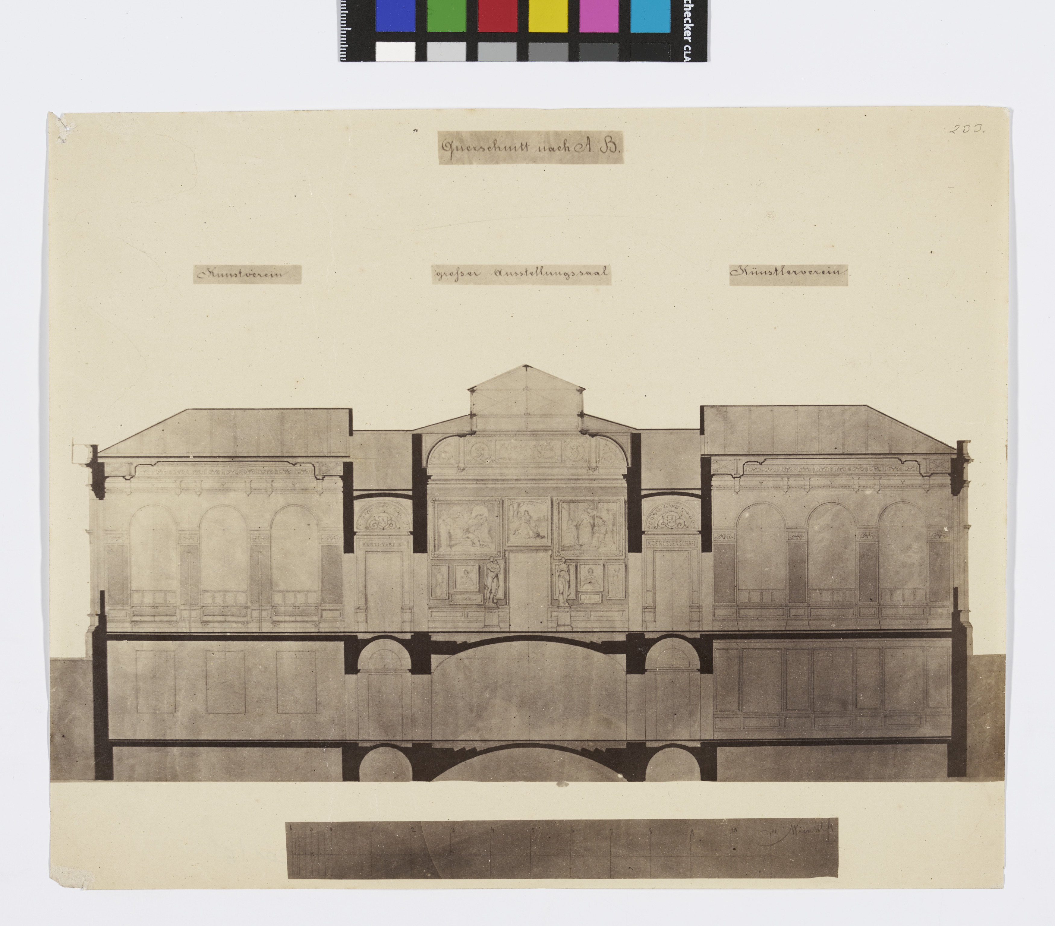 - m.o. “Querschnitt nach A B.”; l.o. “Kunstverein”; m.o. “grosser Ausstellungssaal”; r.o. “Künstlerverein”;