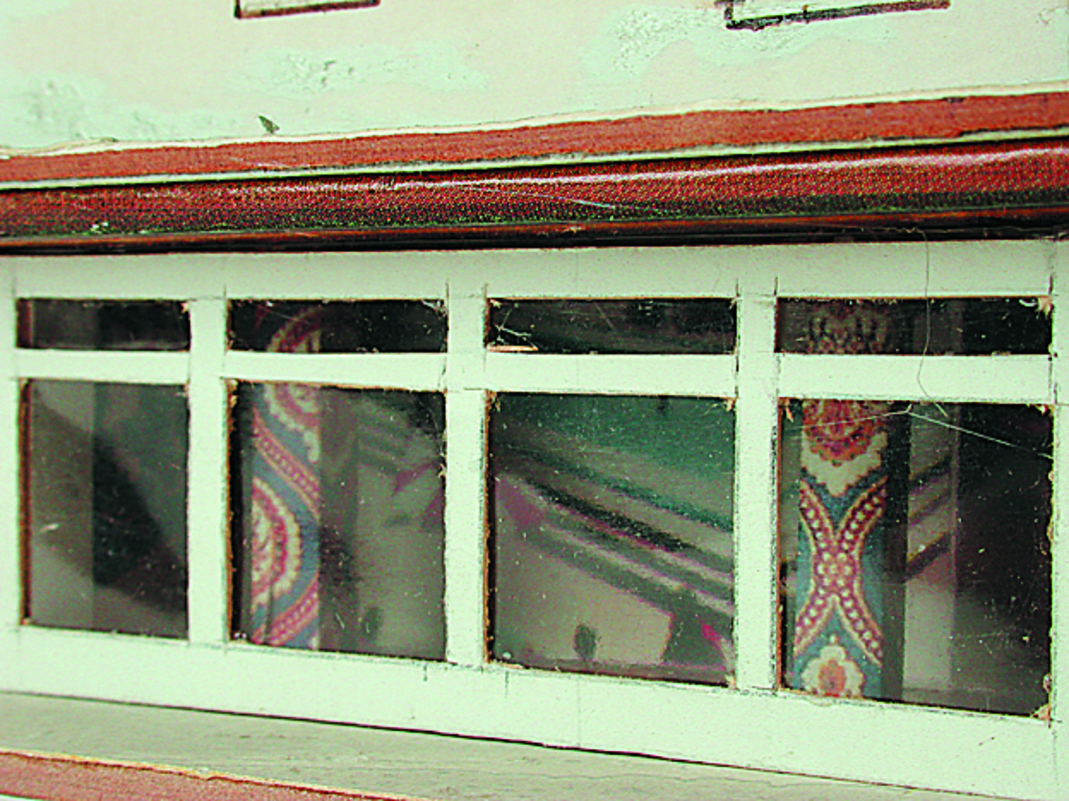Anmerkung der Redaktion: Nicht von jedem Haus sind alle einzelnen verwendeten Materialien dokumentiert. Tatsächlich verbaute der Bastler auch Zigarettenschachteln, Spinnenpapier, Pappmaschee, Tapetenreste, Bunt- und Silberpapiere, Stoffe, Synthetikfasern, d-c-fix-Folien, Schriftproben, Zeitungsschnipsel und ausgewertete Illustrierte, Kartonagen, Holzabfälle aller Art, Uhu, Holzleim und Tapetenkleister.