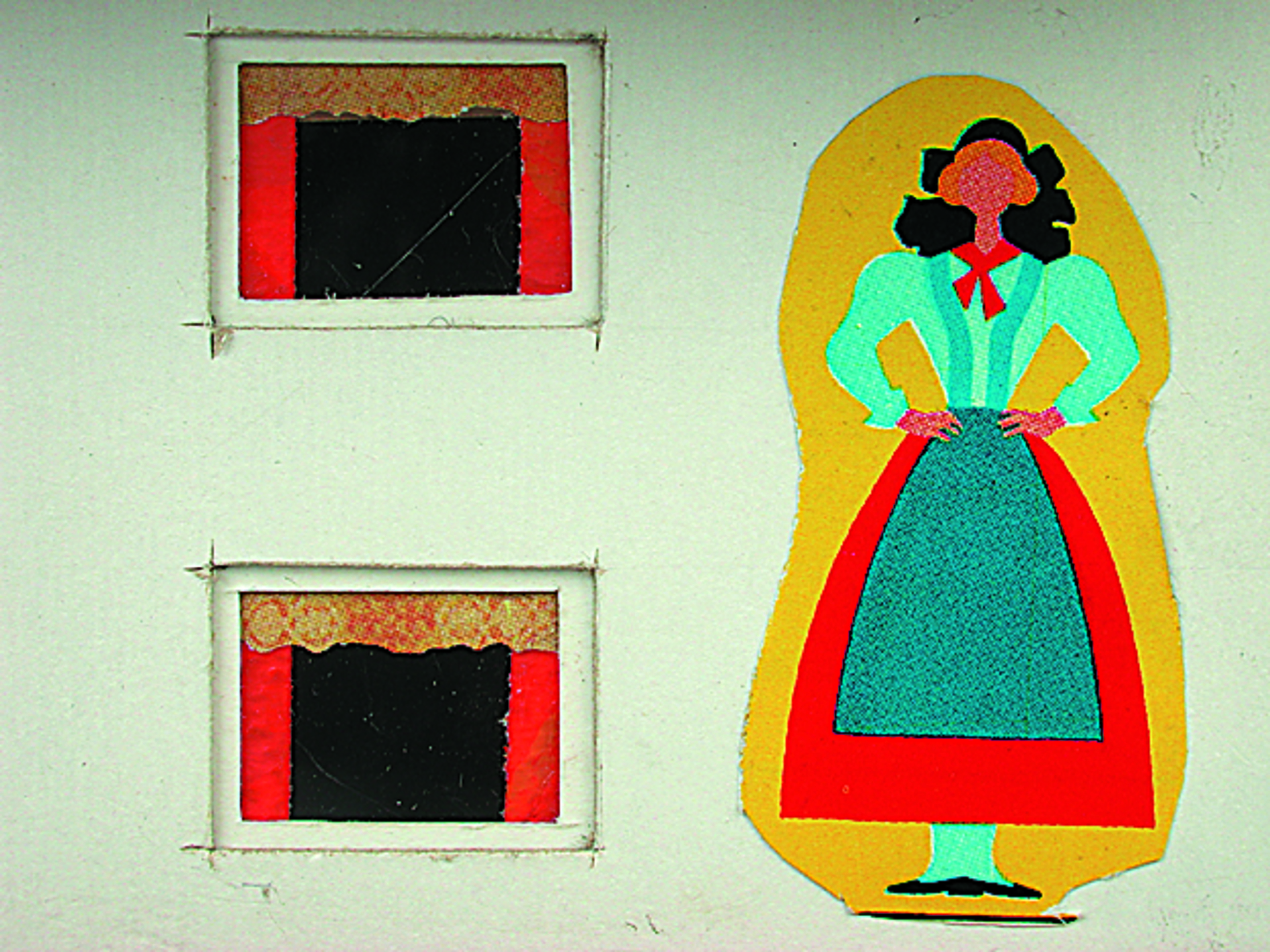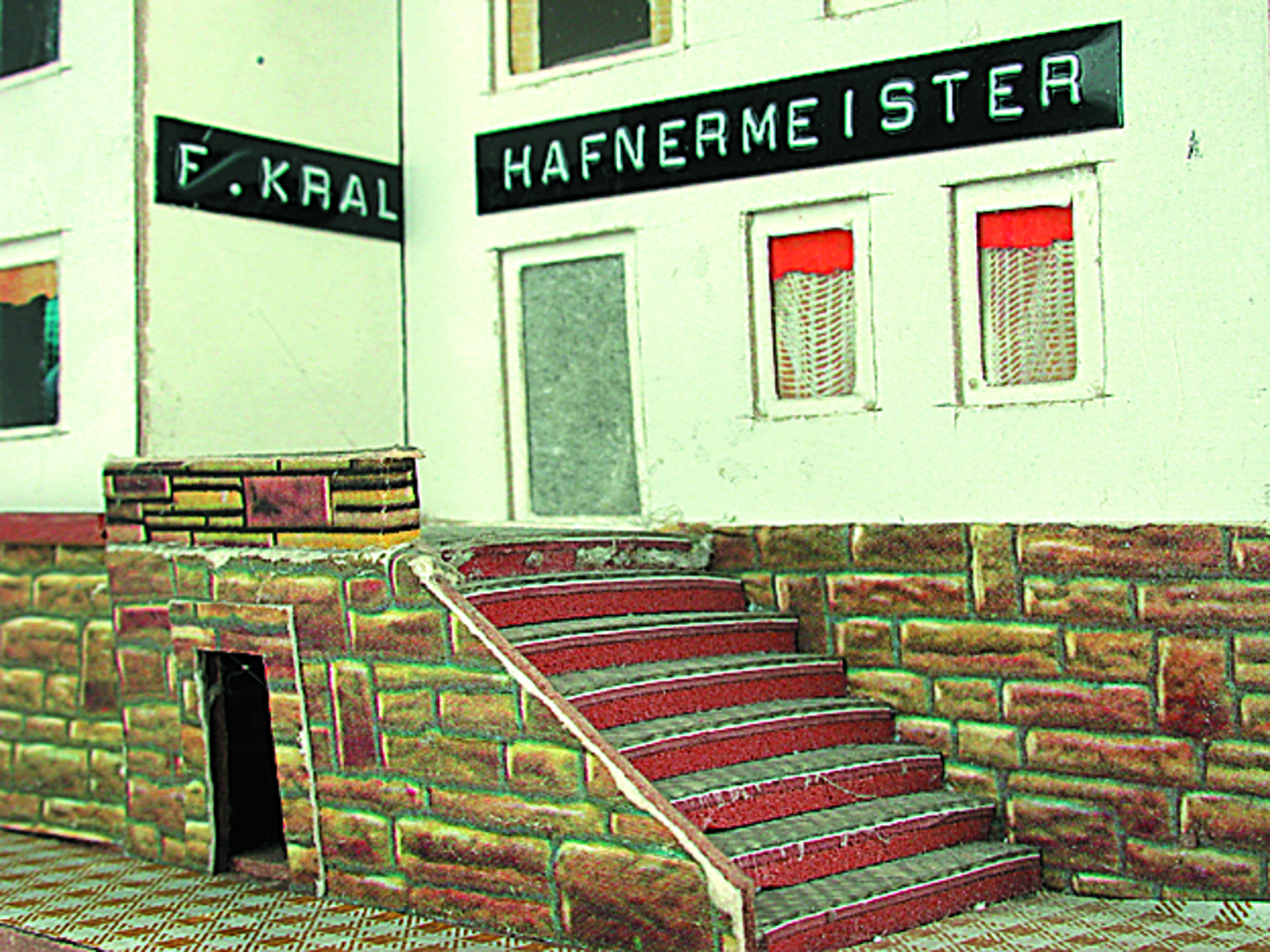Anmerkung der Redaktion: Nicht von jedem Haus sind alle einzelnen verwendeten Materialien dokumentiert. Tatsächlich verbaute der Bastler auch Zigarettenschachteln, Spinnenpapier, Pappmaschee, Tapetenreste, Bunt- und Silberpapiere, Stoffe, Synthetikfasern, d-c-fix-Folien, Schriftproben, Zeitungsschnipsel und ausgewertete Illustrierte, Kartonagen, Holzabfälle aller Art, Uhu, Holzleim und Tapetenkleister.