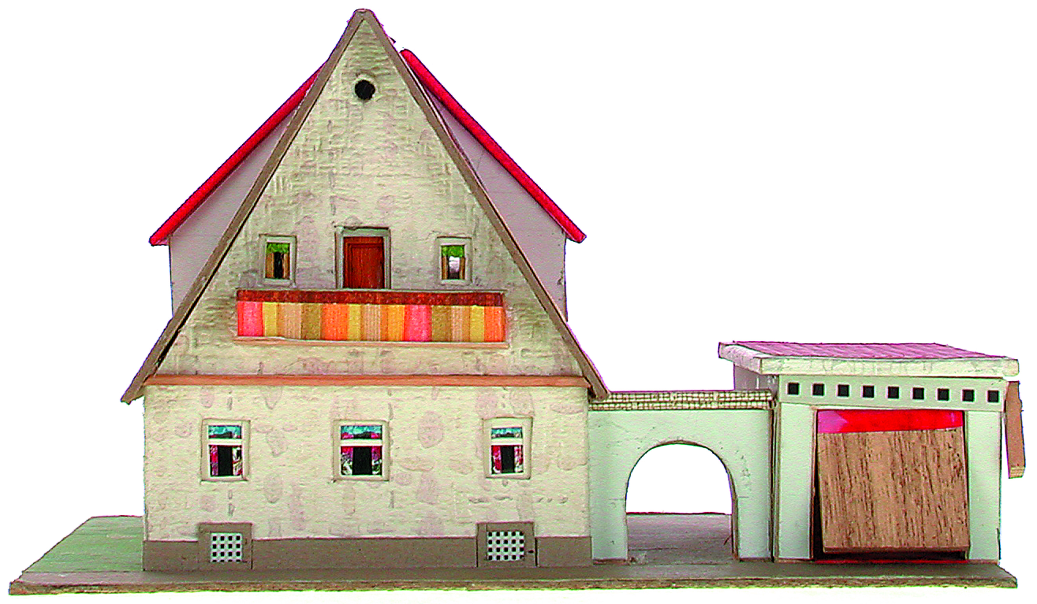- “1993 stieß der Künstler Oliver Croy bei einem Wiener Altwarenhändler auf ein in Müllsäcken verpacktes Lebenswerk, bestehend aus tausenden Diapositiven und 387 Modellhäusern: Amtsgebäude und Schulen, Lagerhäuser und Gasthöfe, Kirchen und Tankstellen, Kaufhäuser und Pensionen – und zig Einfamilienhäuser. Es handelte sich um den Nachlass des 1992 verstorbenen Wiener Versicherungsbeamten Peter Fritz. Gemeinsam mit dem Architekturpublizisten Oliver Elser präsentierte Croy die Modellsammlung ab 2000 in zahlreichen Ausstellungen, in Architektur- und Volkskundemuseen ebenso wie im Kunstkontext, zum Beispiel bei der berlin biennale 2006 [Anmerkung der Redaktion: später auch bei der Biennale in Venedig 2013]. Parallel zu den öffentlichen Präsentationen wurde die „Fritzforschung“ initiiert, die sich in Vorträgen, Diskussionen und Texten niederschlug, mit Beiträgen von ExpertInnen aus Architektur, Kunst und Wissenschaft. - Es gibt keine Hinweise darauf, dass die Miniaturgebäude jemals dazu bestimmt waren, eine Modelleisenbahn zu schmücken. Zwar hat Fritz während seiner Sommerurlaube in Österreich eifrig fotografiert, doch seine Modellhäuser beschränken sich keineswegs auf die Nachbildung real existierender Bauten. Vielmehr handelt es sich um hybride Eigenkreationen, die von wenigen Grundtypen wie der modernistischen Kiste und dem alpenländischen Satteldachhaus ausgehen. Offenbar versuchte Fritz, typische Bauformen der österreichischen 50er- bis 70er-Jahre idealtypisch nachzuempfinden. „Er baut die Welt, wie sie ist, und gleichzeitig so, wie sie noch etwas interessanter sein könnte.“ (Croy/Elser) - Seine Welt ist also nicht die Idylle à la Faller, sondern die alltägliche Architektur mit all ihren Reklametafeln, kuriosen Zubauten und absurden Materialkombinationen. Croy und Elser nennen den besessenen Bastler einen „eigenwilligen Modernisten“ und schätzen ihn als „sensiblen Beobachter und begnadeten Entwerfer“. - 2008 wurden die 387 Häuser des Peter Fritz inklusive der Materialien der „Fritzforschung“ vom Wien Museum erworben – einerseits als Kunstwerk, andererseits als kultur- und alltagshistorisches Dokument. Denn die von Croy und Elser als „Sondermodelle“ bezeichneten Variationen baulicher Normalität belegen eindrucksvoll, wie sehr sich im Bauen (und Umbauen) der Nachkriegsepoche der Gegensatz zwischen Stadt und Land auflöste: Ganz Österreich wurde damals zur permanenten Peripherie – ein Prozess, der noch lange nicht an sein Ende gekommen ist.” - Wolfgang Kos, im Katalog zur Ausstellung „Fifty Fifty. Kunst im Dialog mit den 50er-Jahren“ (Wien Museum Karlsplatz), erschienen im Verlag für moderne Kunst Nürnberg, 2009 - Anmerkung der Redaktion: Nicht von jedem Haus sind alle einzelnen verwendeten Materialien dokumentiert. Tatsächlich verbaute der Bastler auch Zigarettenschachteln, Spinnenpapier, Pappmaschee, Tapetenreste, Bunt- und Silberpapiere, Stoffe, Synthetikfasern, d-c-fix-Folien, Schriftproben, Zeitungsschnipsel und ausgewertete Illustrierte, Kartonagen, Holzabfälle aller Art, Uhu, Holzleim und Tapetenkleister.