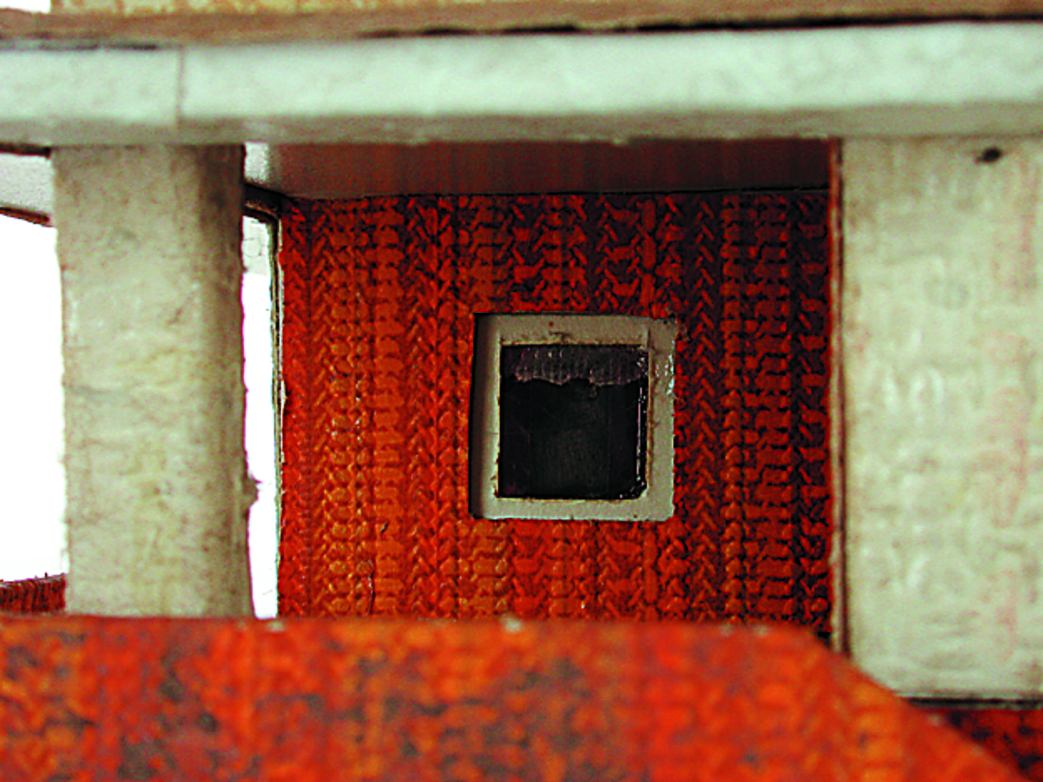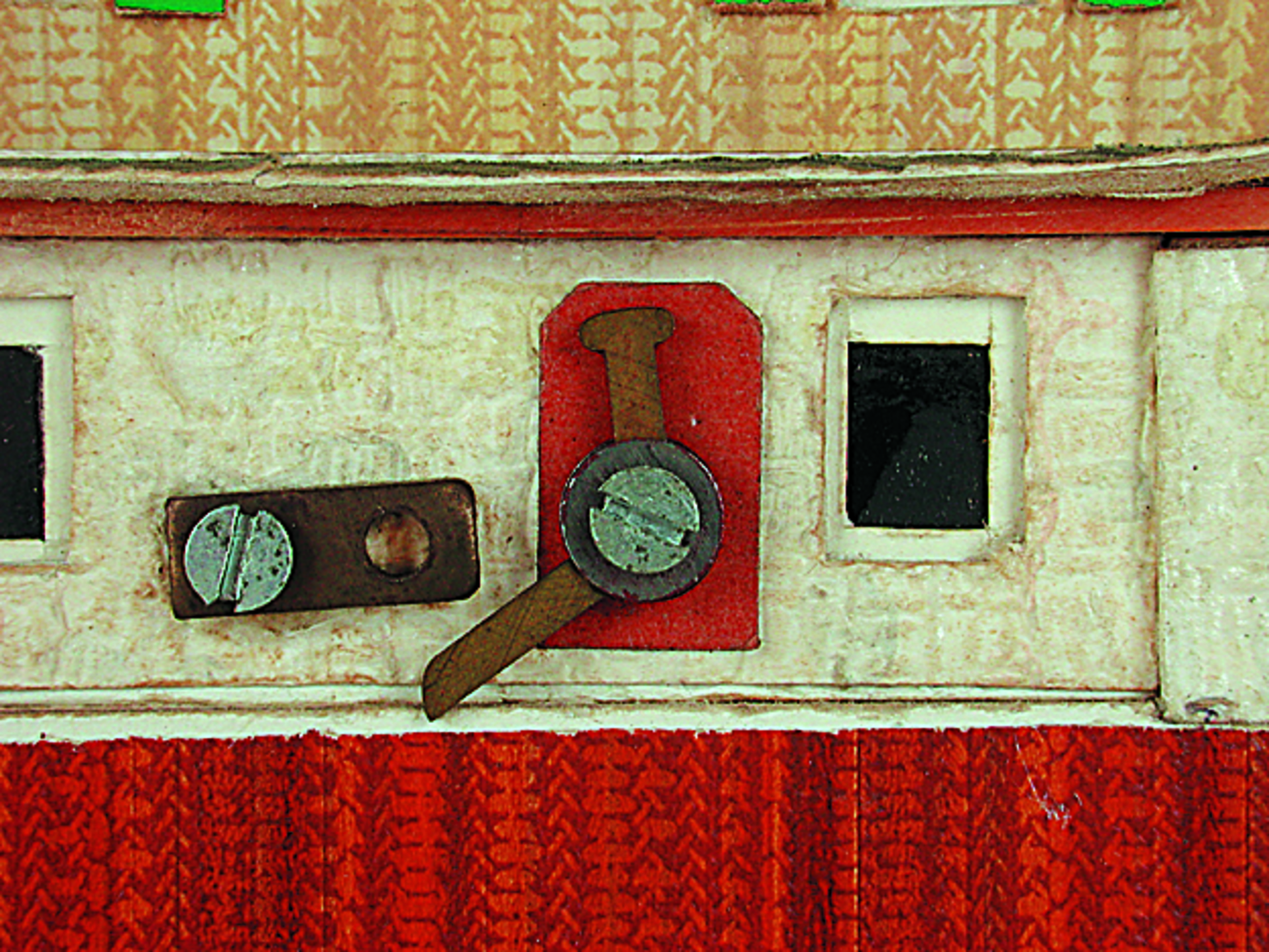 Anmerkung der Redaktion: Nicht von jedem Haus sind alle einzelnen verwendeten Materialien dokumentiert. Tatsächlich verbaute der Bastler auch Zigarettenschachteln, Spinnenpapier, Pappmaschee, Tapetenreste, Bunt- und Silberpapiere, Stoffe, Synthetikfasern, d-c-fix-Folien, Schriftproben, Zeitungsschnipsel und ausgewertete Illustrierte, Kartonagen, Holzabfälle aller Art, Uhu, Holzleim und Tapetenkleister.