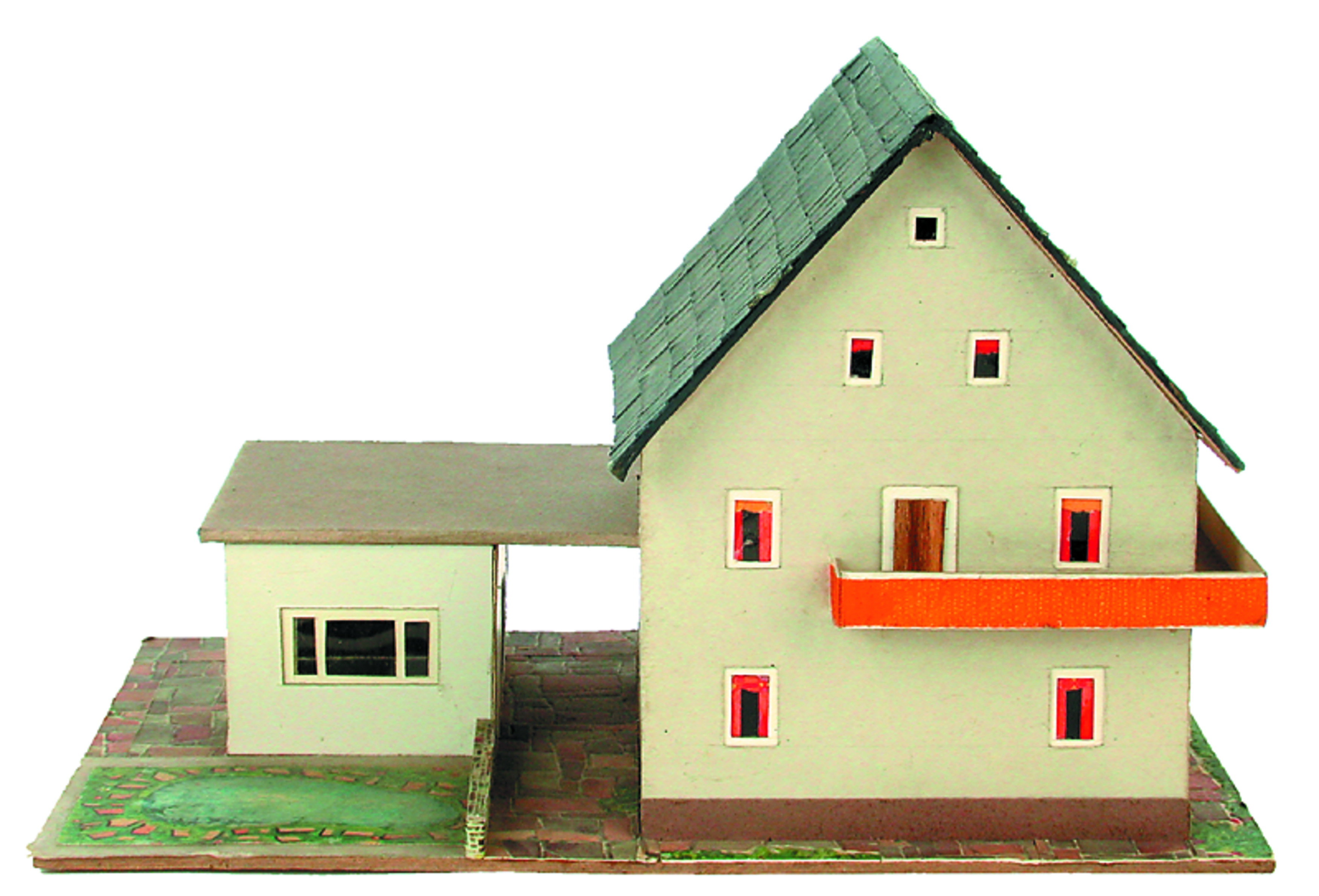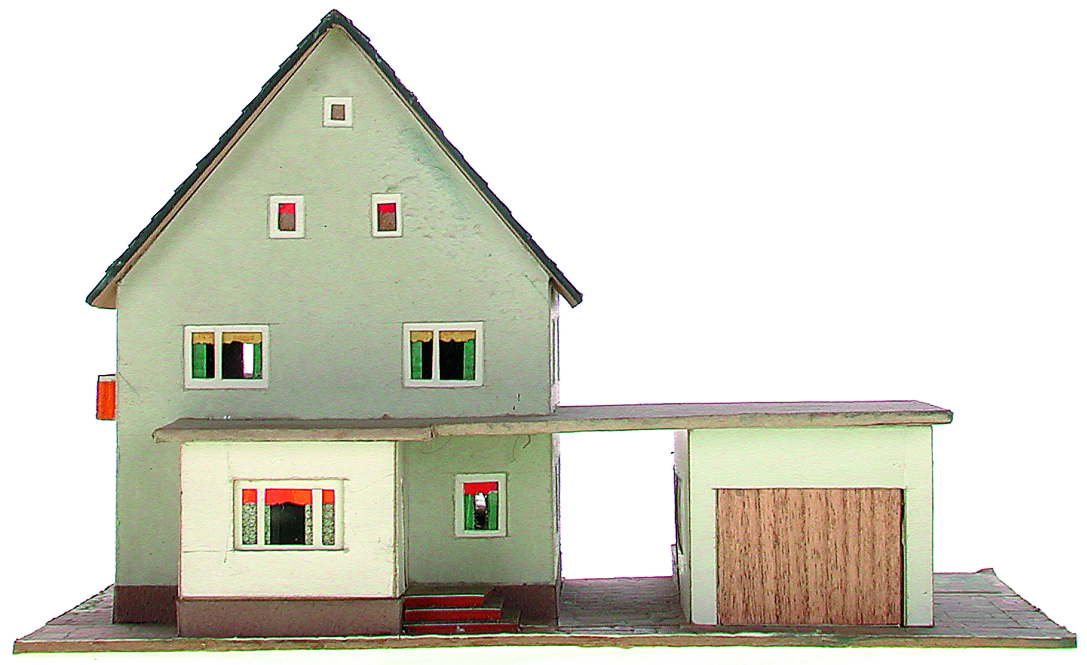 - “1993 stieß der Künstler Oliver Croy bei einem Wiener Altwarenhändler auf ein in Müllsäcken verpacktes Lebenswerk, bestehend aus tausenden Diapositiven und 387 Modellhäusern: Amtsgebäude und Schulen, Lagerhäuser und Gasthöfe, Kirchen und Tankstellen, Kaufhäuser und Pensionen – und zig Einfamilienhäuser. Es handelte sich um den Nachlass des 1992 verstorbenen Wiener Versicherungsbeamten Peter Fritz. Gemeinsam mit dem Architekturpublizisten Oliver Elser präsentierte Croy die Modellsammlung ab 2000 in zahlreichen Ausstellungen, in Architektur- und Volkskundemuseen ebenso wie im Kunstkontext, zum Beispiel bei der berlin biennale 2006 [Anmerkung der Redaktion: später auch bei der Biennale in Venedig 2013]. Parallel zu den öffentlichen Präsentationen wurde die „Fritzforschung“ initiiert, die sich in Vorträgen, Diskussionen und Texten niederschlug, mit Beiträgen von ExpertInnen aus Architektur, Kunst und Wissenschaft. Es gibt keine Hinweise darauf, dass die Miniaturgebäude jemals dazu bestimmt waren, eine Modelleisenbahn zu schmücken. Zwar hat Fritz während seiner Sommerurlaube in Österreich eifrig fotografiert, doch seine Modellhäuser beschränken sich keineswegs auf die Nachbildung real existierender Bauten. Vielmehr handelt es sich um hybride Eigenkreationen, die von wenigen Grundtypen wie der modernistischen Kiste und dem alpenländischen Satteldachhaus ausgehen. Offenbar versuchte Fritz, typische Bauformen der österreichischen 50er- bis 70er-Jahre idealtypisch nachzuempfinden. „Er baut die Welt, wie sie ist, und gleichzeitig so, wie sie noch etwas interessanter sein könnte.“ (Croy/Elser) Seine Welt ist also nicht die Idylle à la Faller, sondern die alltägliche Architektur mit all ihren Reklametafeln, kuriosen Zubauten und absurden Materialkombinationen. Croy und Elser nennen den besessenen Bastler einen „eigenwilligen Modernisten“ und schätzen ihn als „sensiblen Beobachter und begnadeten Entwerfer“. 2008 wurden die 387 Häuser des Peter Fritz inklusive der Materialien der „Fritzforschung“ vom Wien Museum erworben – einerseits als Kunstwerk, andererseits als kultur- und alltagshistorisches Dokument. Denn die von Croy und Elser als „Sondermodelle“ bezeichneten Variationen baulicher Normalität belegen eindrucksvoll, wie sehr sich im Bauen (und Umbauen) der Nachkriegsepoche der Gegensatz zwischen Stadt und Land auflöste: Ganz Österreich wurde damals zur permanenten Peripherie – ein Prozess, der noch lange nicht an sein Ende gekommen ist.” Wolfgang Kos, im Katalog zur Ausstellung „Fifty Fifty. Kunst im Dialog mit den 50er-Jahren“ (Wien Museum Karlsplatz), erschienen im Verlag für moderne Kunst Nürnberg, 2009 Anmerkung der Redaktion: Nicht von jedem Haus sind alle einzelnen verwendeten Materialien dokumentiert. Tatsächlich verbaute der Bastler auch Zigarettenschachteln, Spinnenpapier, Pappmaschee, Tapetenreste, Bunt- und Silberpapiere, Stoffe, Synthetikfasern, d-c-fix-Folien, Schriftproben, Zeitungsschnipsel und ausgewertete Illustrierte, Kartonagen, Holzabfälle aller Art, Uhu, Holzleim und Tapetenkleister.