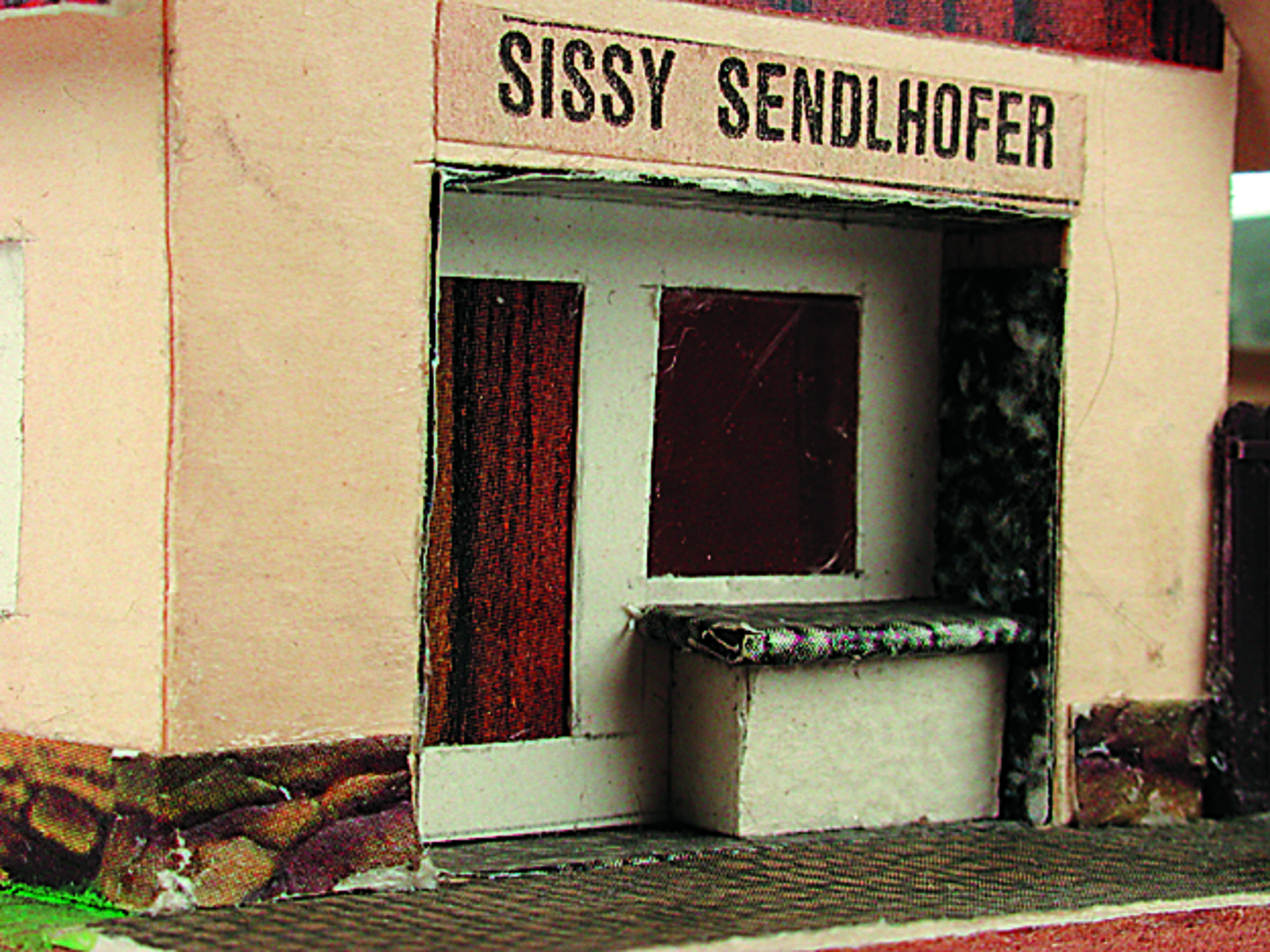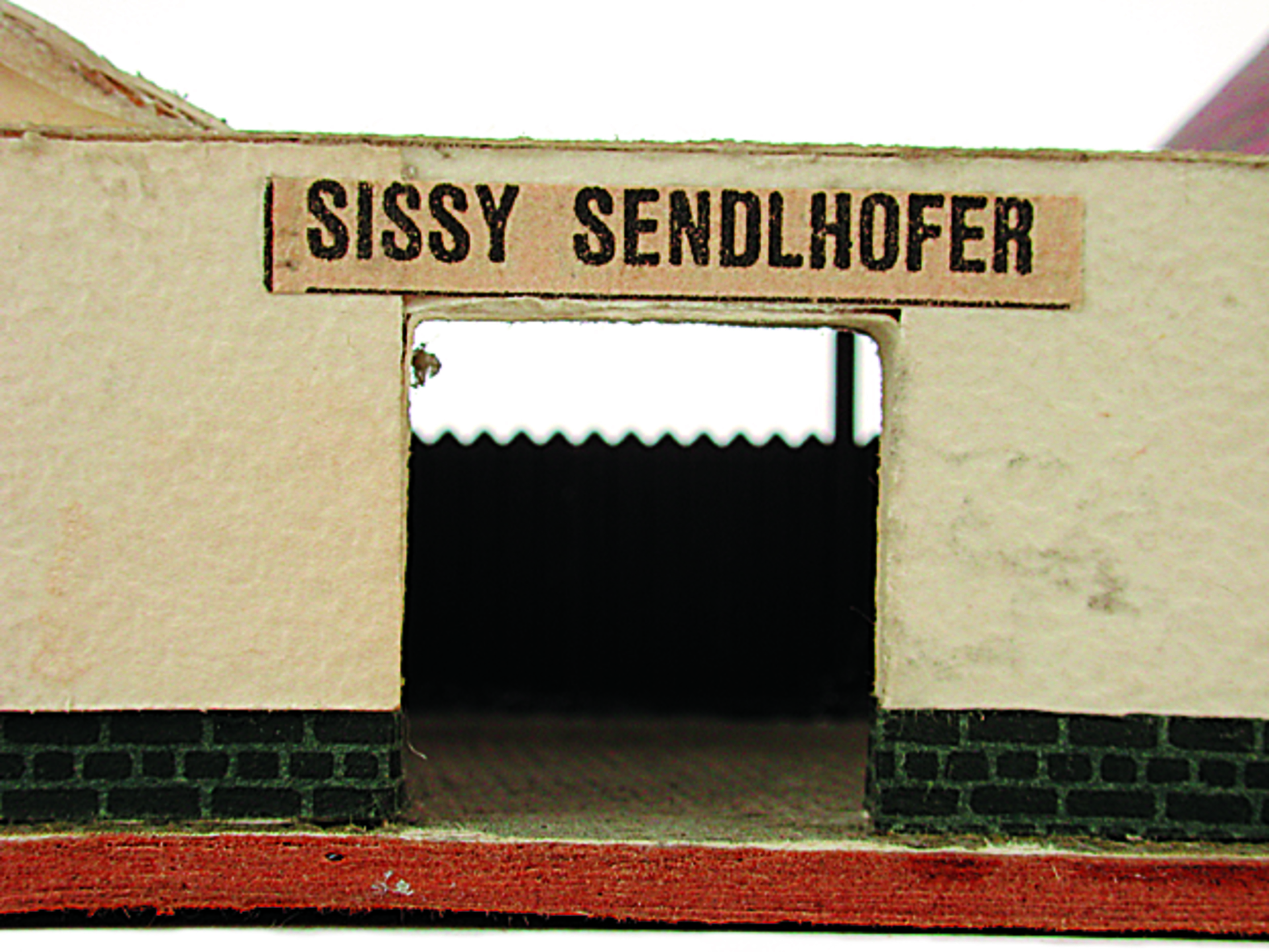 Anmerkung der Redaktion: Nicht von jedem Haus sind alle einzelnen verwendeten Materialien dokumentiert. Tatsächlich verbaute der Bastler auch Zigarettenschachteln, Spinnenpapier, Pappmaschee, Tapetenreste, Bunt- und Silberpapiere, Stoffe, Synthetikfasern, d-c-fix-Folien, Schriftproben, Zeitungsschnipsel und ausgewertete Illustrierte, Kartonagen, Holzabfälle aller Art, Uhu, Holzleim und Tapetenkleister.