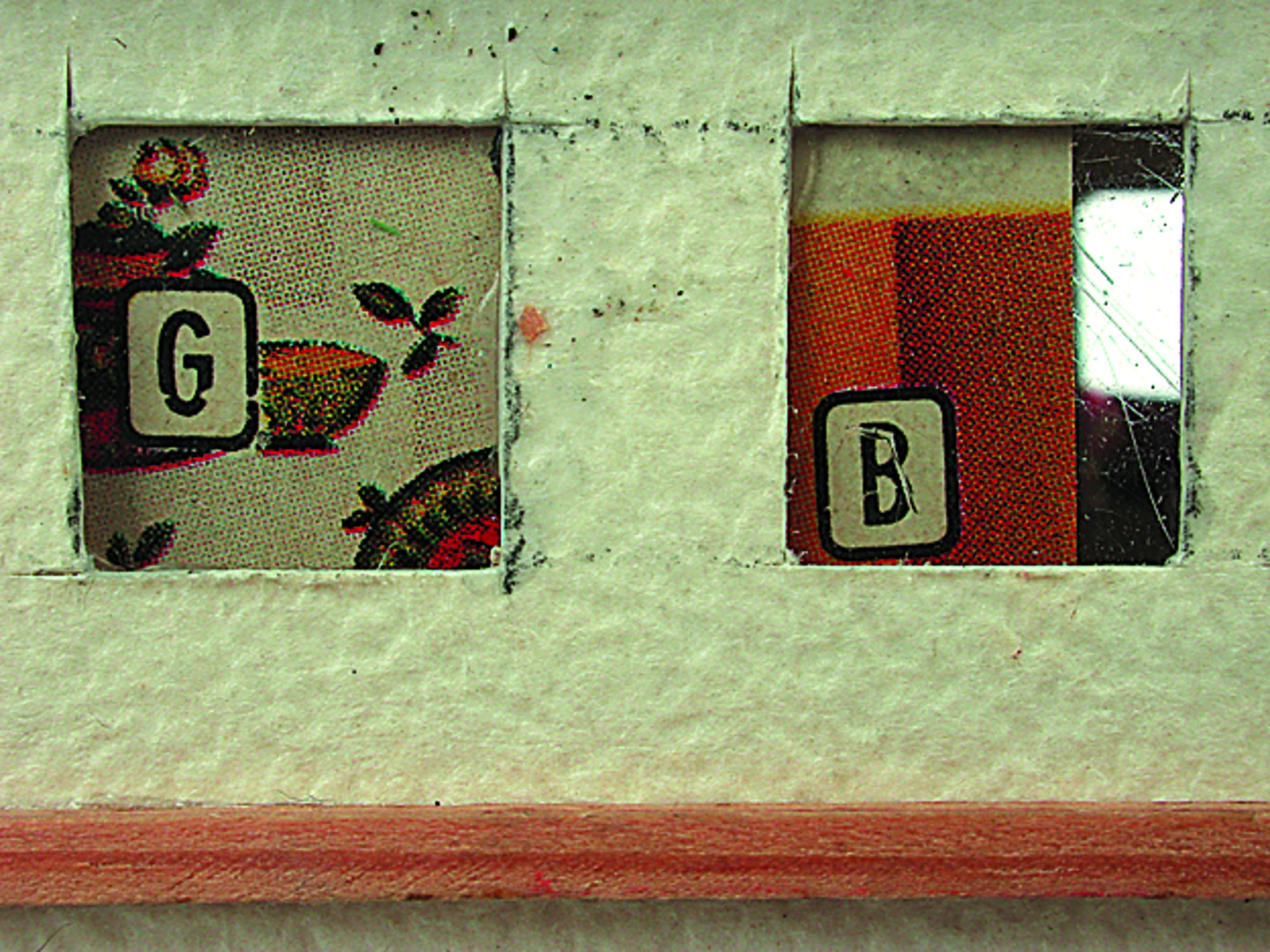 Anmerkung der Redaktion: Nicht von jedem Haus sind alle einzelnen verwendeten Materialien dokumentiert. Tatsächlich verbaute der Bastler auch Zigarettenschachteln, Spinnenpapier, Pappmaschee, Tapetenreste, Bunt- und Silberpapiere, Stoffe, Synthetikfasern, d-c-fix-Folien, Schriftproben, Zeitungsschnipsel und ausgewertete Illustrierte, Kartonagen, Holzabfälle aller Art, Uhu, Holzleim und Tapetenkleister.