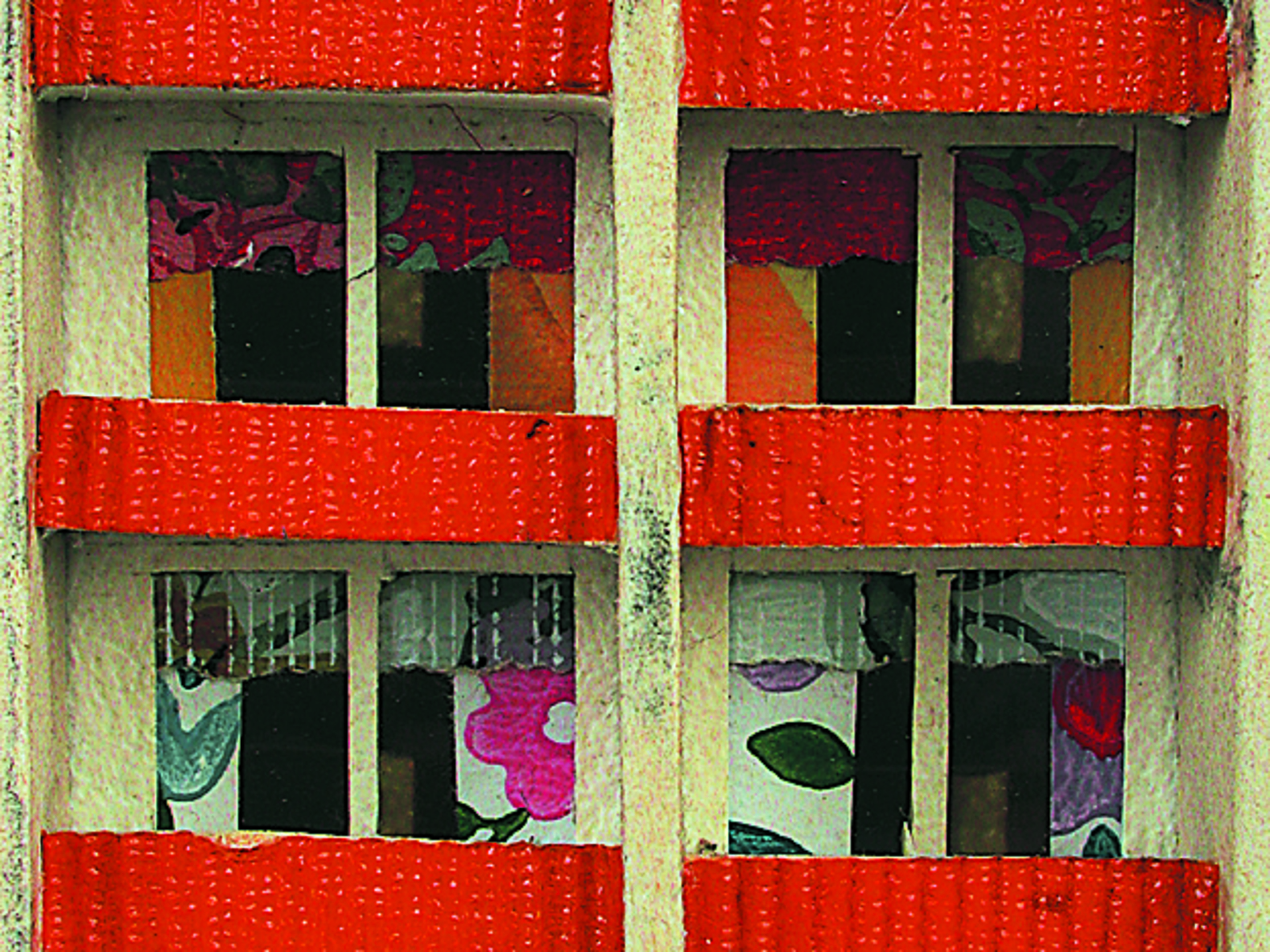 Anmerkung der Redaktion: Nicht von jedem Haus sind alle einzelnen verwendeten Materialien dokumentiert. Tatsächlich verbaute der Bastler auch Zigarettenschachteln, Spinnenpapier, Pappmaschee, Tapetenreste, Bunt- und Silberpapiere, Stoffe, Synthetikfasern, d-c-fix-Folien, Schriftproben, Zeitungsschnipsel und ausgewertete Illustrierte, Kartonagen, Holzabfälle aller Art, Uhu, Holzleim und Tapetenkleister.