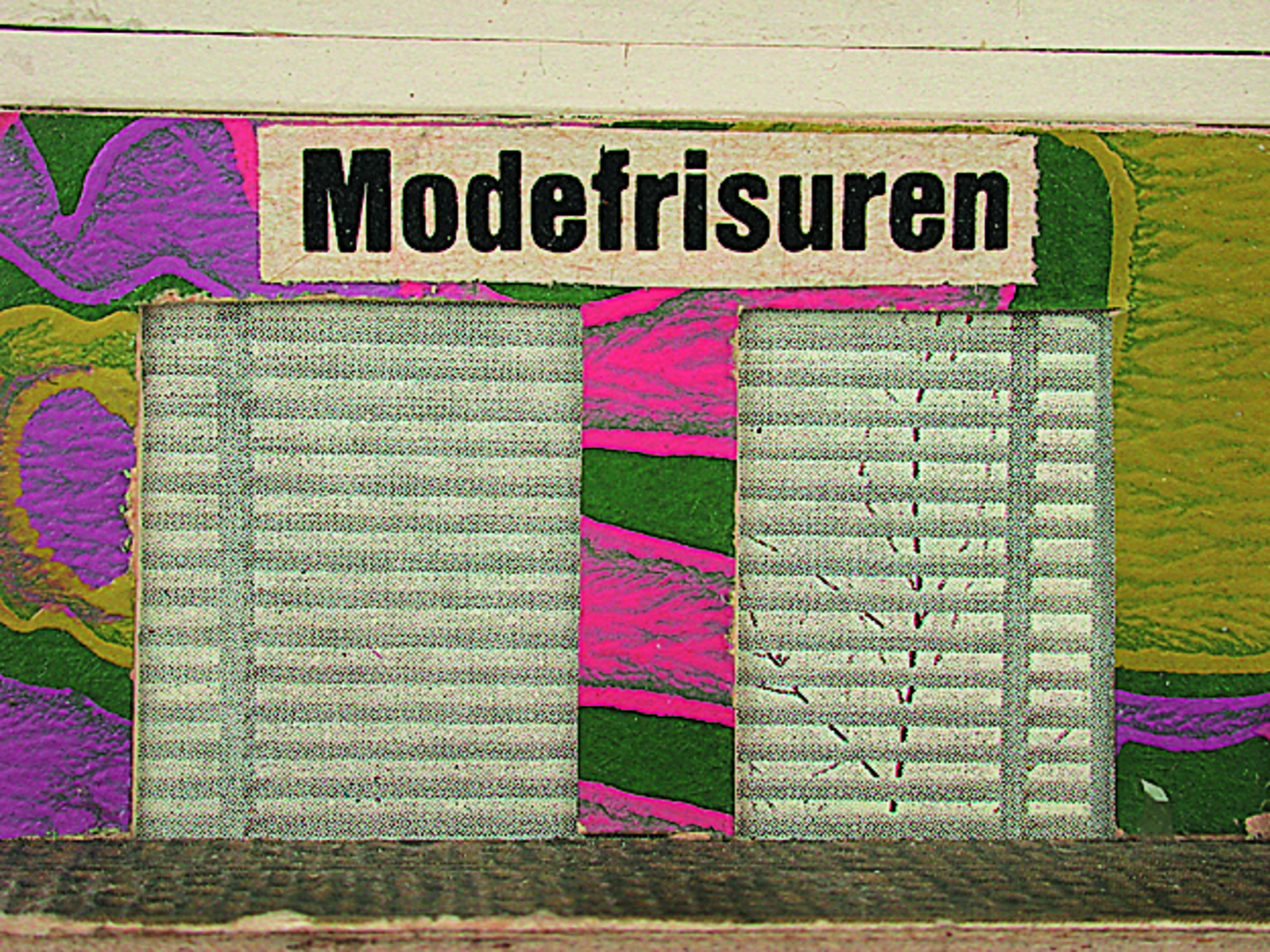 Anmerkung der Redaktion: Nicht von jedem Haus sind alle einzelnen verwendeten Materialien dokumentiert. Tatsächlich verbaute der Bastler auch Zigarettenschachteln, Spinnenpapier, Pappmaschee, Tapetenreste, Bunt- und Silberpapiere, Stoffe, Synthetikfasern, d-c-fix-Folien, Schriftproben, Zeitungsschnipsel und ausgewertete Illustrierte, Kartonagen, Holzabfälle aller Art, Uhu, Holzleim und Tapetenkleister.