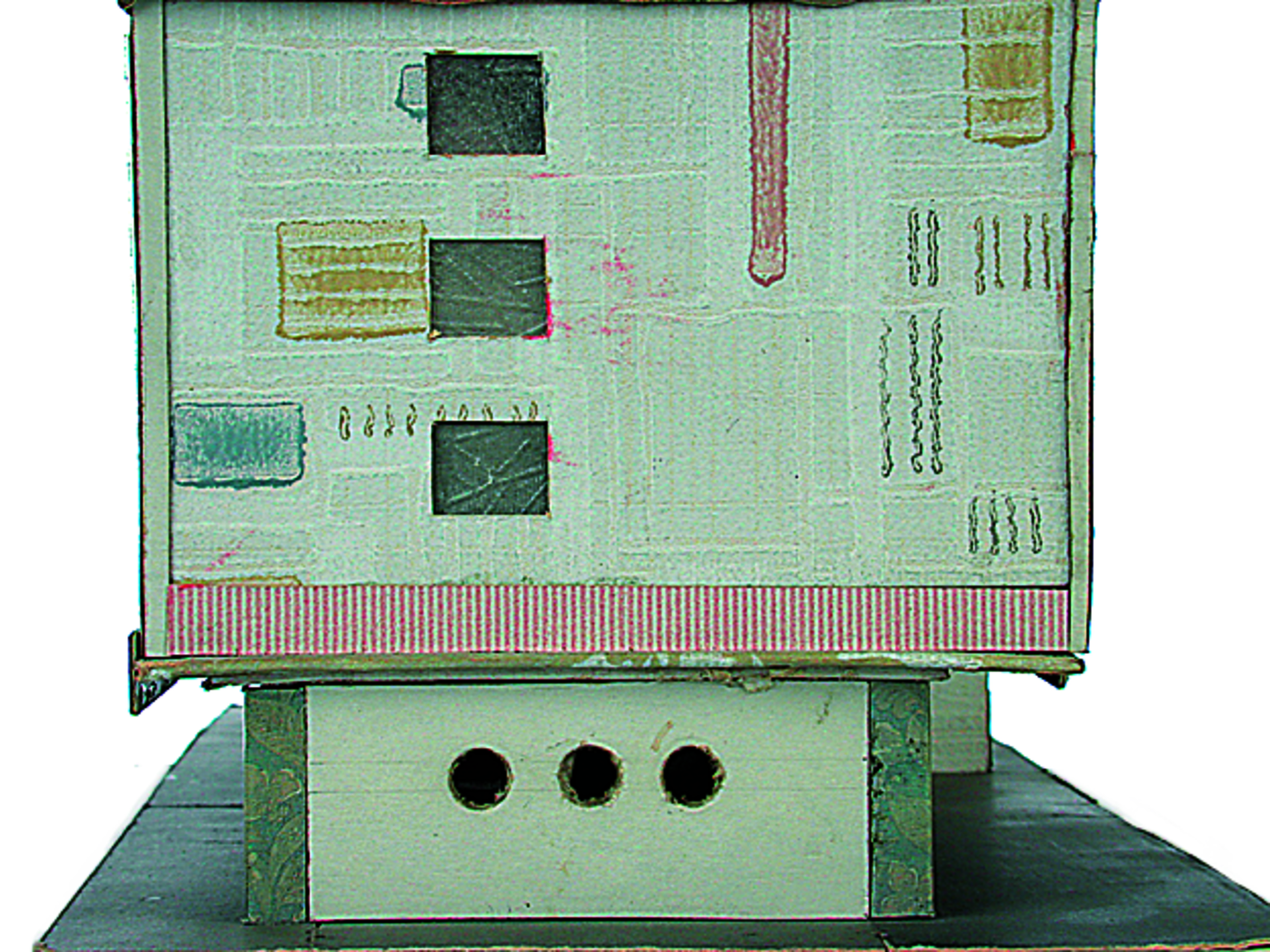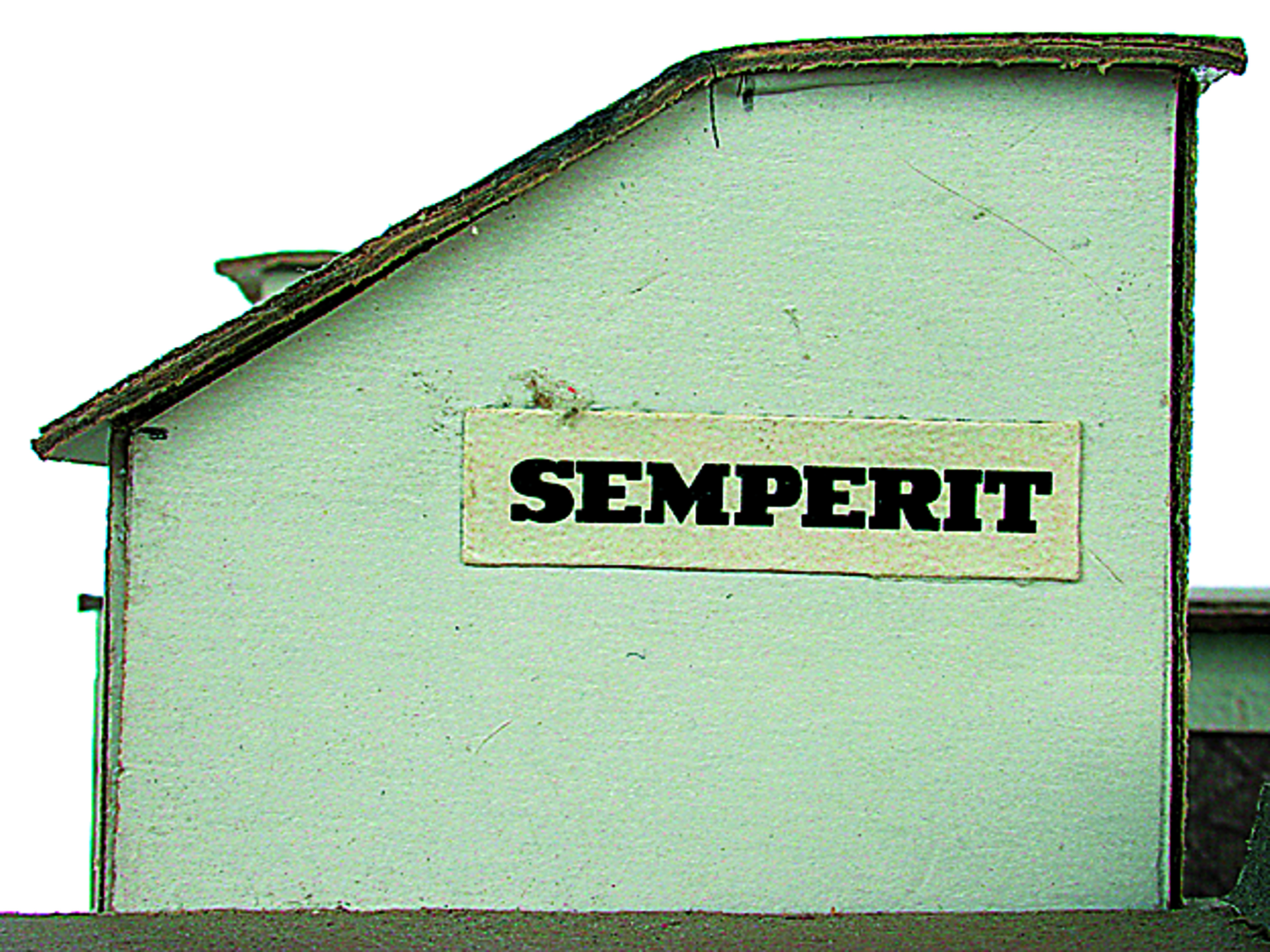 Anmerkung der Redaktion: Nicht von jedem Haus sind alle einzelnen verwendeten Materialien dokumentiert. Tatsächlich verbaute der Bastler auch Zigarettenschachteln, Spinnenpapier, Pappmaschee, Tapetenreste, Bunt- und Silberpapiere, Stoffe, Synthetikfasern, d-c-fix-Folien, Schriftproben, Zeitungsschnipsel und ausgewertete Illustrierte, Kartonagen, Holzabfälle aller Art, Uhu, Holzleim und Tapetenkleister.
