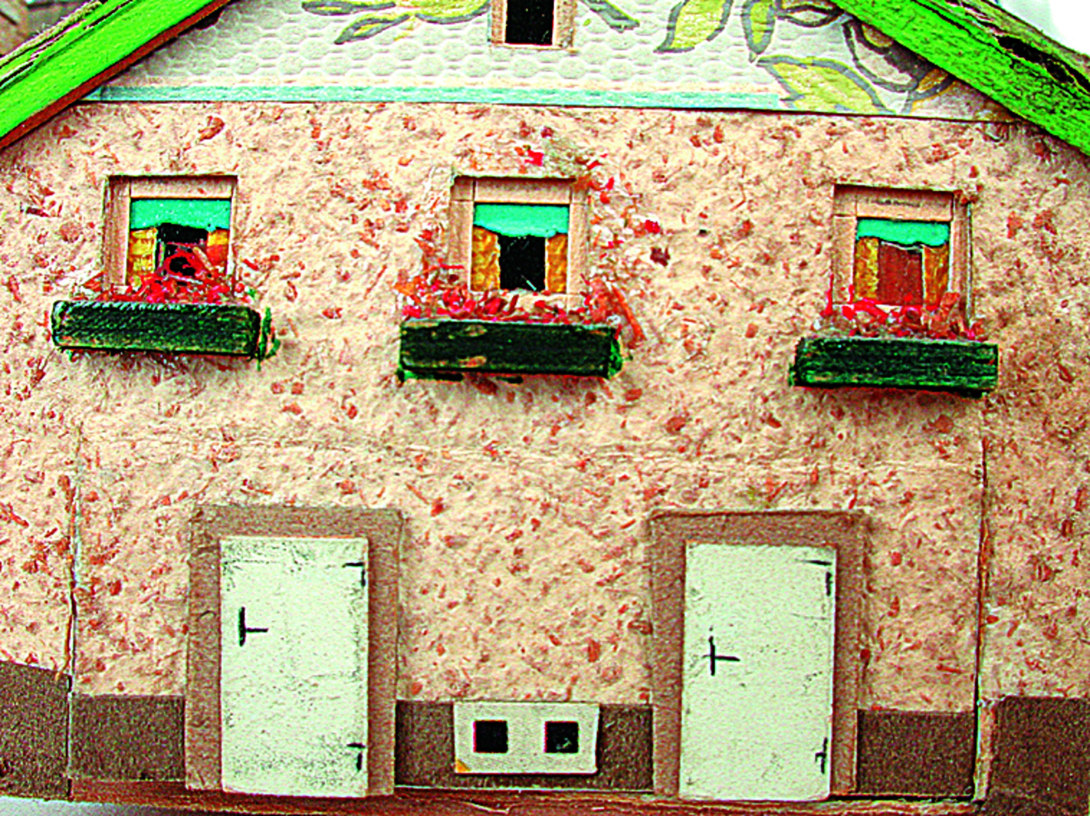 - “1993 stieß der Künstler Oliver Croy bei einem Wiener Altwarenhändler auf ein in Müllsäcken verpacktes Lebenswerk, bestehend aus tausenden Diapositiven und 387 Modellhäusern: Amtsgebäude und Schulen, Lagerhäuser und Gasthöfe, Kirchen und Tankstellen, Kaufhäuser und Pensionen – und zig Einfamilienhäuser. Es handelte sich um den Nachlass des 1992 verstorbenen Wiener Versicherungsbeamten Peter Fritz. Gemeinsam mit dem Architekturpublizisten Oliver Elser präsentierte Croy die Modellsammlung ab 2000 in zahlreichen Ausstellungen, in Architektur- und Volkskundemuseen ebenso wie im Kunstkontext, zum Beispiel bei der berlin biennale 2006 [Anmerkung der Redaktion: später auch bei der Biennale in Venedig 2013]. Parallel zu den öffentlichen Präsentationen wurde die „Fritzforschung“ initiiert, die sich in Vorträgen, Diskussionen und Texten niederschlug, mit Beiträgen von ExpertInnen aus Architektur, Kunst und Wissenschaft. - Es gibt keine Hinweise darauf, dass die Miniaturgebäude jemals dazu bestimmt waren, eine Modelleisenbahn zu schmücken. Zwar hat Fritz während seiner Sommerurlaube in Österreich eifrig fotografiert, doch seine Modellhäuser beschränken sich keineswegs auf die Nachbildung real existierender Bauten. Vielmehr handelt es sich um hybride Eigenkreationen, die von wenigen Grundtypen wie der modernistischen Kiste und dem alpenländischen Satteldachhaus ausgehen. Offenbar versuchte Fritz, typische Bauformen der österreichischen 50er- bis 70er-Jahre idealtypisch nachzuempfinden. „Er baut die Welt, wie sie ist, und gleichzeitig so, wie sie noch etwas interessanter sein könnte.“ (Croy/Elser) - Seine Welt ist also nicht die Idylle à la Faller, sondern die alltägliche Architektur mit all ihren Reklametafeln, kuriosen Zubauten und absurden Materialkombinationen. Croy und Elser nennen den besessenen Bastler einen „eigenwilligen Modernisten“ und schätzen ihn als „sensiblen Beobachter und begnadeten Entwerfer“. - 2008 wurden die 387 Häuser des Peter Fritz inklusive der Materialien der „Fritzforschung“ vom Wien Museum erworben – einerseits als Kunstwerk, andererseits als kultur- und alltagshistorisches Dokument. Denn die von Croy und Elser als „Sondermodelle“ bezeichneten Variationen baulicher Normalität belegen eindrucksvoll, wie sehr sich im Bauen (und Umbauen) der Nachkriegsepoche der Gegensatz zwischen Stadt und Land auflöste: Ganz Österreich wurde damals zur permanenten Peripherie – ein Prozess, der noch lange nicht an sein Ende gekommen ist.” - Wolfgang Kos, im Katalog zur Ausstellung „Fifty Fifty. Kunst im Dialog mit den 50er-Jahren“ (Wien Museum Karlsplatz), erschienen im Verlag für moderne Kunst Nürnberg, 2009 - Anmerkung der Redaktion: Nicht von jedem Haus sind alle einzelnen verwendeten Materialien dokumentiert. Tatsächlich verbaute der Bastler auch Zigarettenschachteln, Spinnenpapier, Pappmaschee, Tapetenreste, Bunt- und Silberpapiere, Stoffe, Synthetikfasern, d-c-fix-Folien, Schriftproben, Zeitungsschnipsel und ausgewertete Illustrierte, Kartonagen, Holzabfälle aller Art, Uhu, Holzleim und Tapetenkleister.